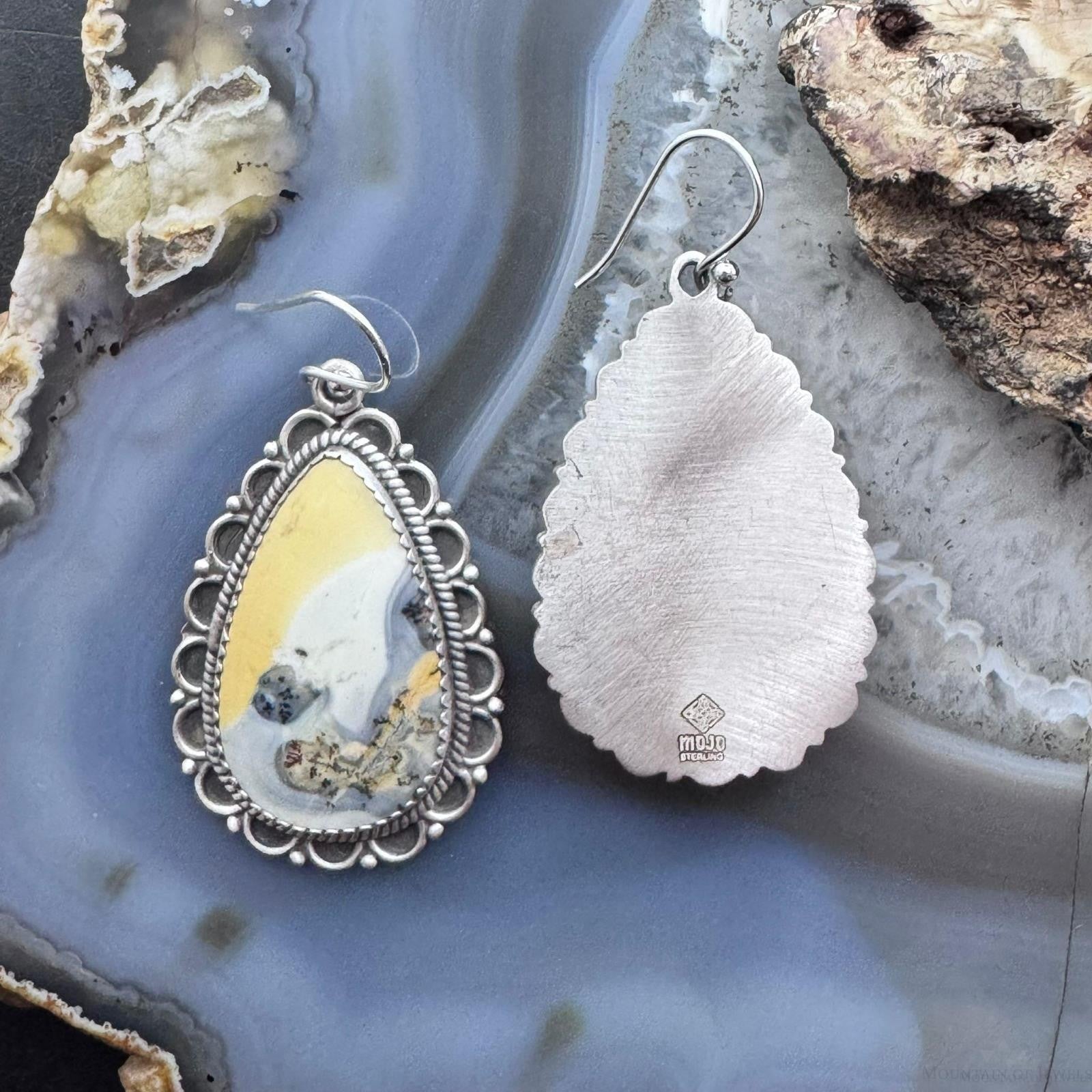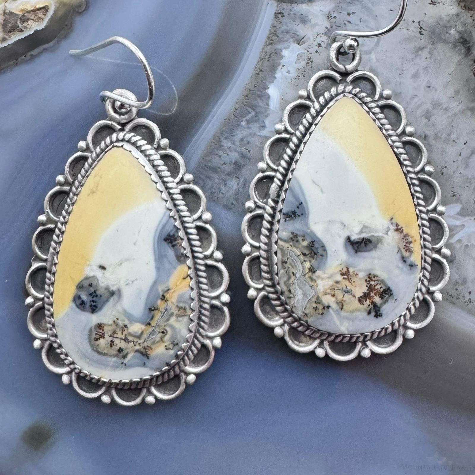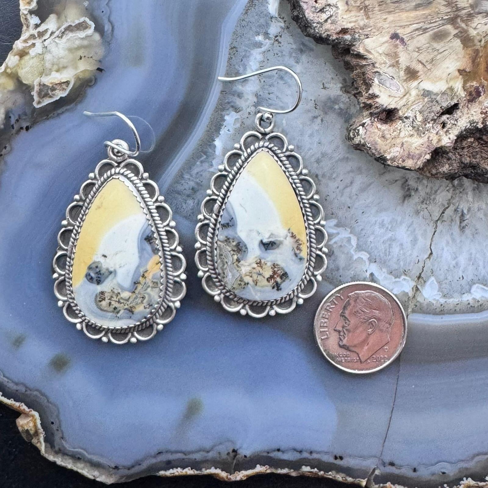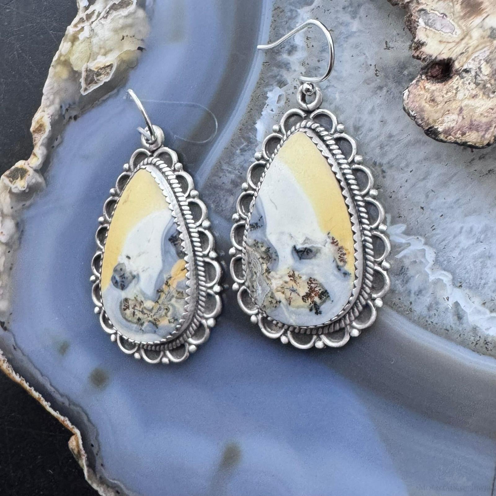 Sterling Silver Southwestern Style Teardrop Maligano Jasper Dangle Earrings For Women #2