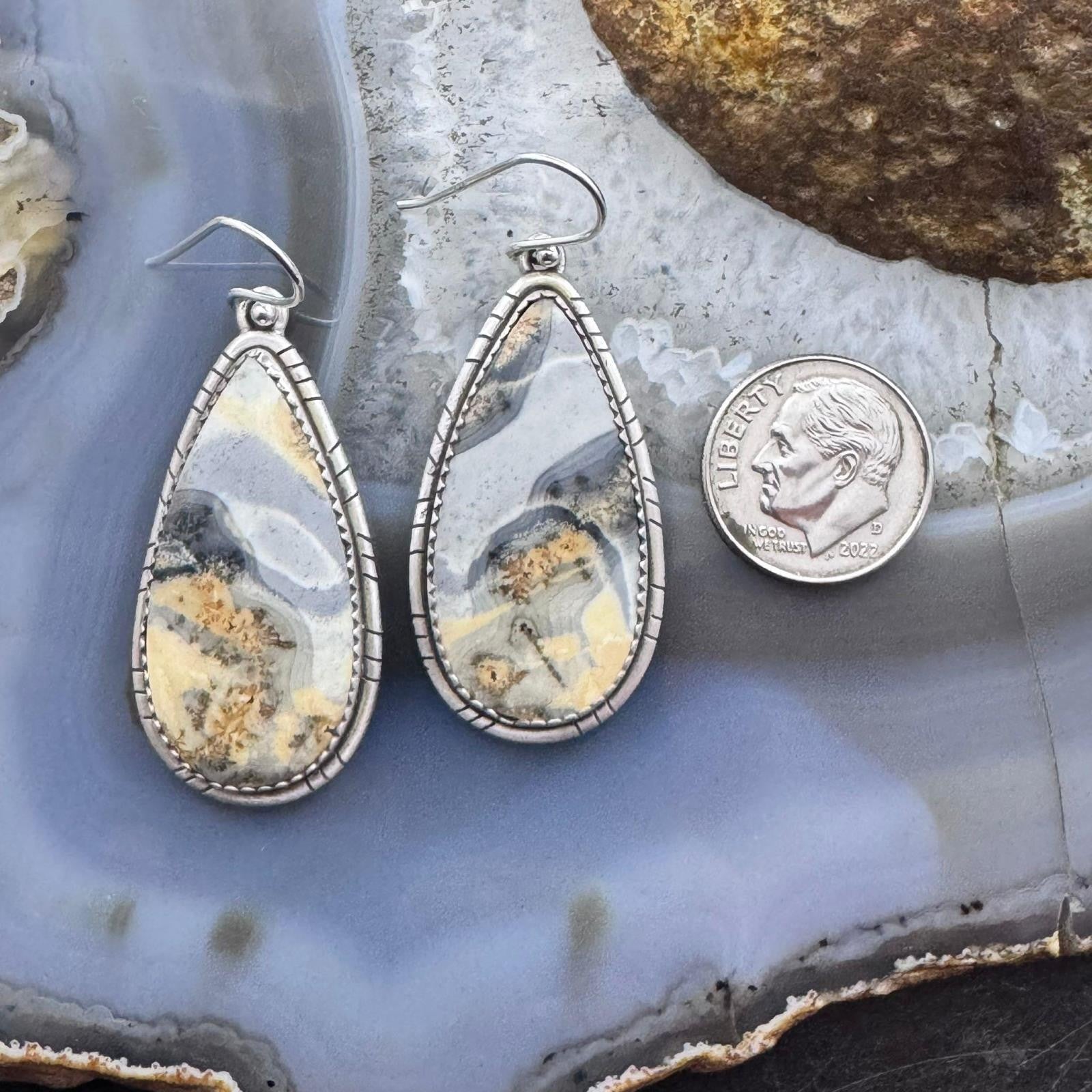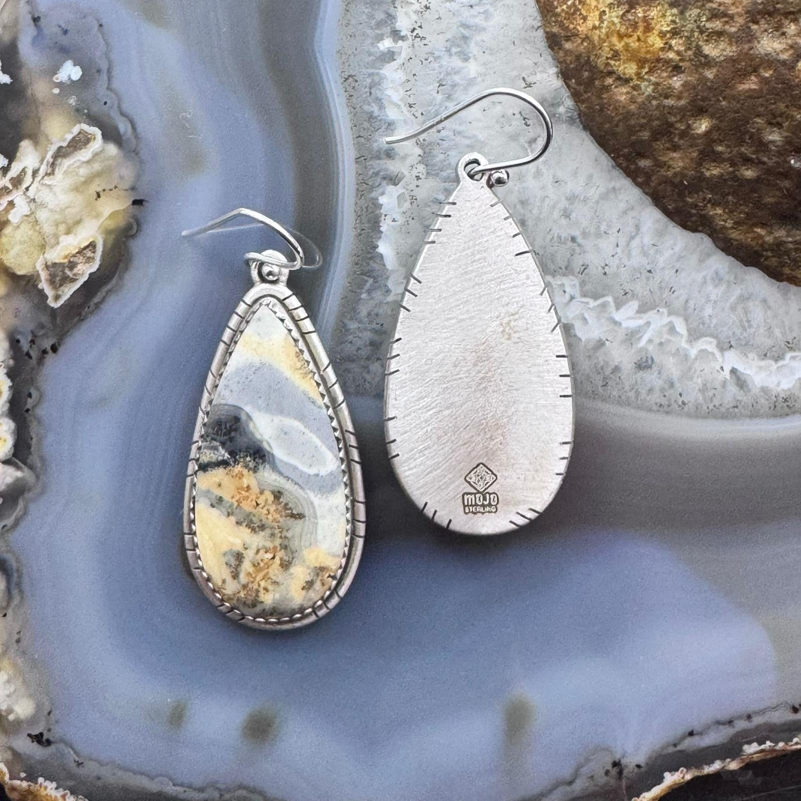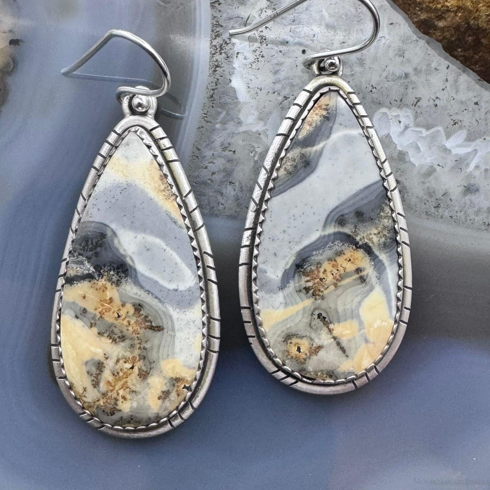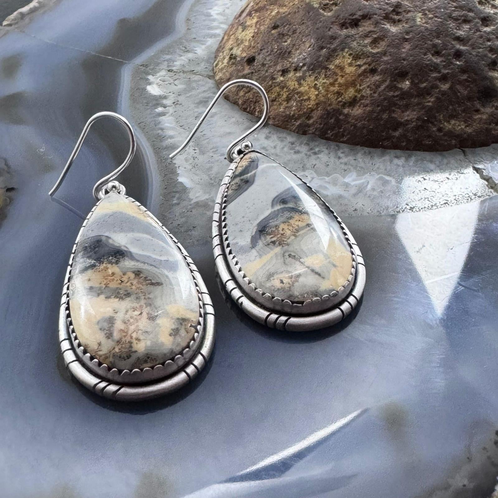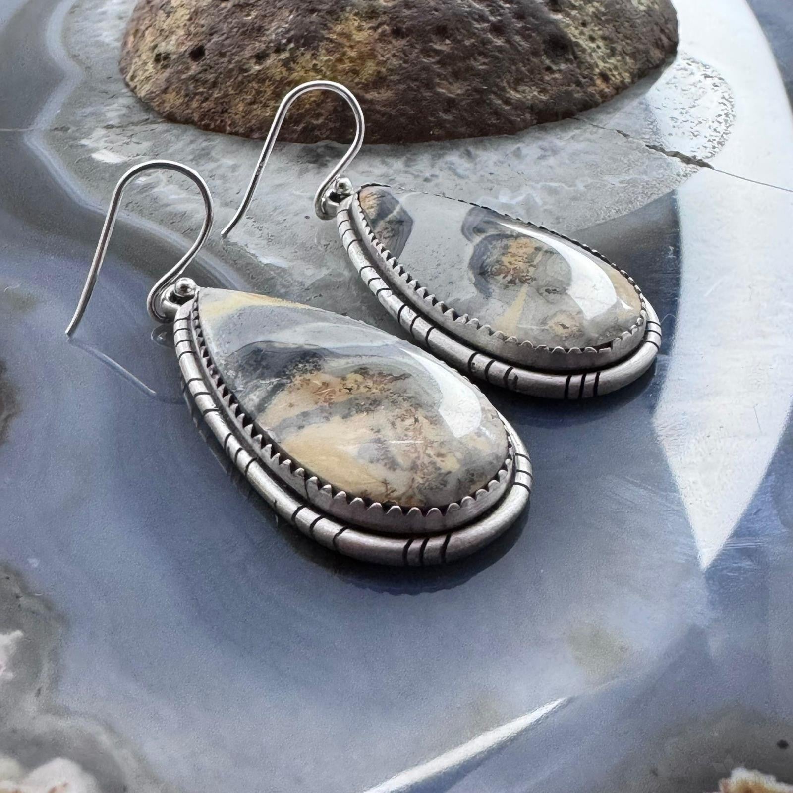 Sterling Silver Southwestern Style Teardrop Maligano Jasper Dangle Earrings For Women #3