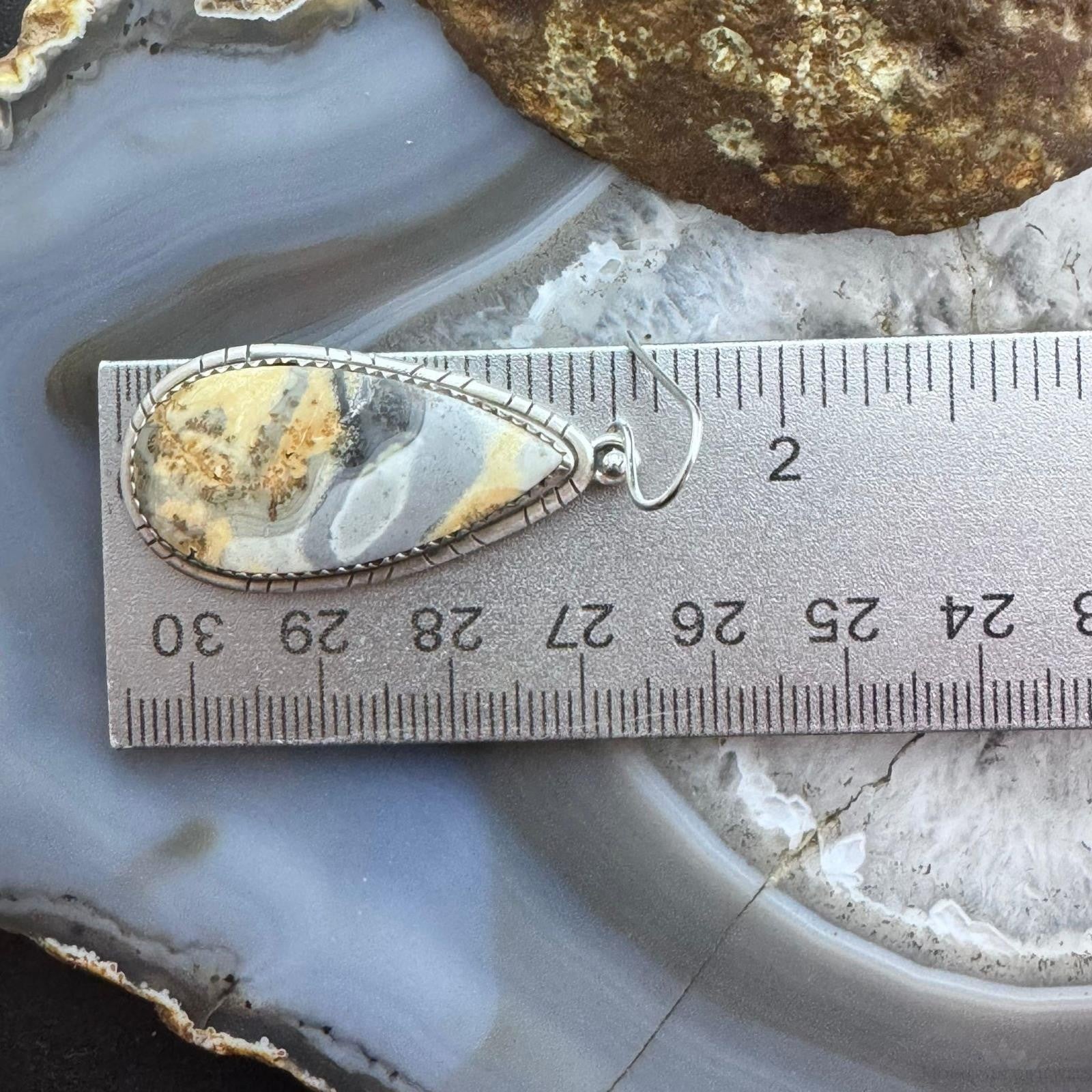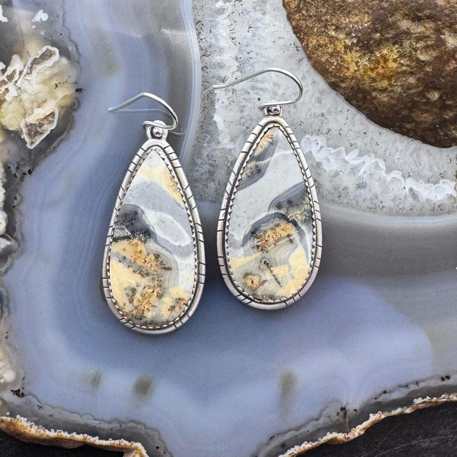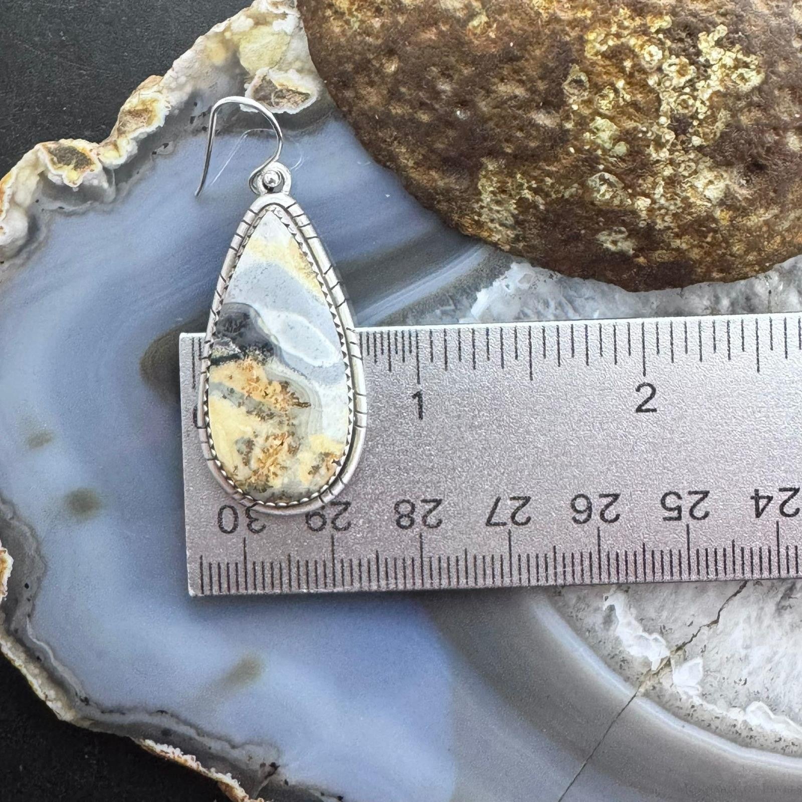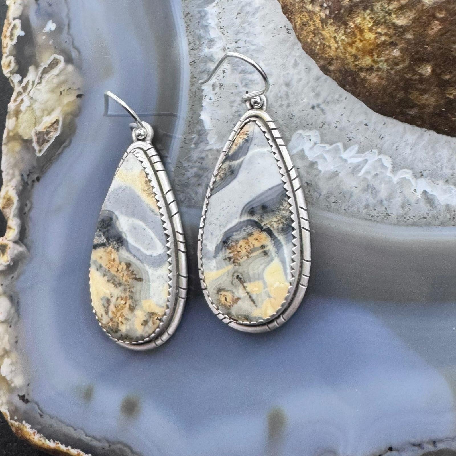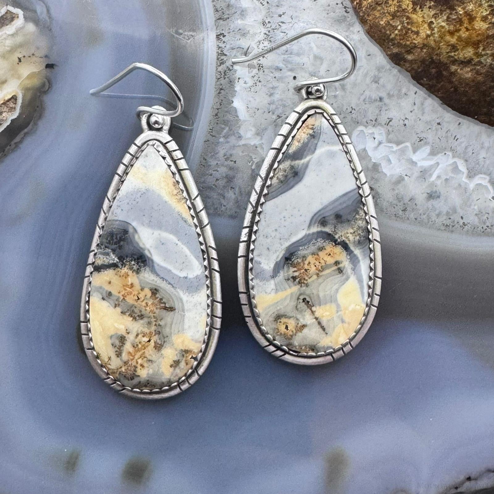 Sterling Silver Southwestern Style Teardrop Maligano Jasper Dangle Earrings For Women #3