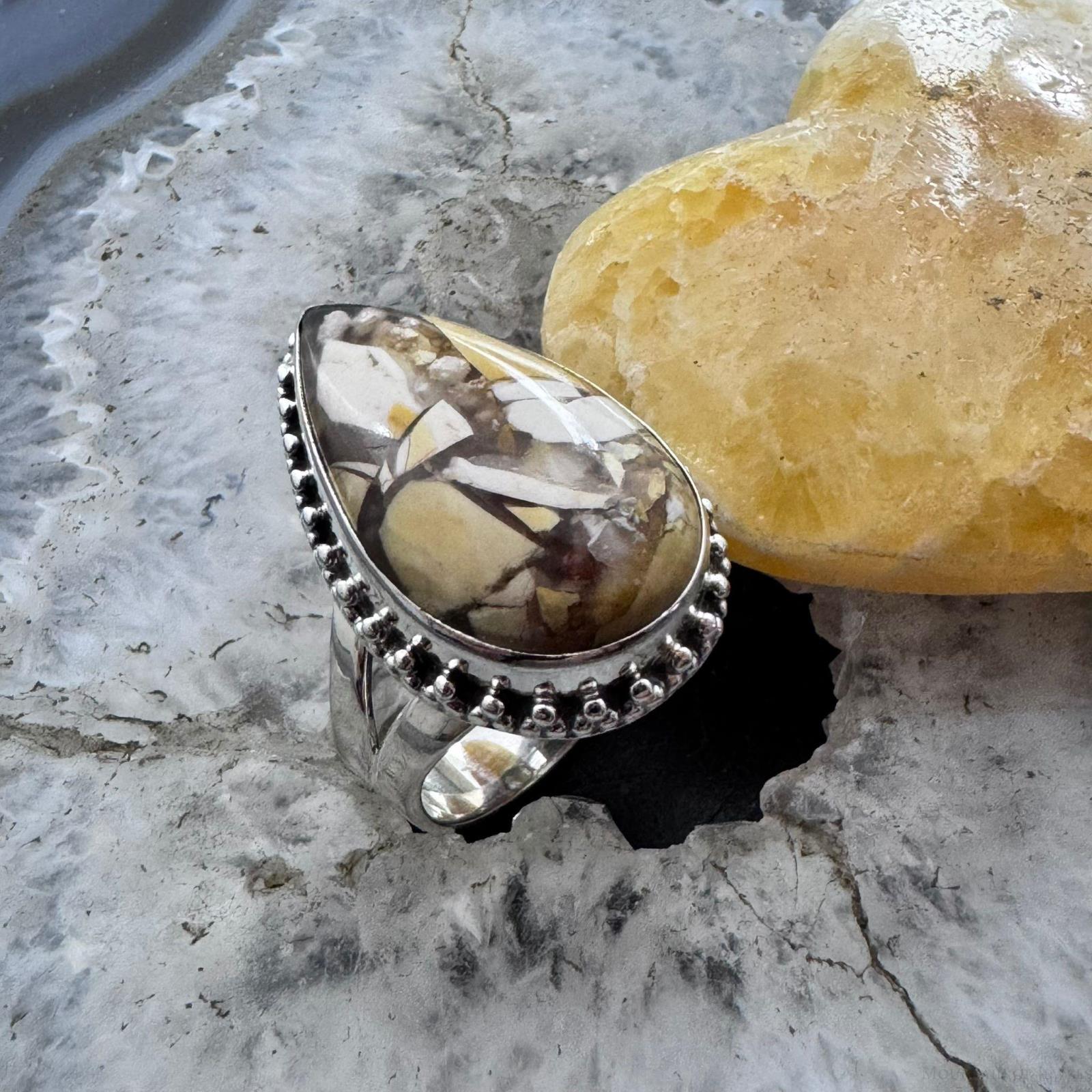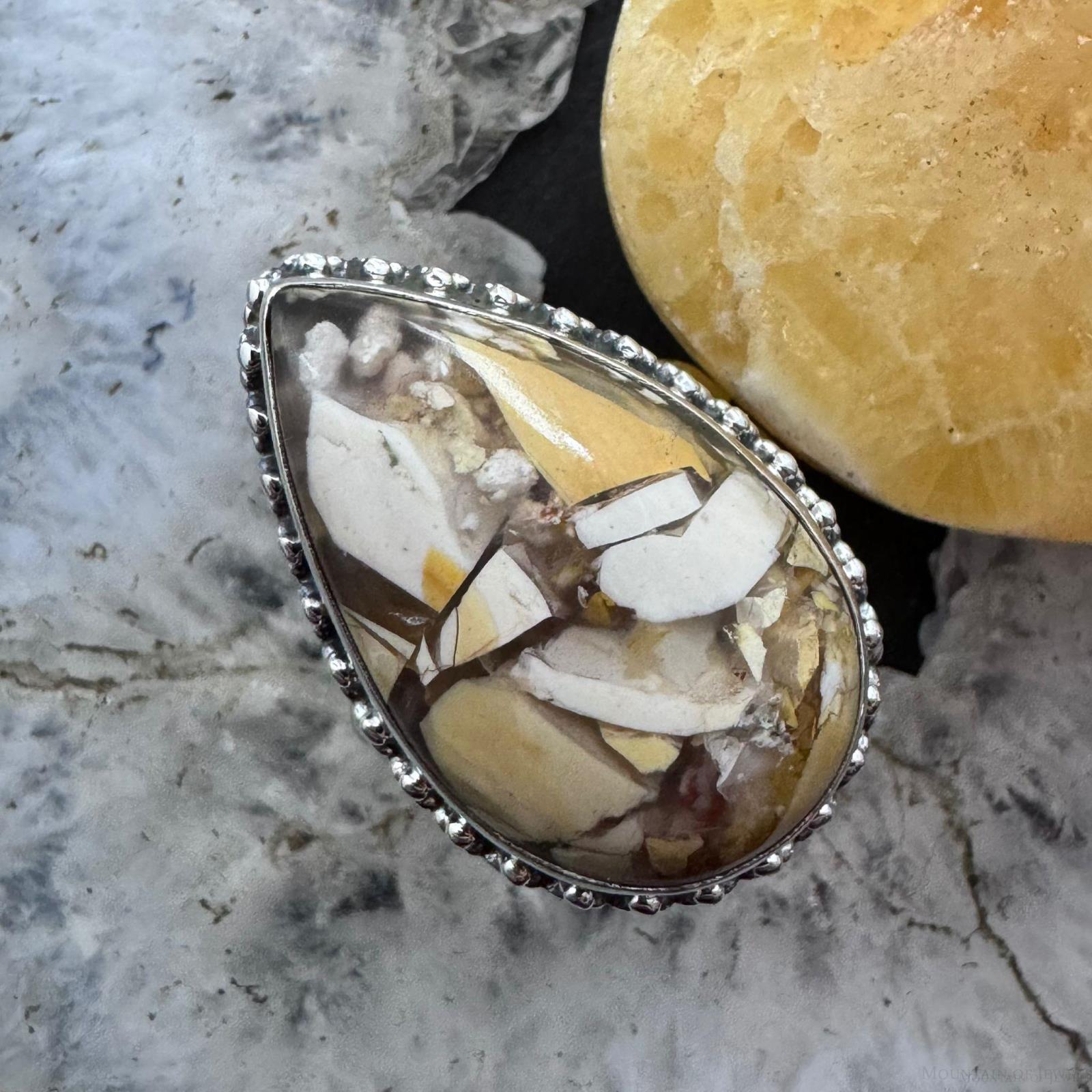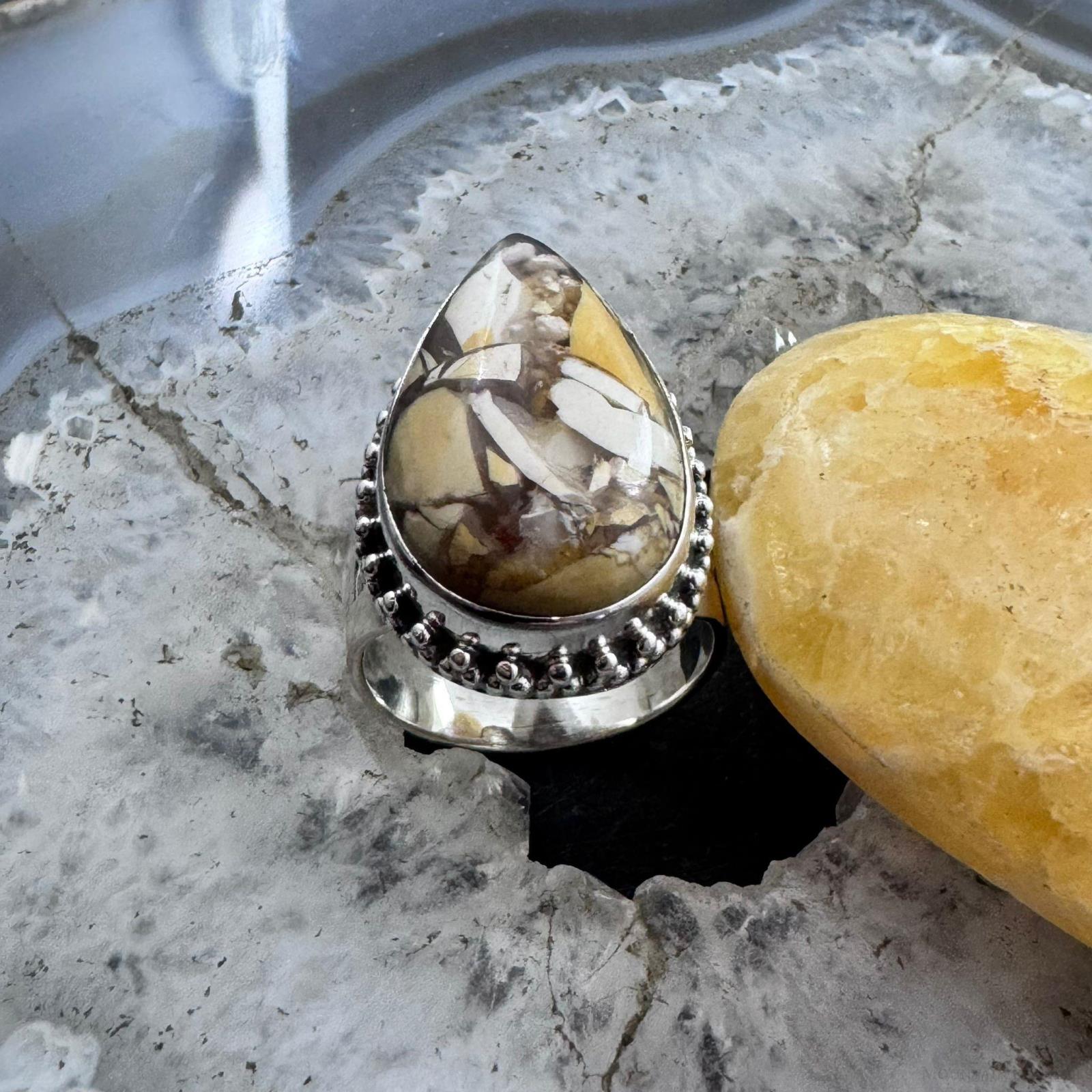 Sterling Silver Southwestern Style Teardrop Peanut Wood Ring Size 8.5 For Women