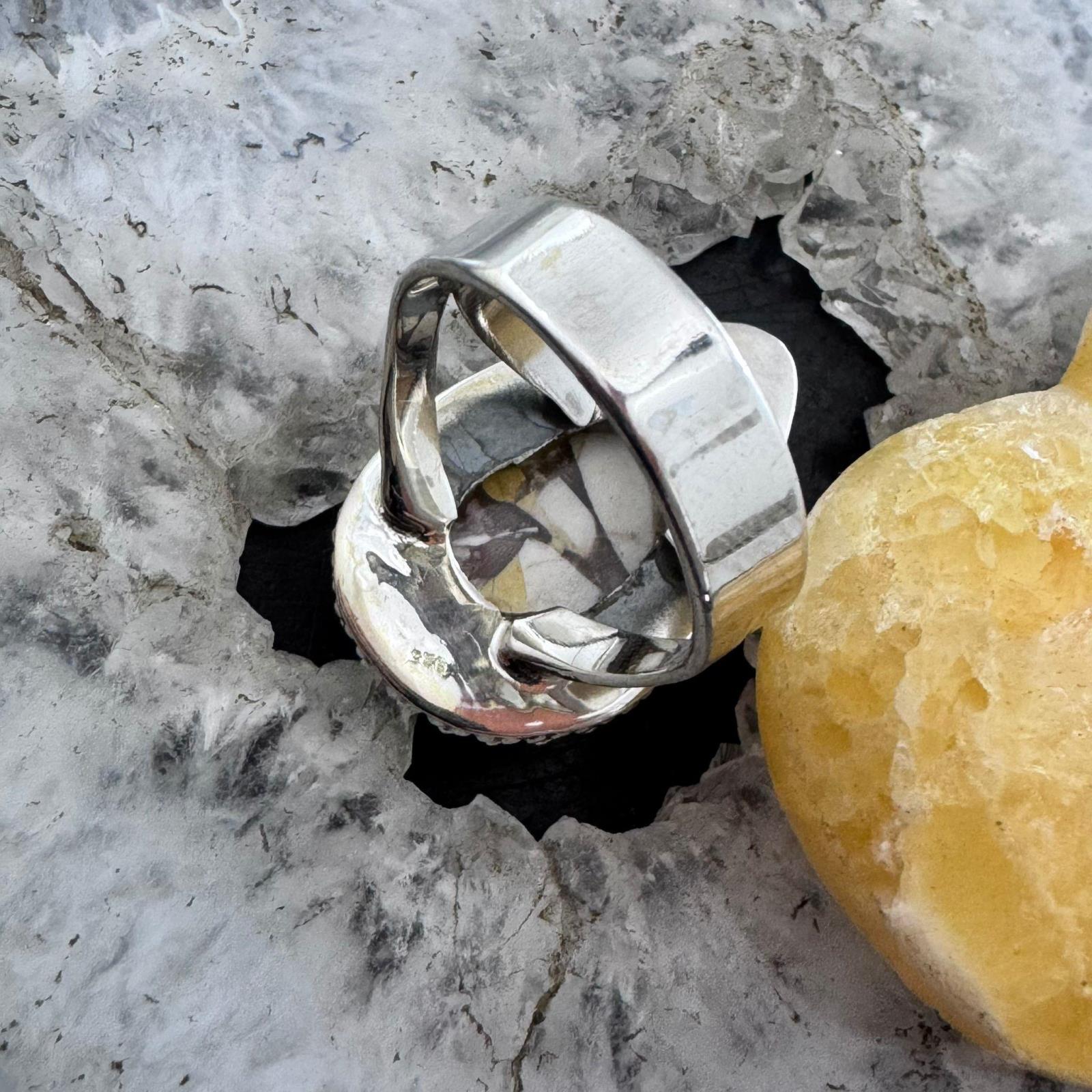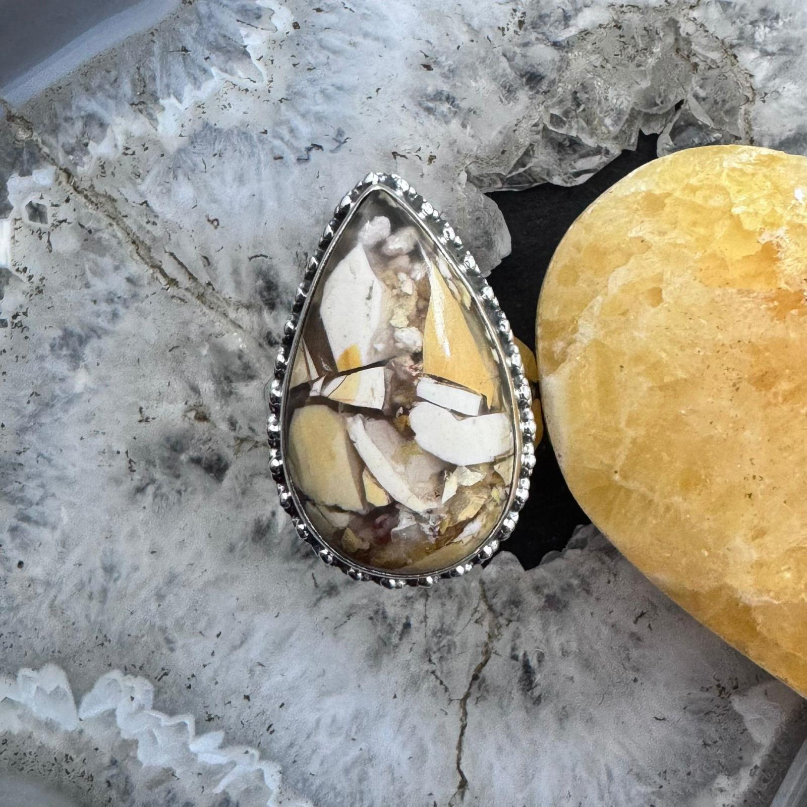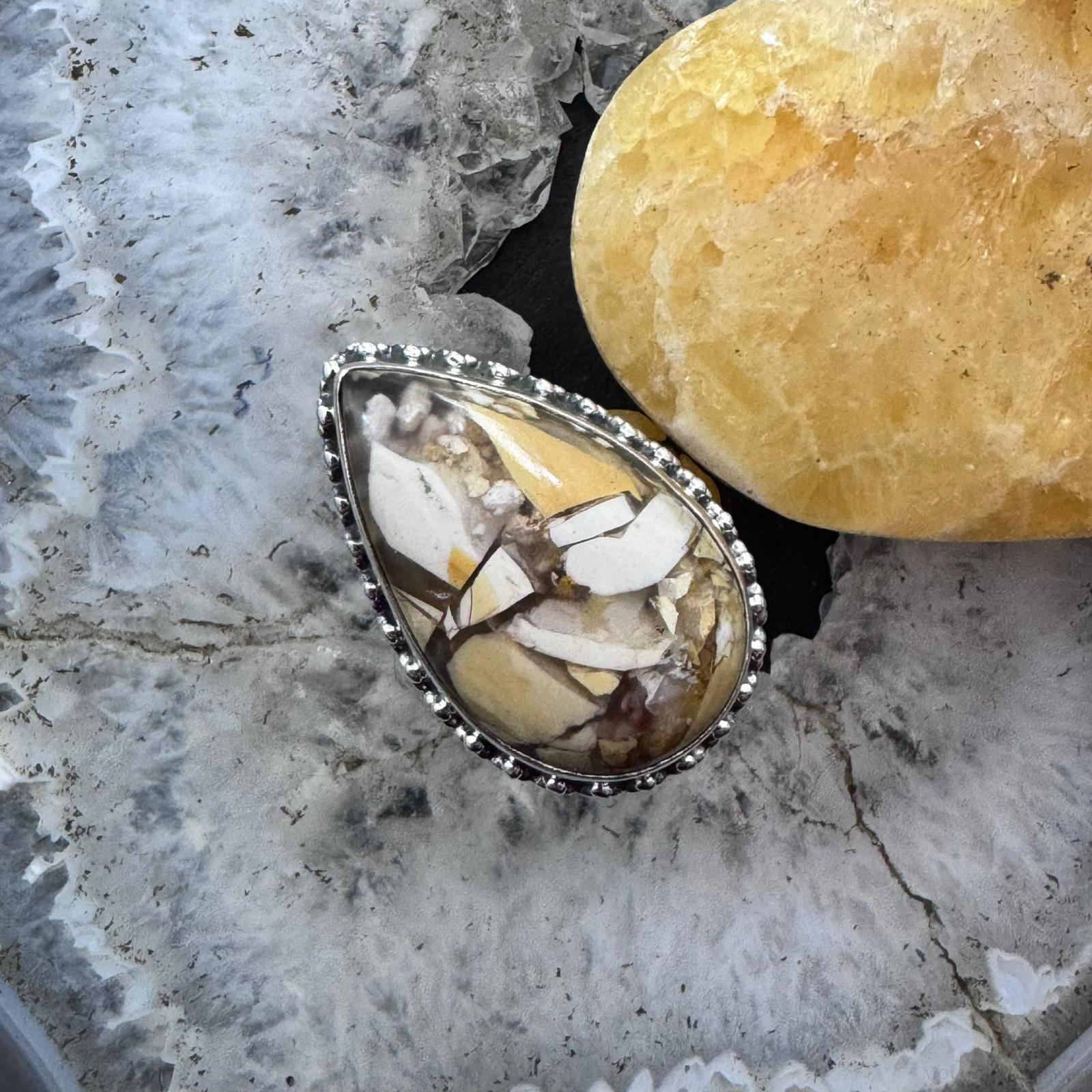 Sterling Silver Southwestern Style Teardrop Peanut Wood Ring Size 8.5 For Women