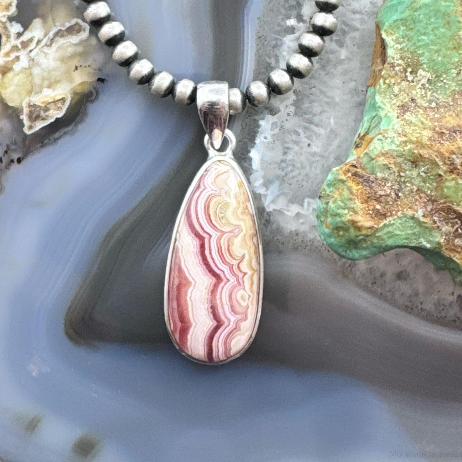 Sterling Silver Southwestern Style Teardrop Rhodochrosite Pendant For Women #1