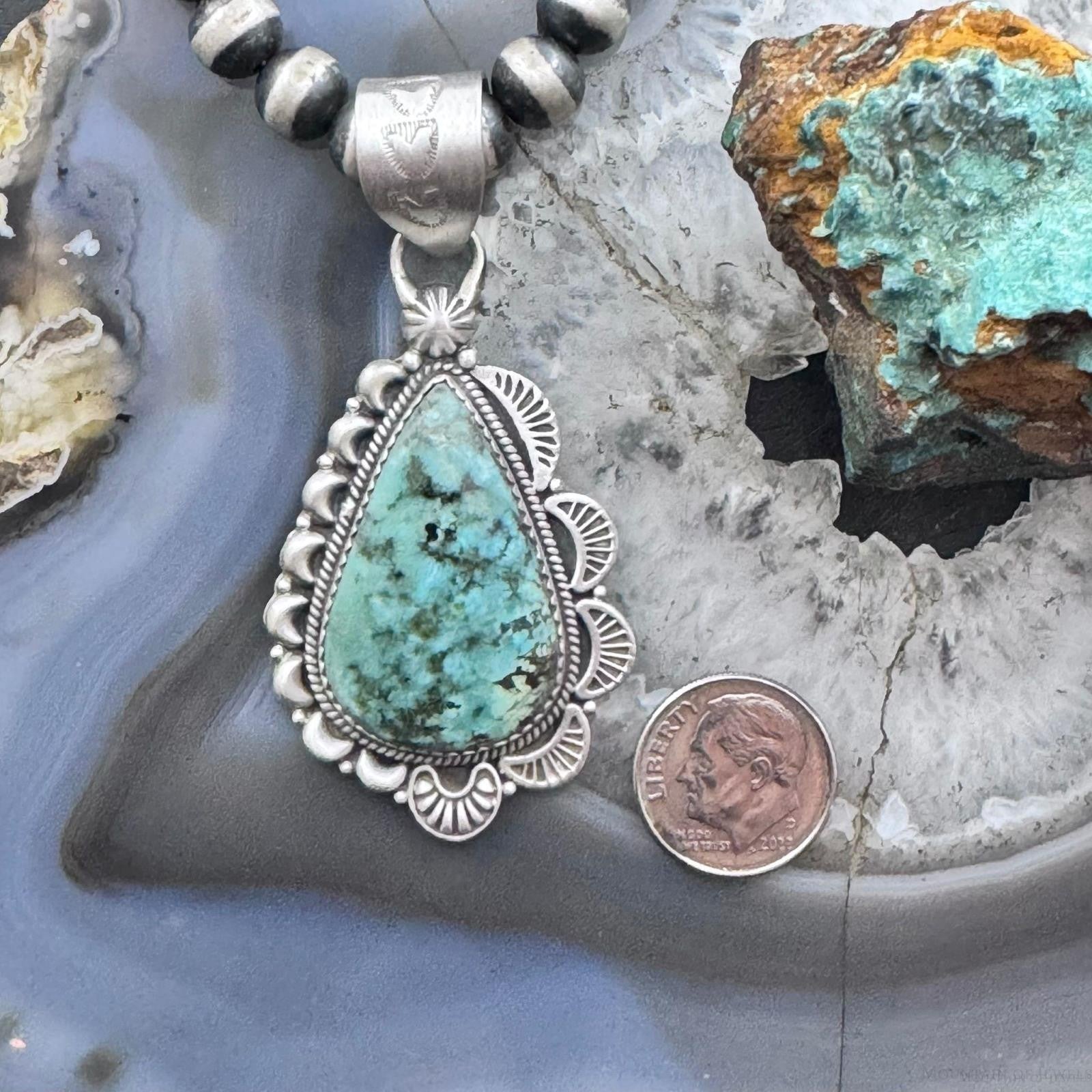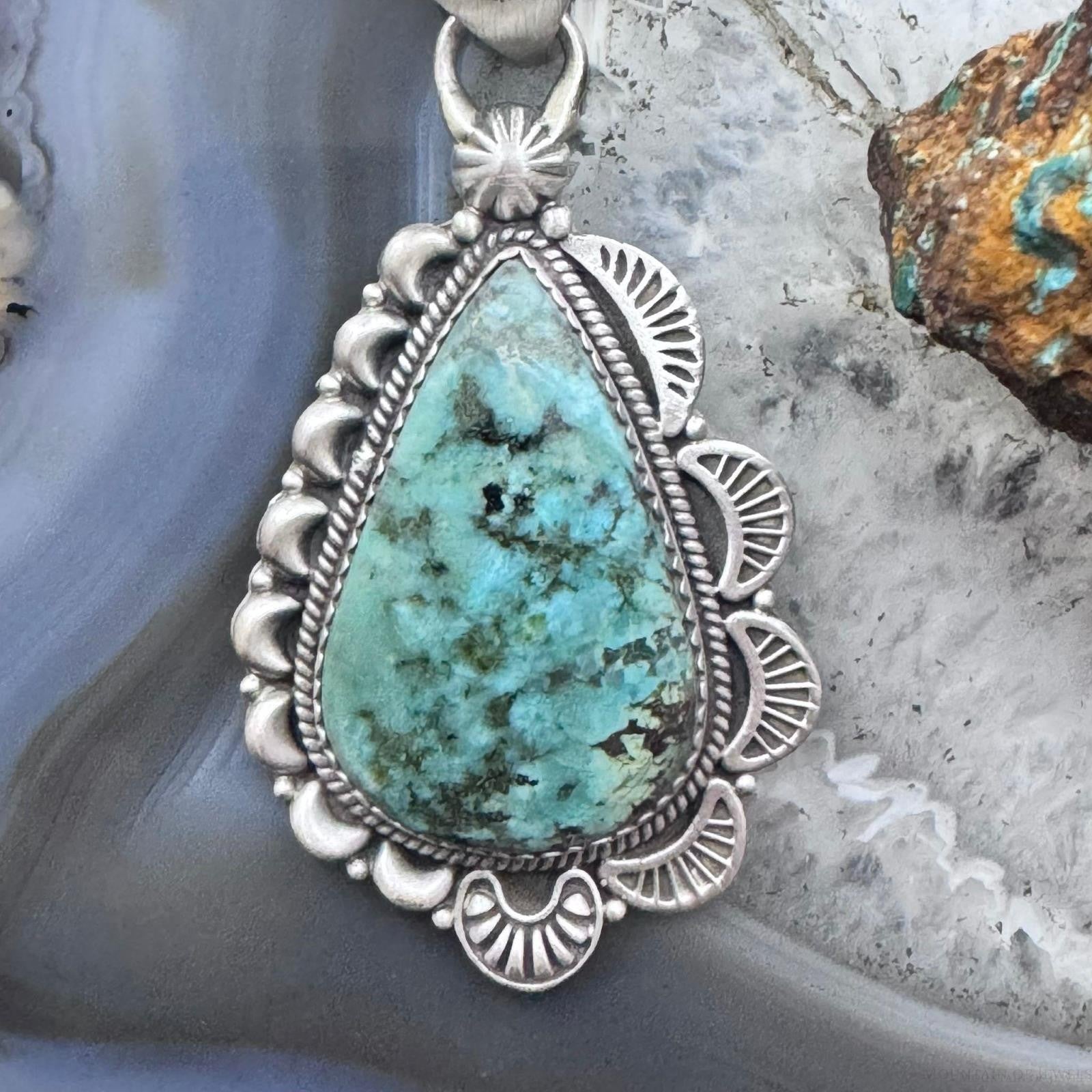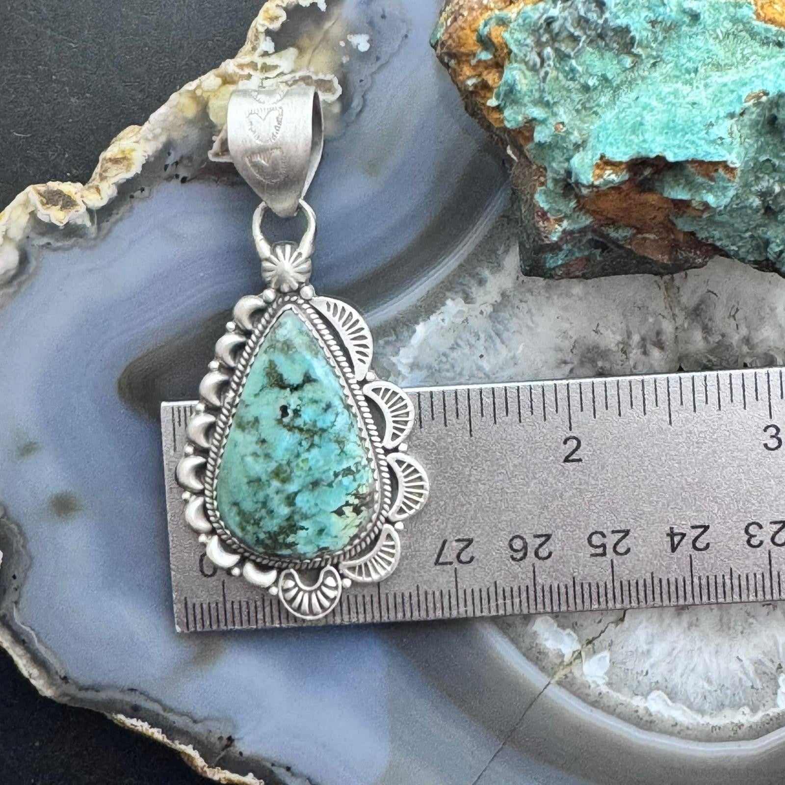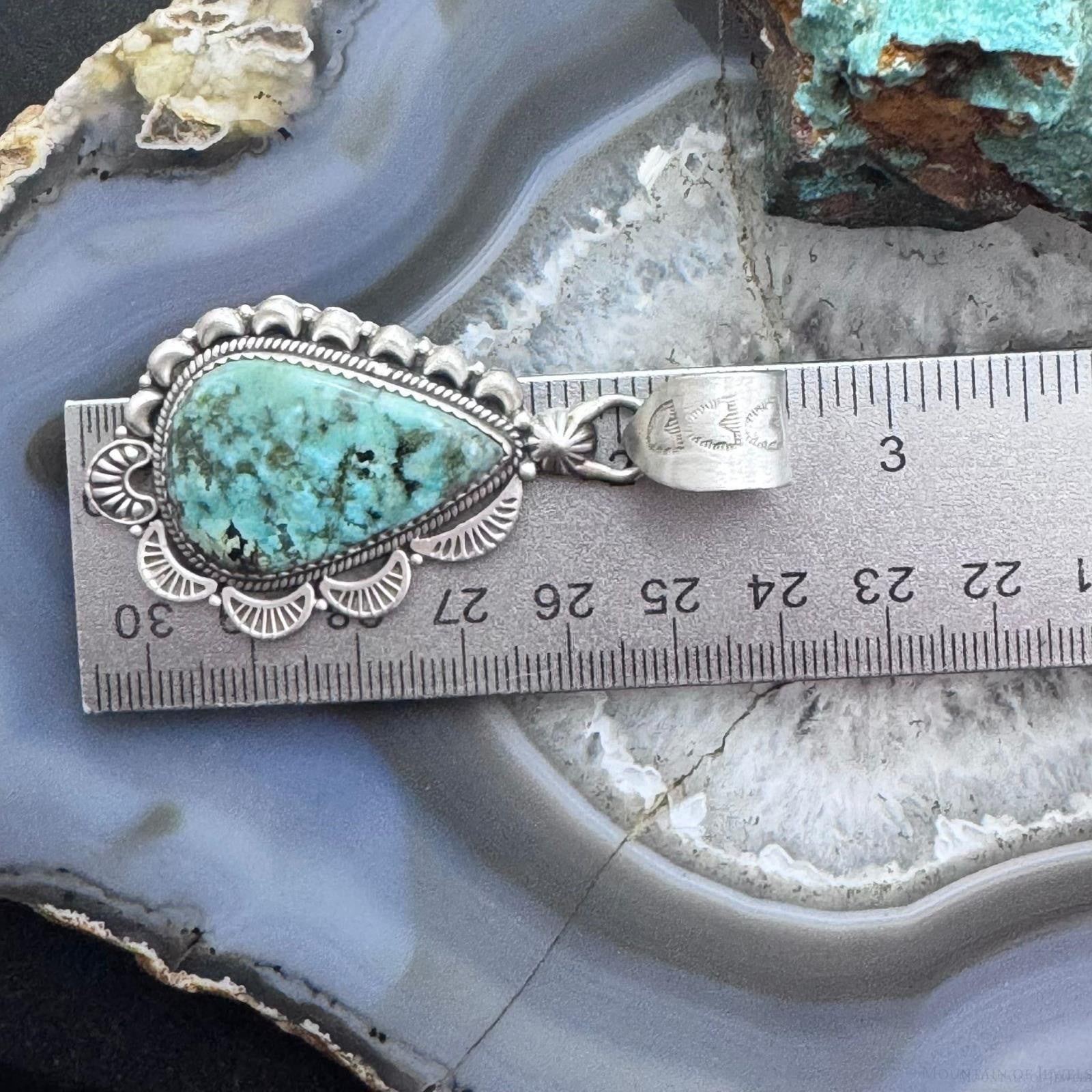 Sterling Silver Southwestern Style Teardrop Royston Turquoise Decorated Pendant For Women.