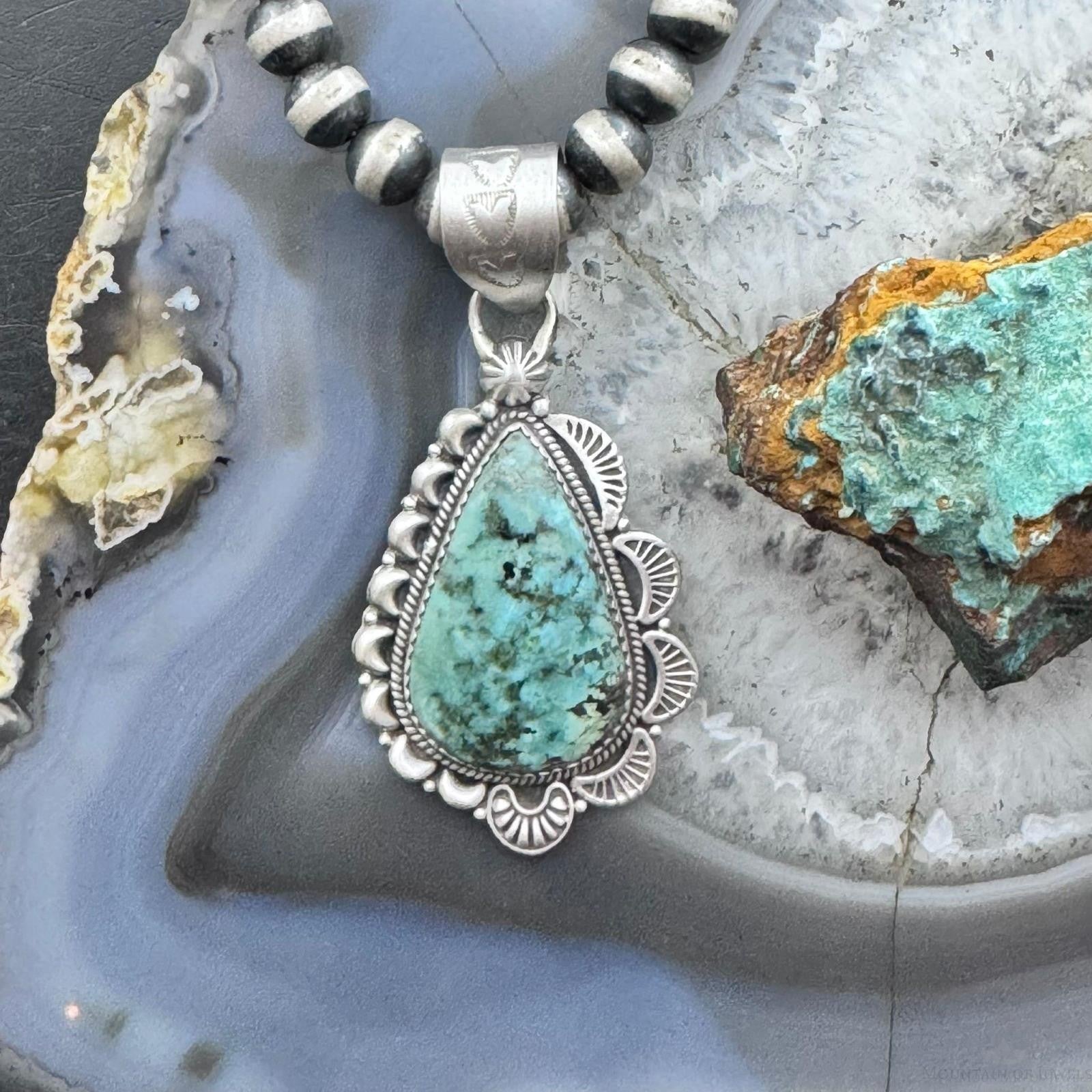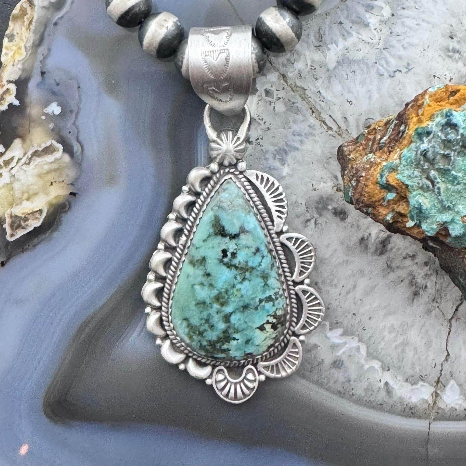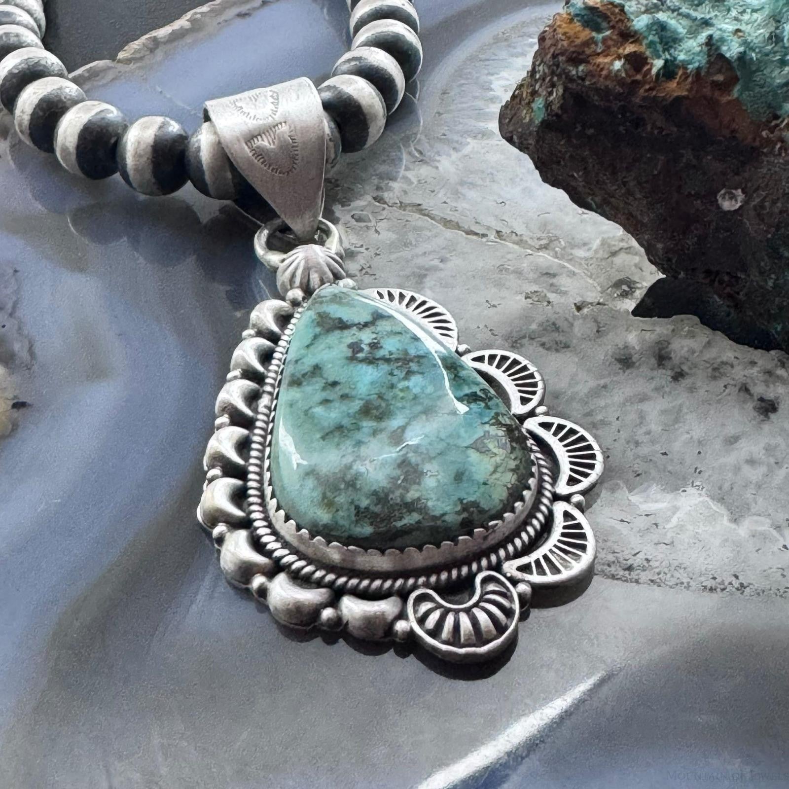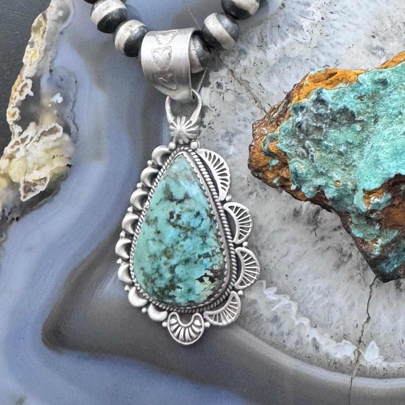 Sterling Silver Southwestern Style Teardrop Royston Turquoise Decorated Pendant For Women.