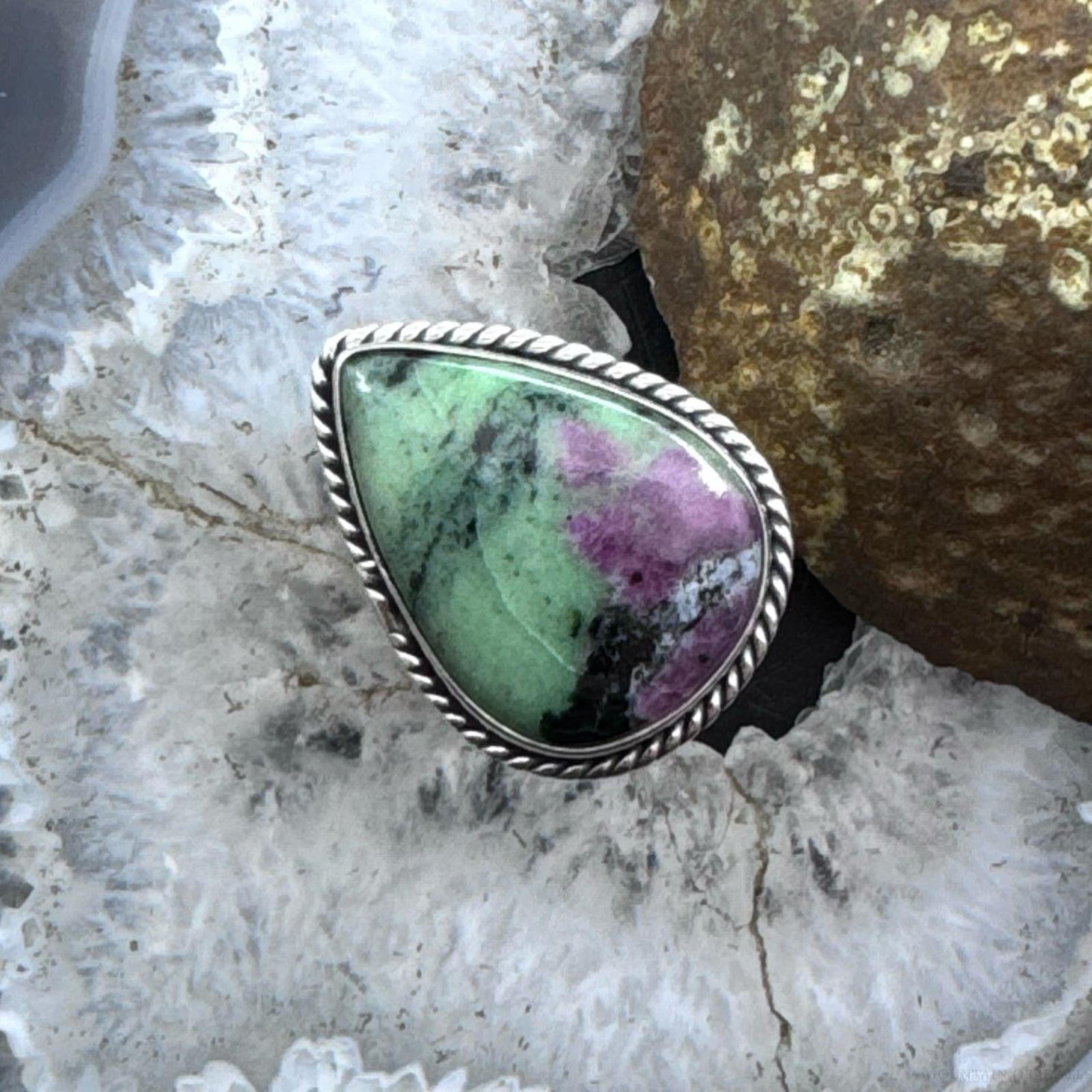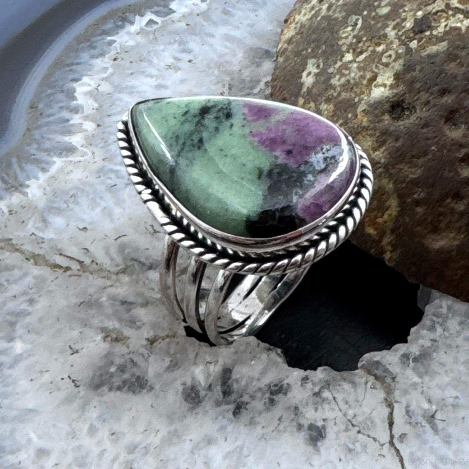 Sterling Silver Southwestern Style Teardrop Ruby Zoisite Ring Size 9 For Women