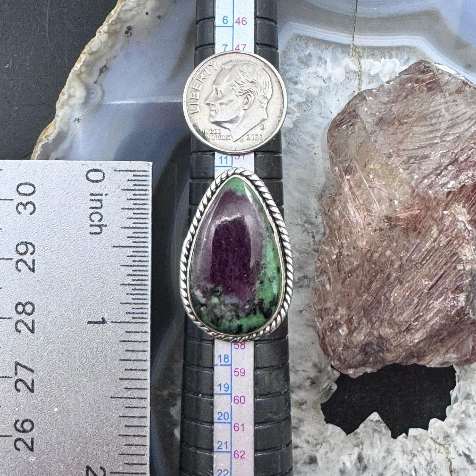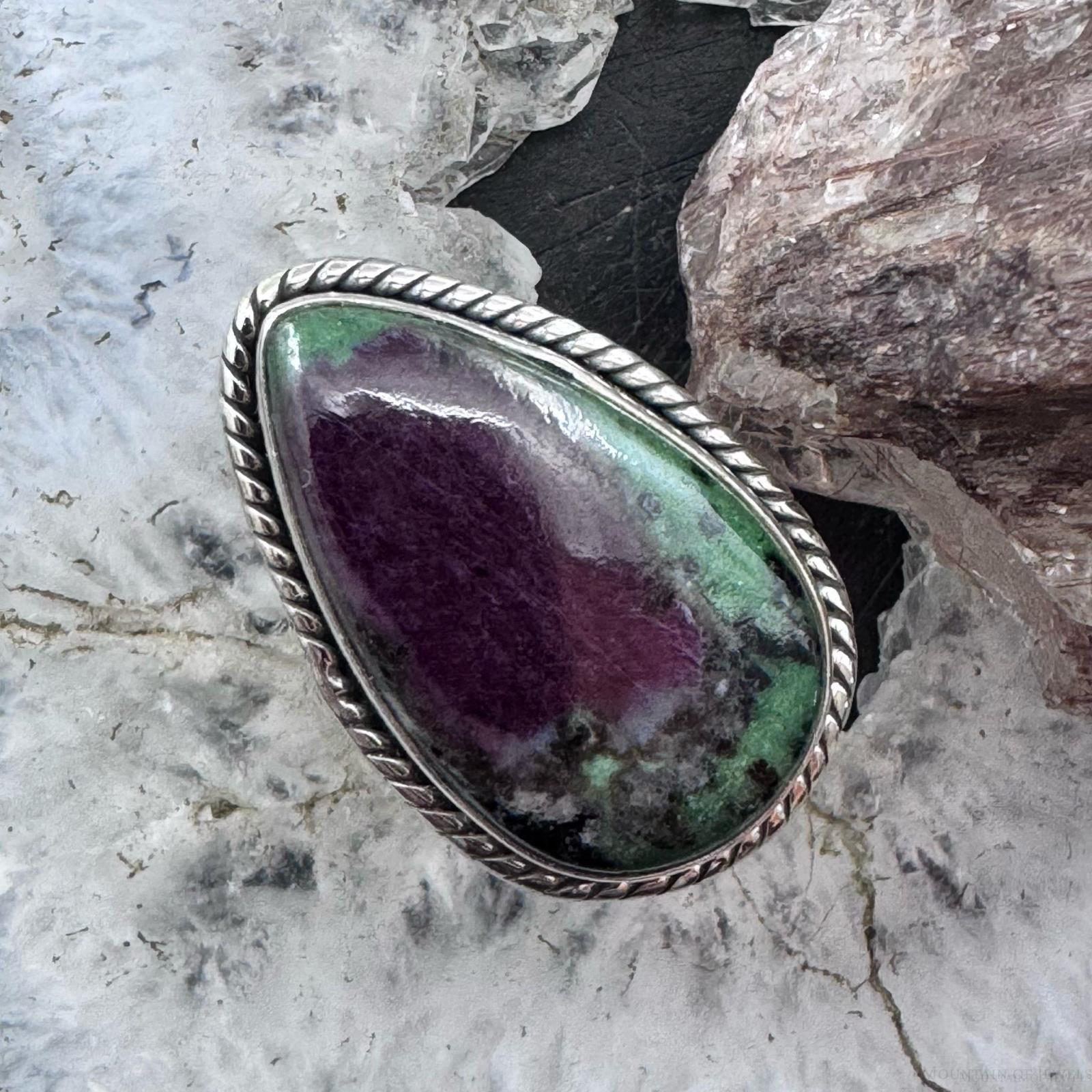 Sterling Silver Southwestern Style Teardrop Ruby Zosite Ring Size 7.25 For Women