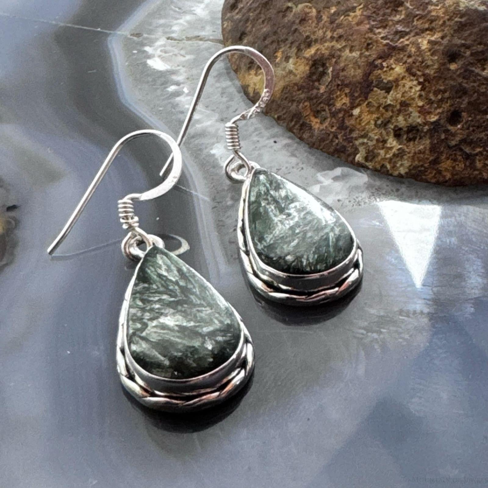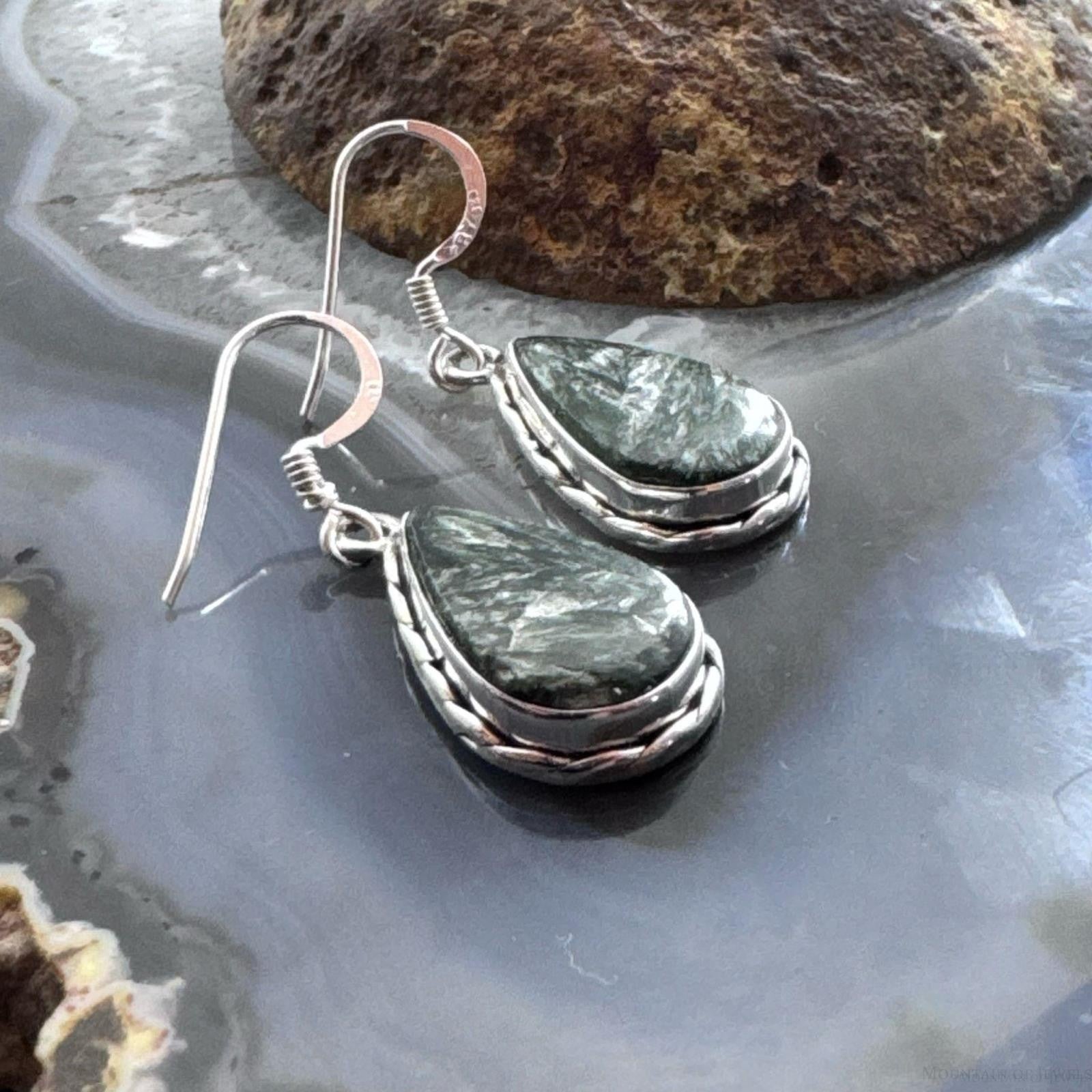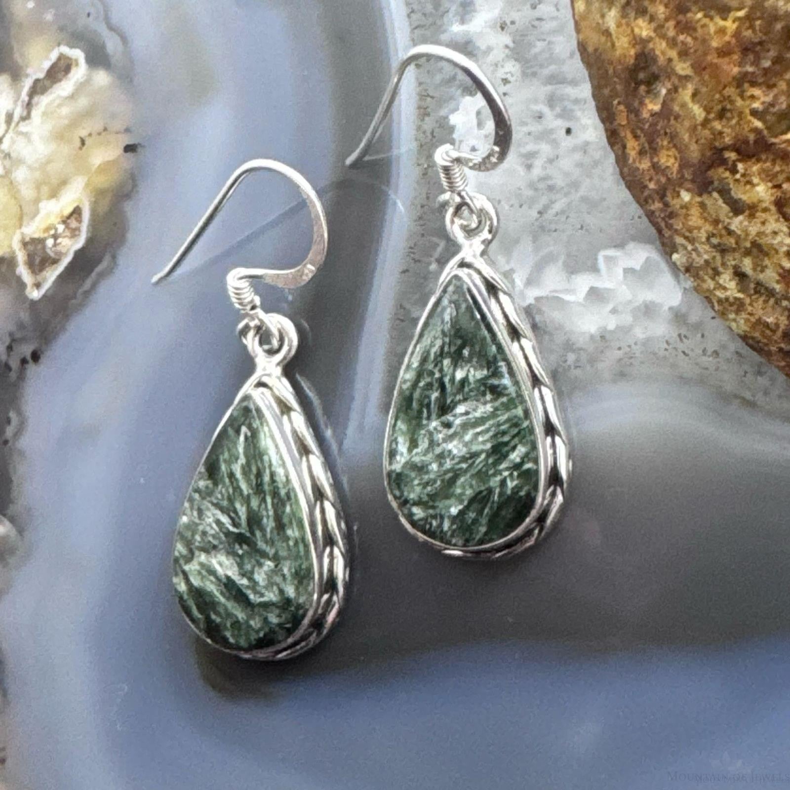 Sterling Silver Southwestern Style Teardrop Serpentine Dangle Earrings For Women