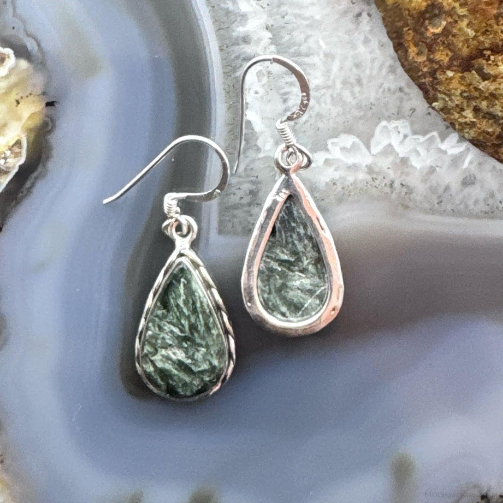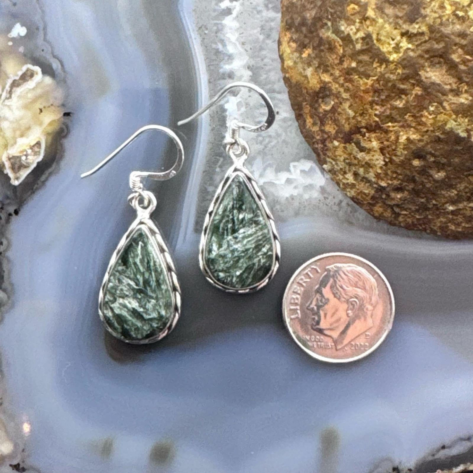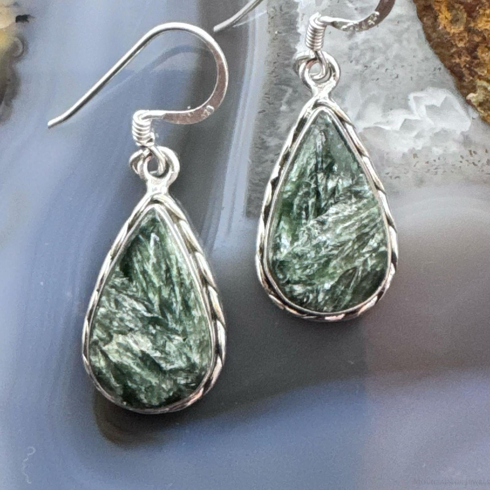Sterling Silver Southwestern Style Teardrop Serpentine Dangle Earrings For Women