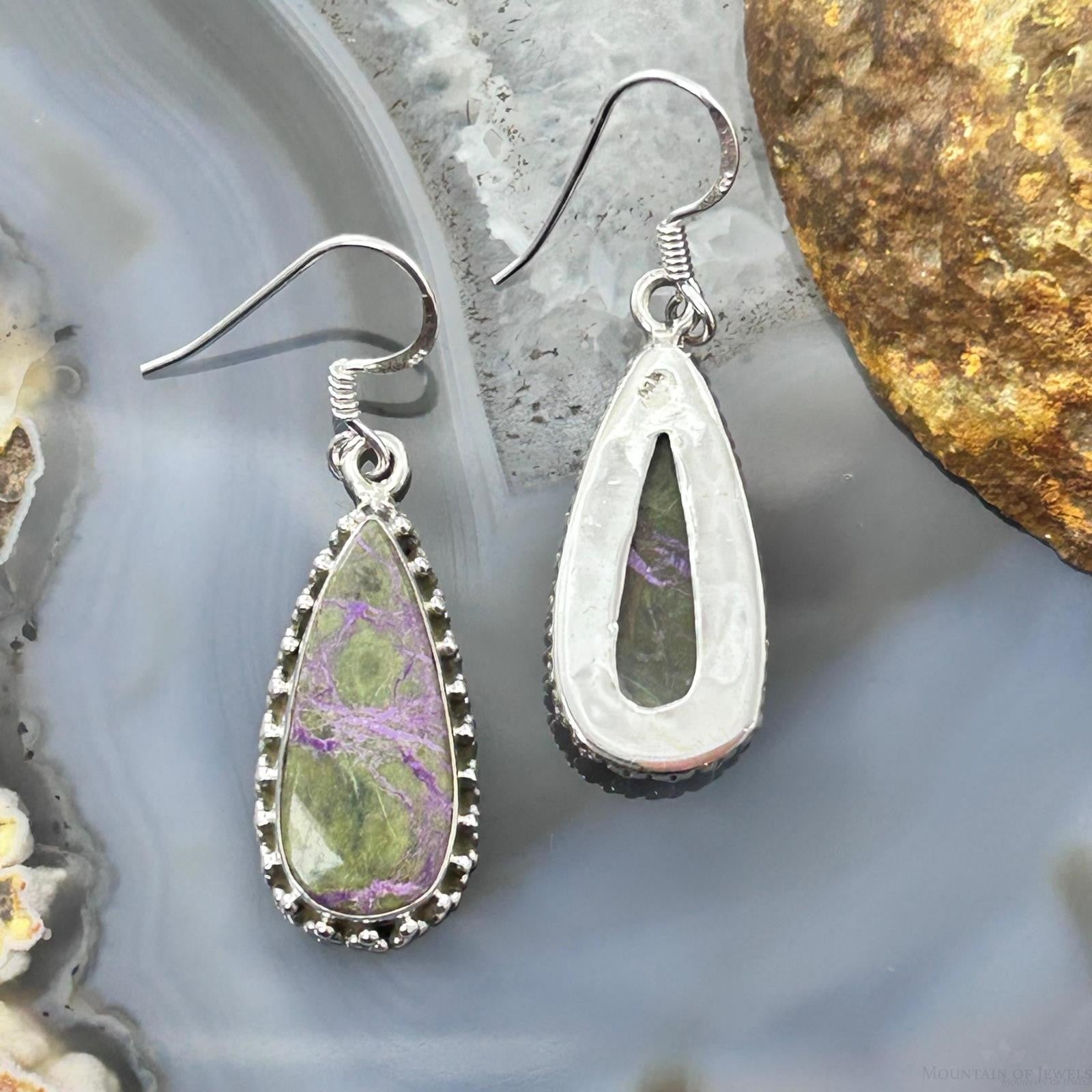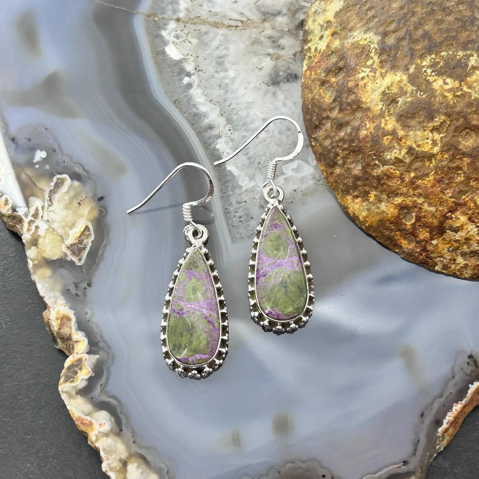 Sterling Silver Southwestern Style Teardrop Stichtite Dangle Earrings For Women