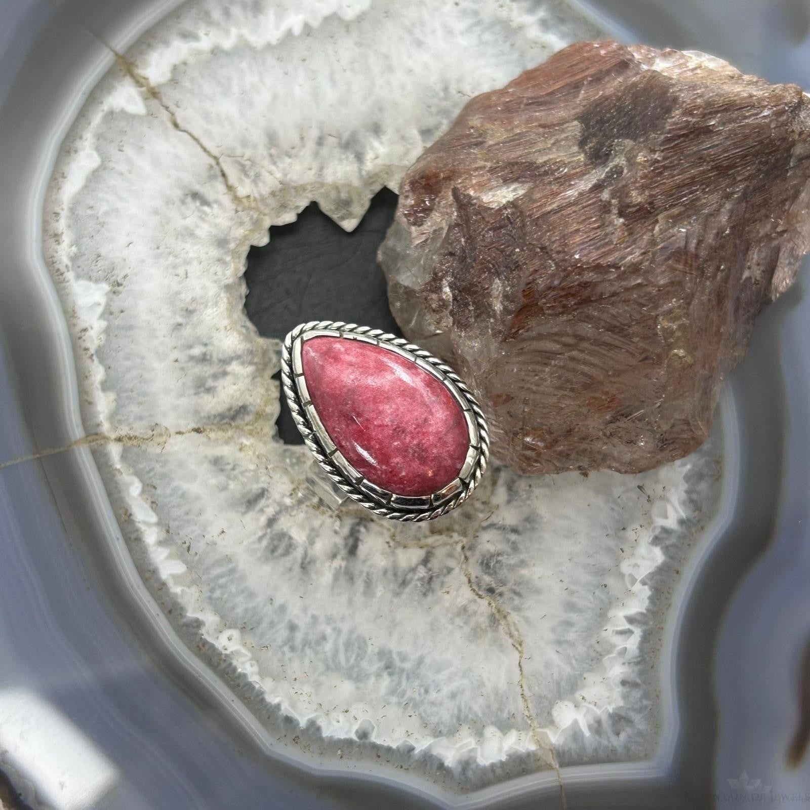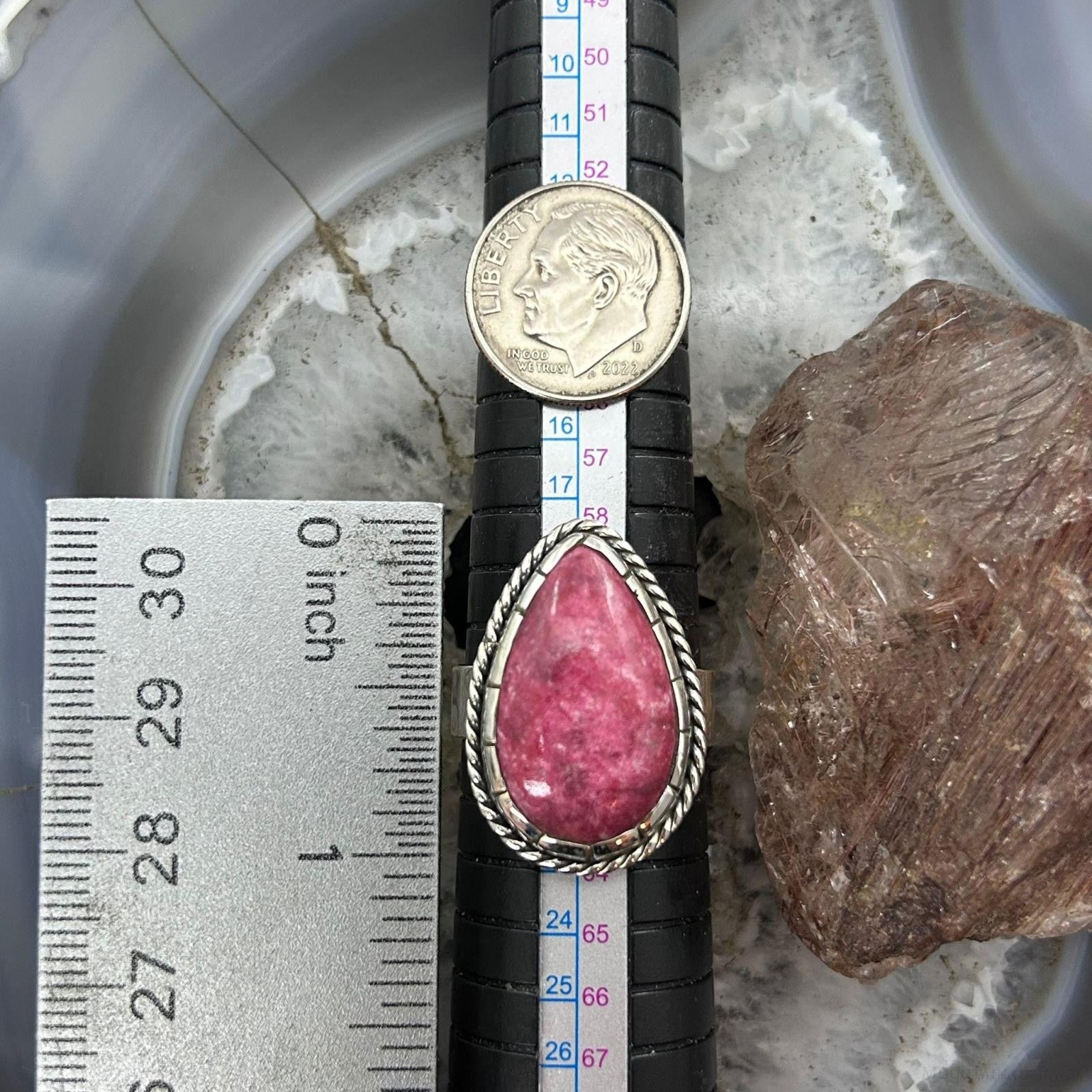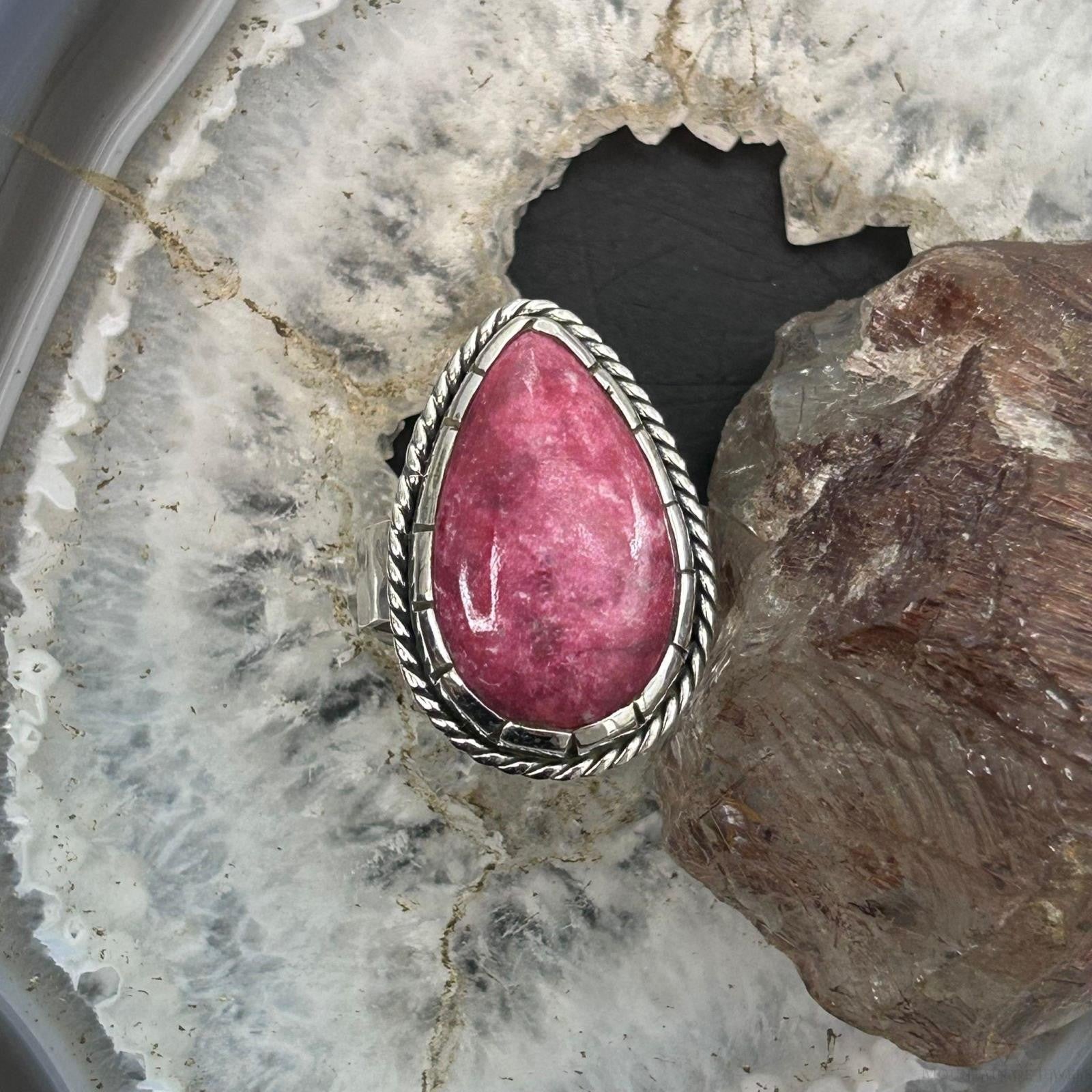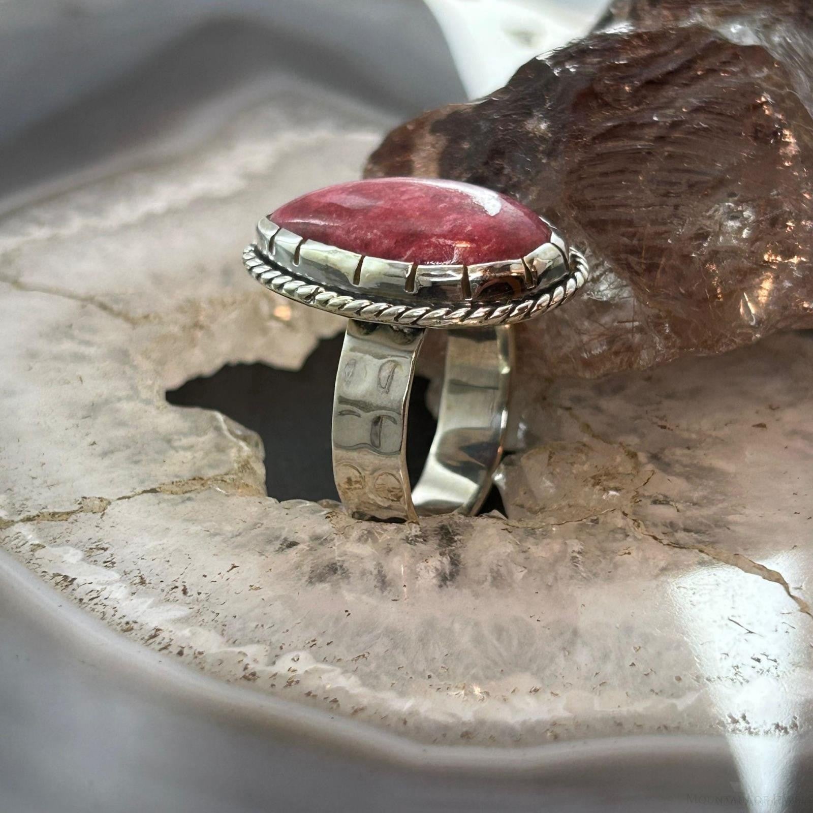 Sterling Silver Southwestern Style Teardrop Thulite Ring Size 9.75 For Women