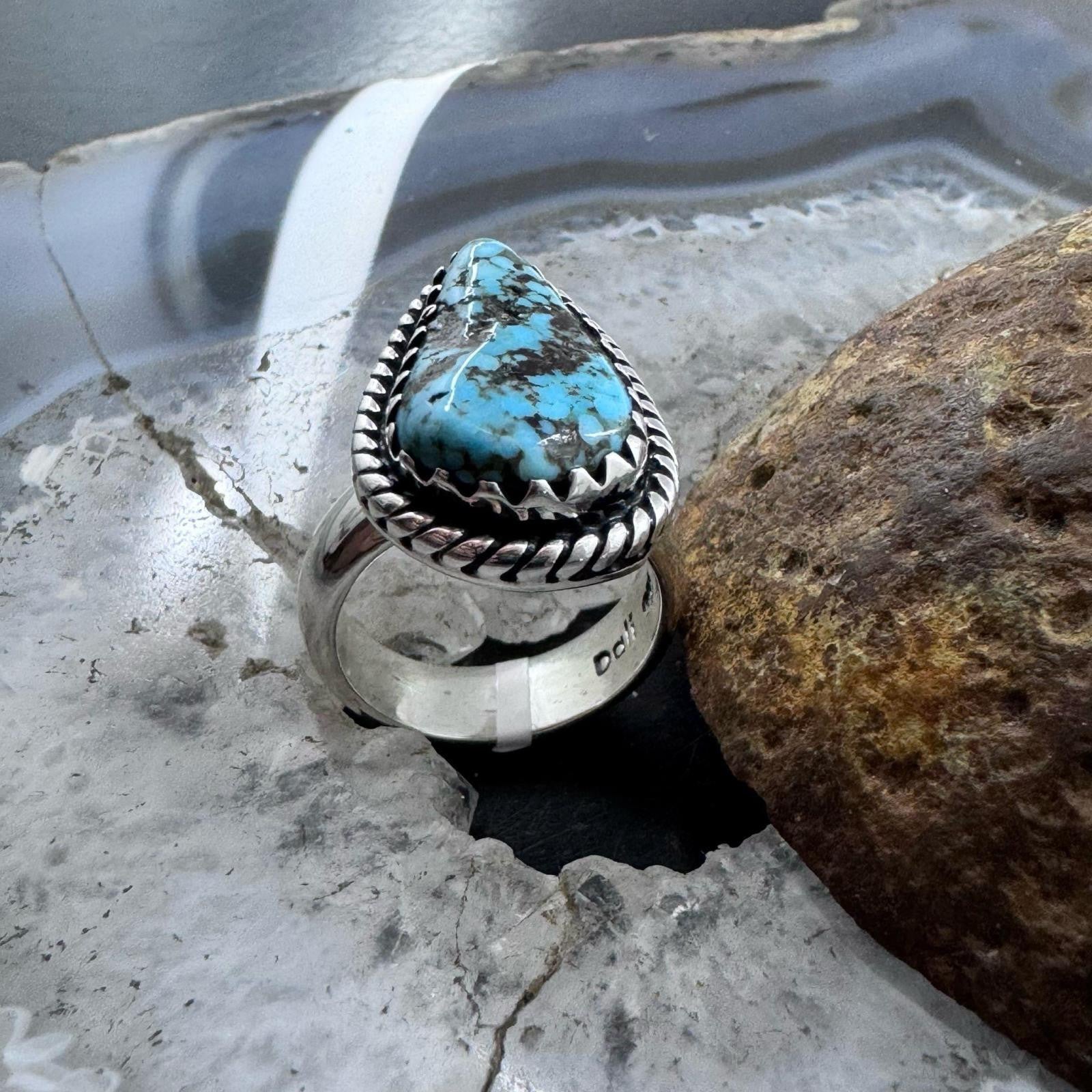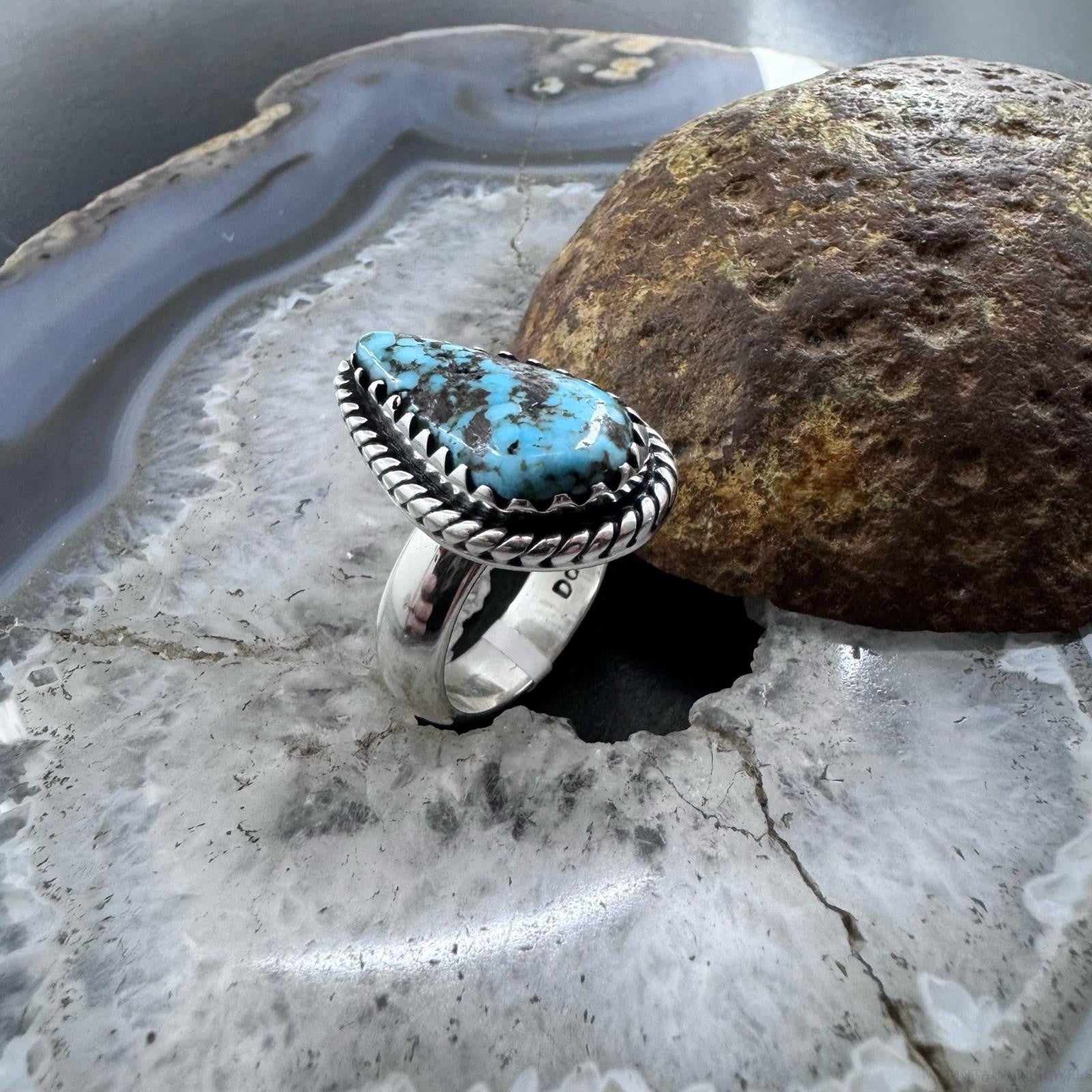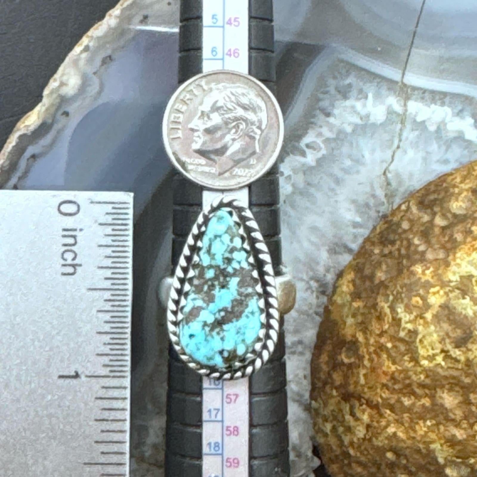 Sterling Silver Southwestern Style Teardrop Turquoise Ring Size 6.75 For Women