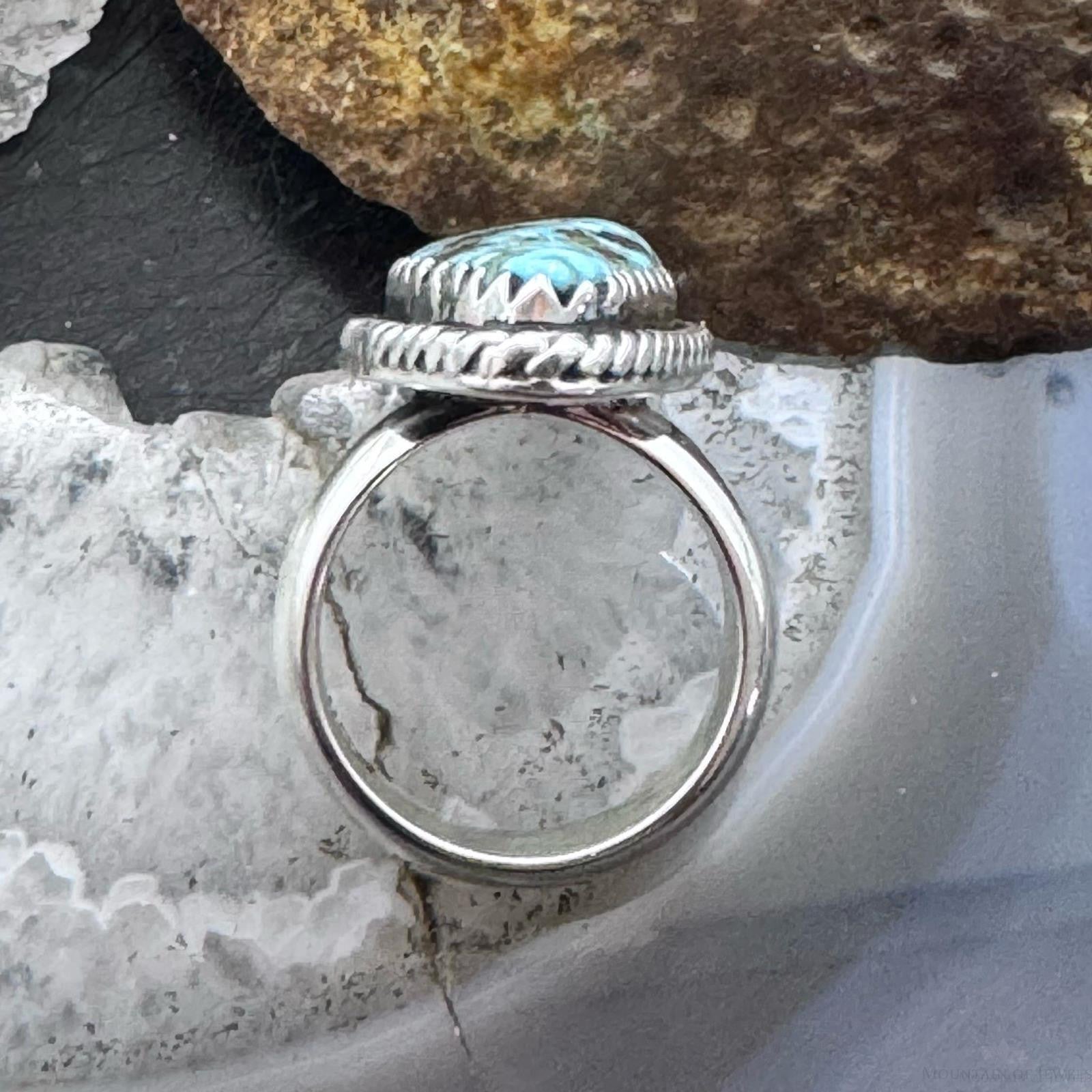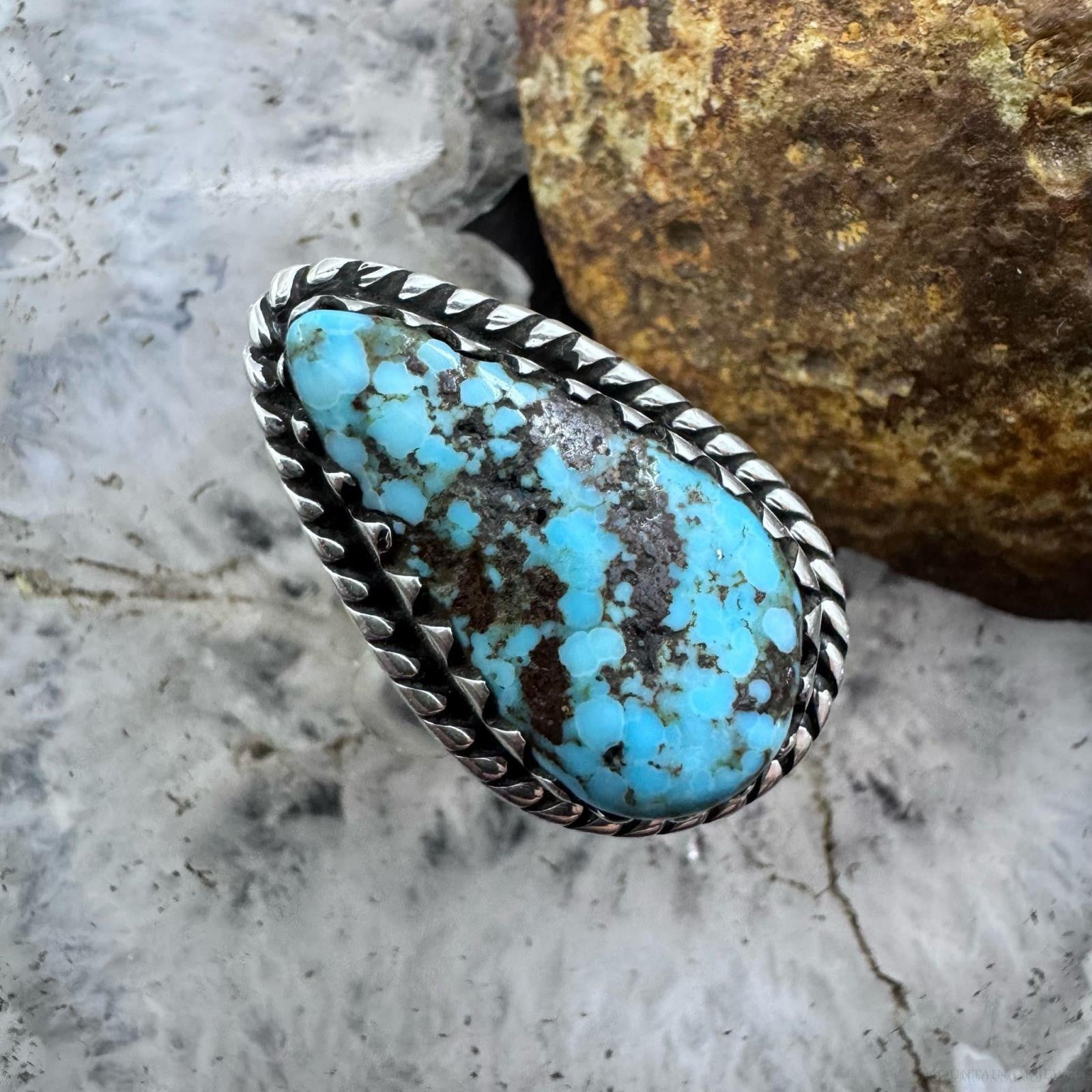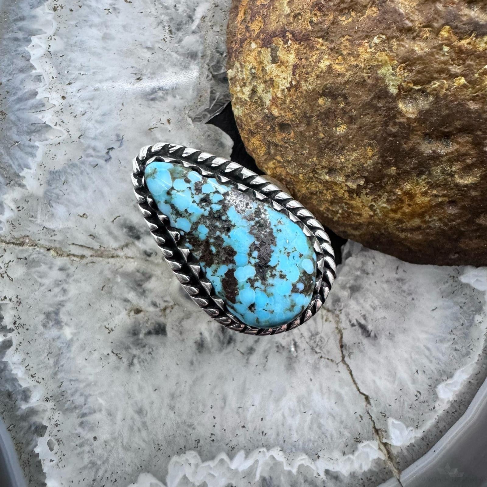 Sterling Silver Southwestern Style Teardrop Turquoise Ring Size 6.75 For Women