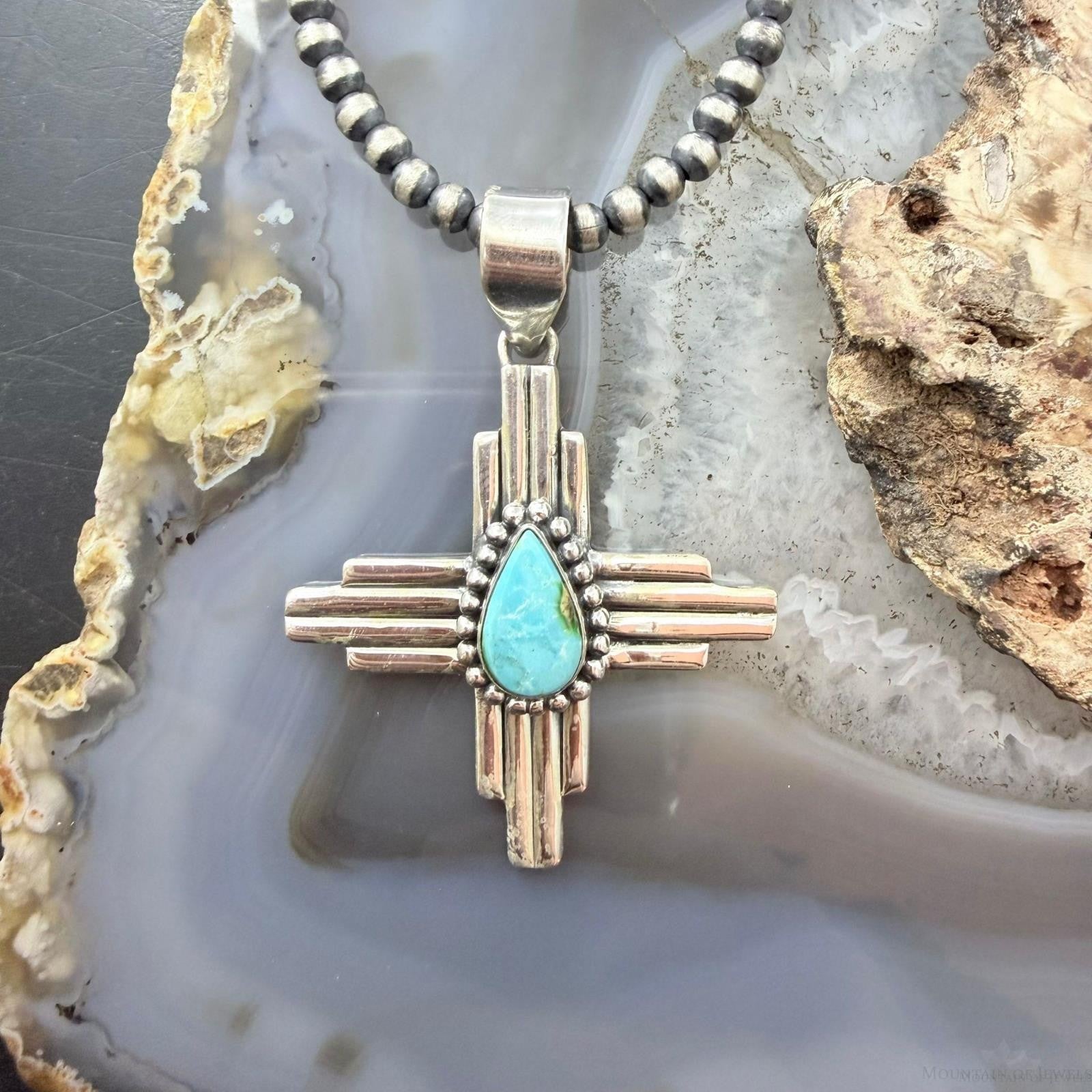 Sterling Silver Southwestern Style Teardrop Turquoise Unisex Zia Pendant