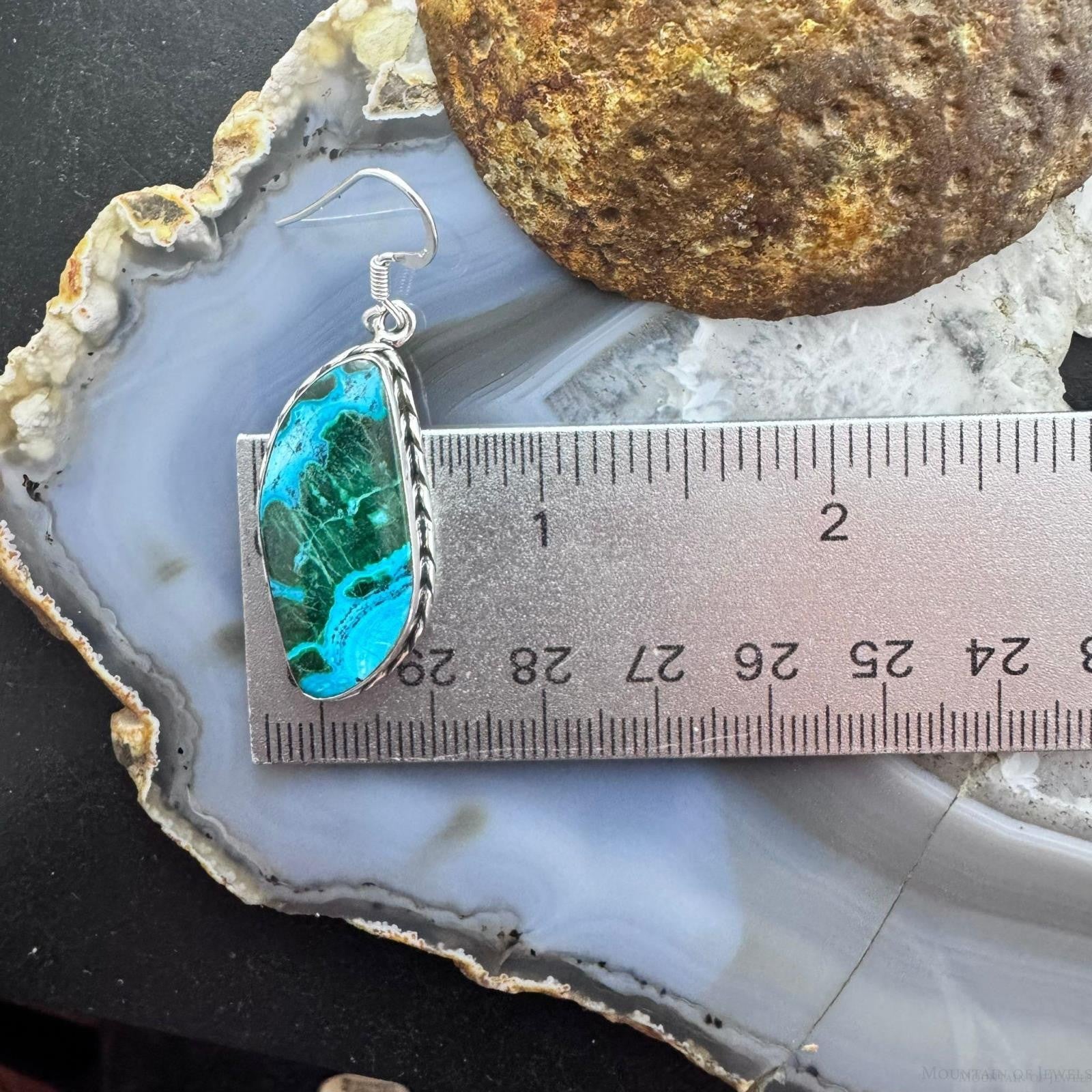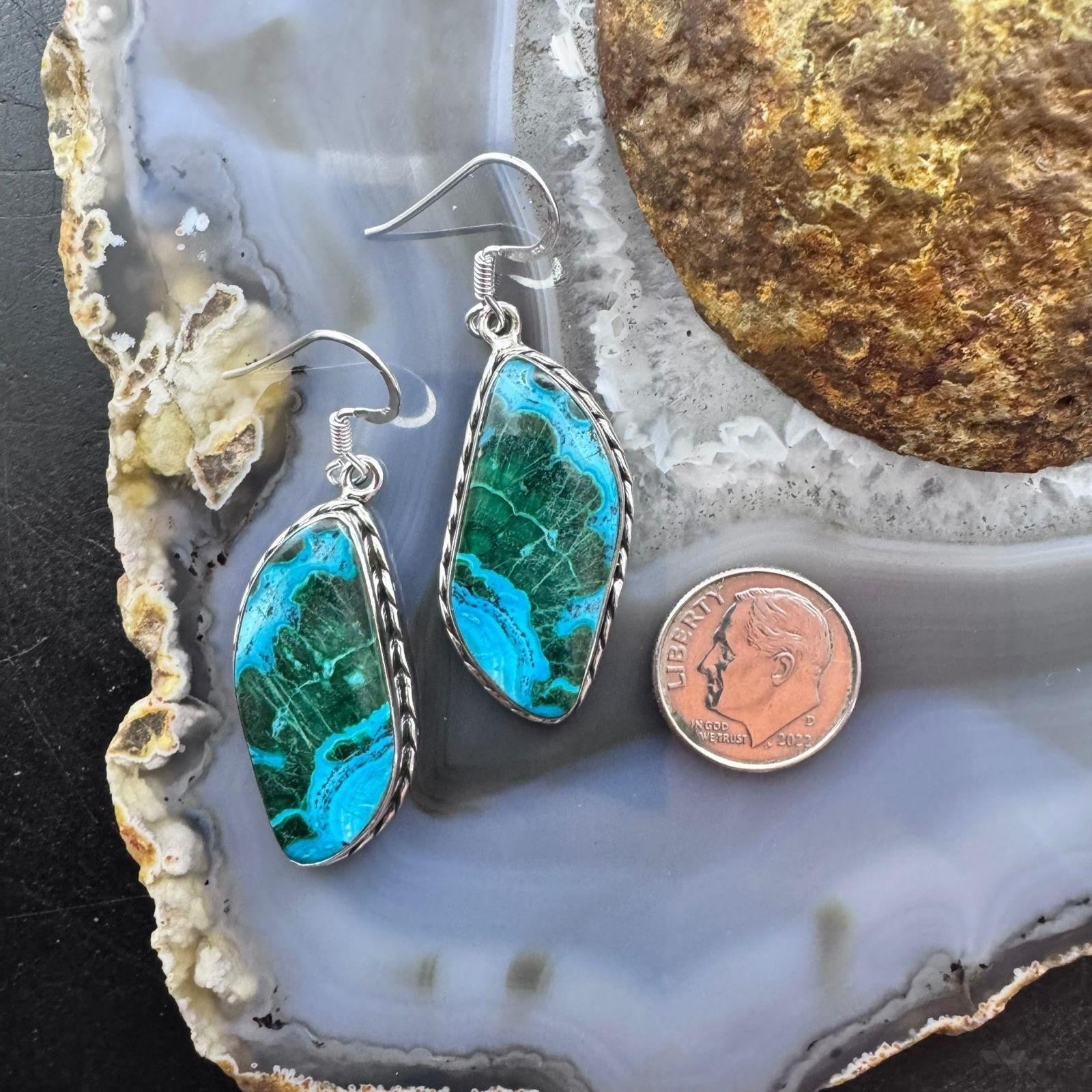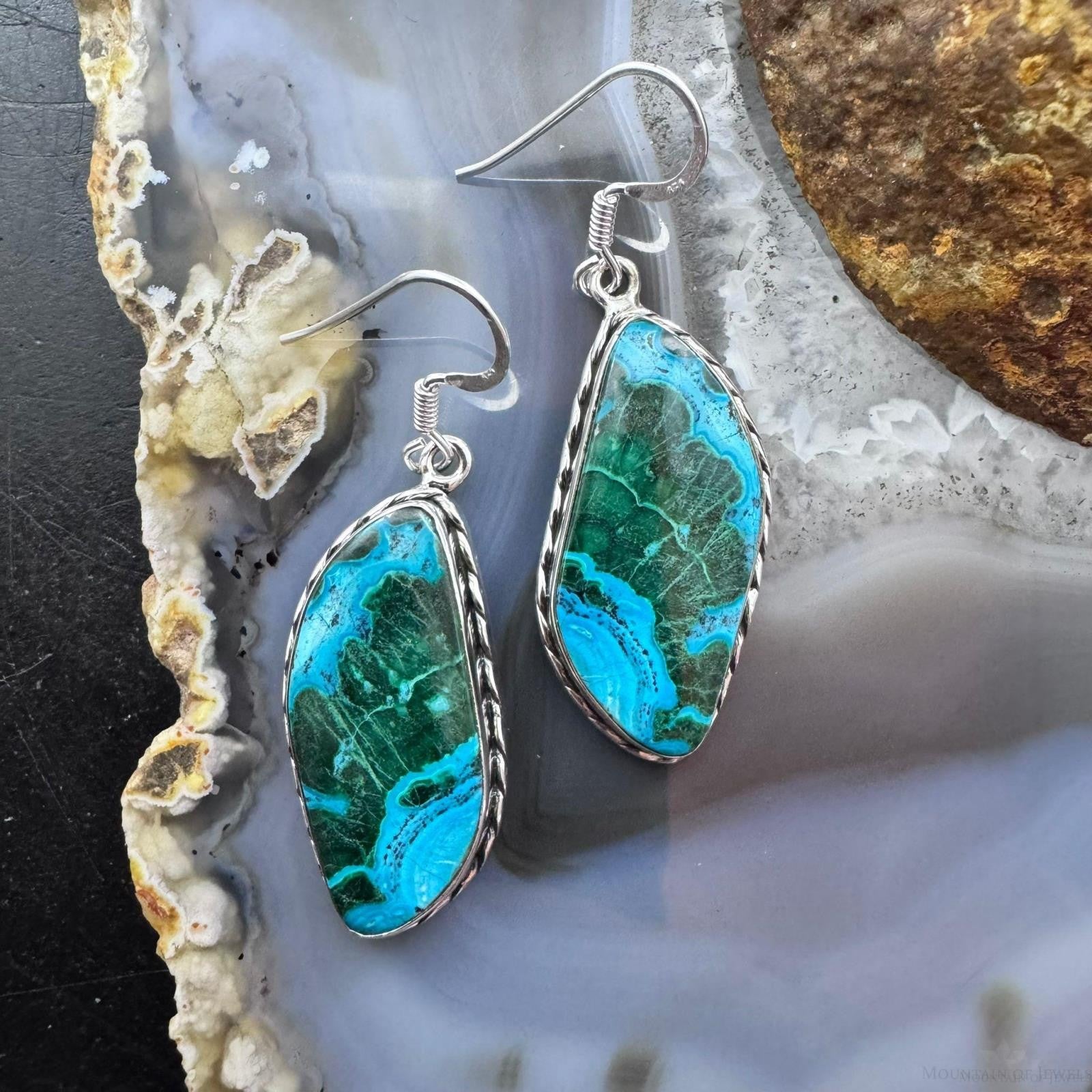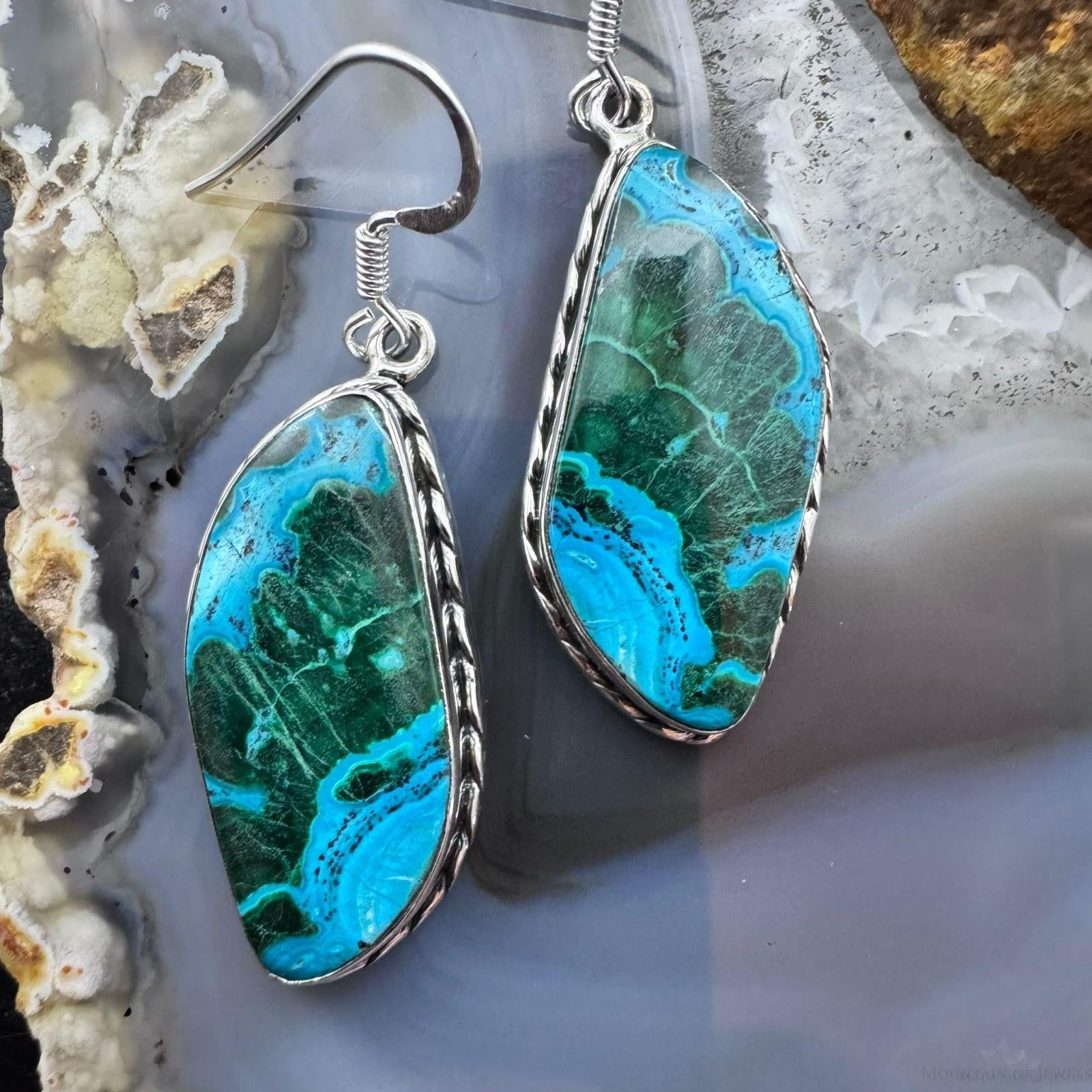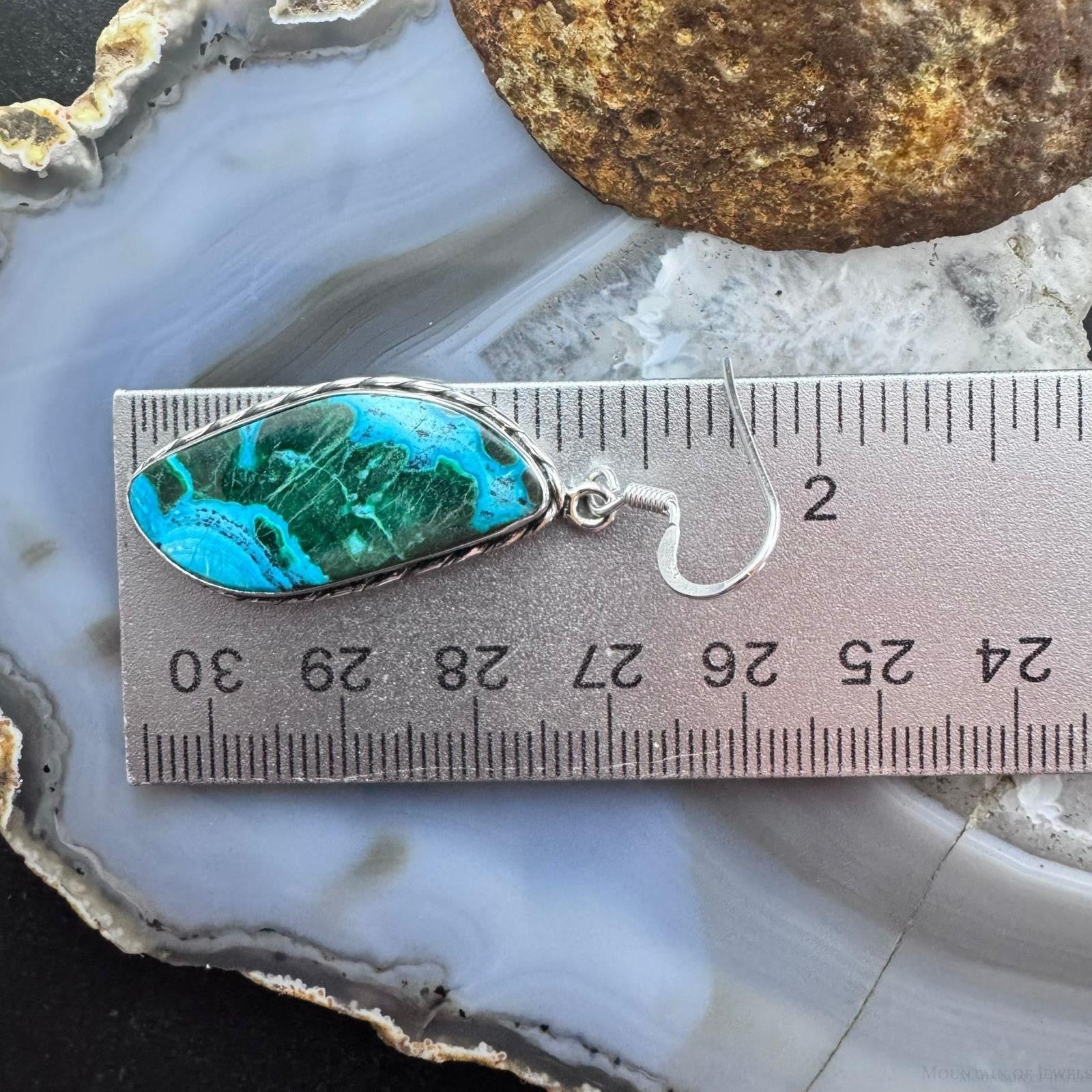 Sterling Silver Southwestern Style Tilde Malachite Azurite Dangle Earrings For Women