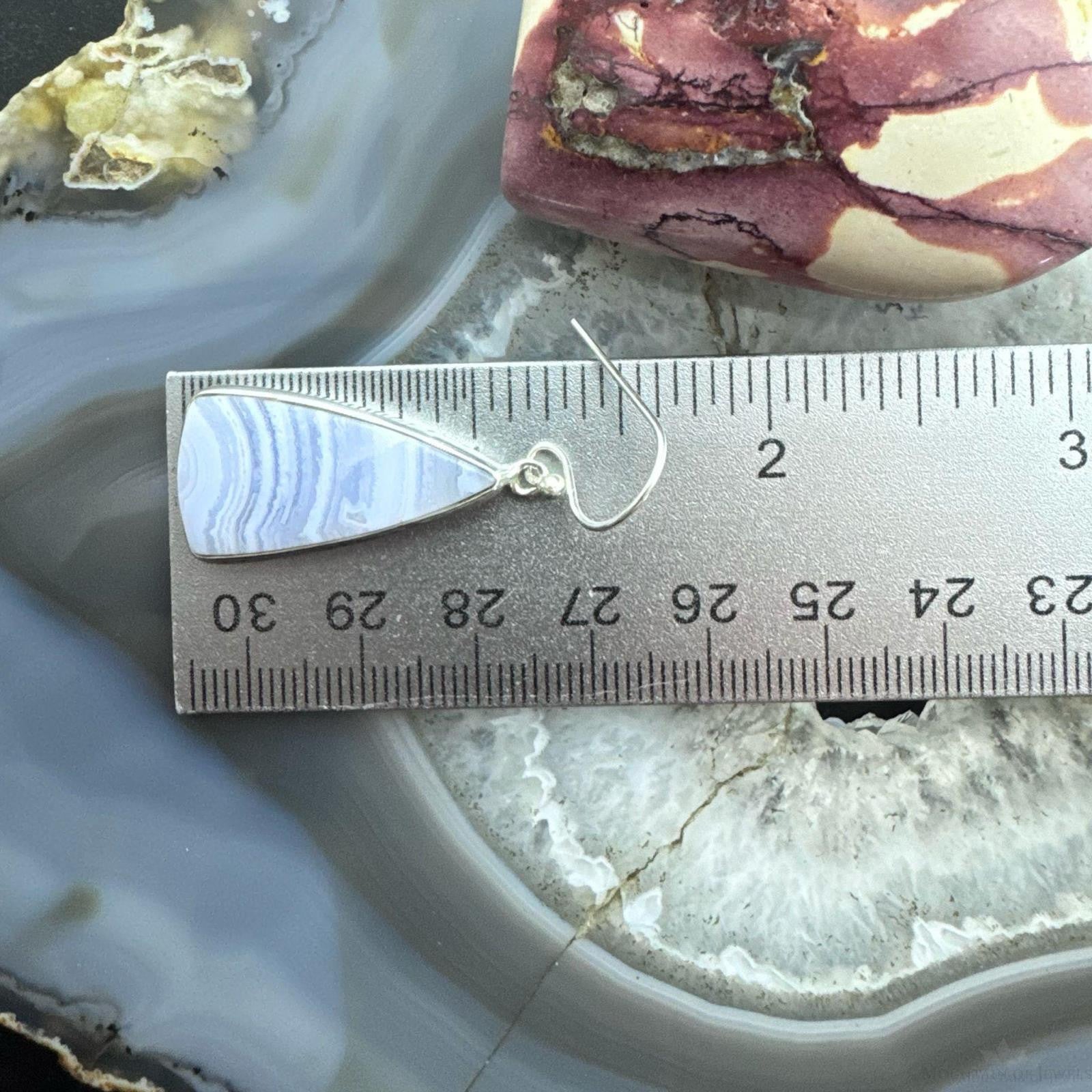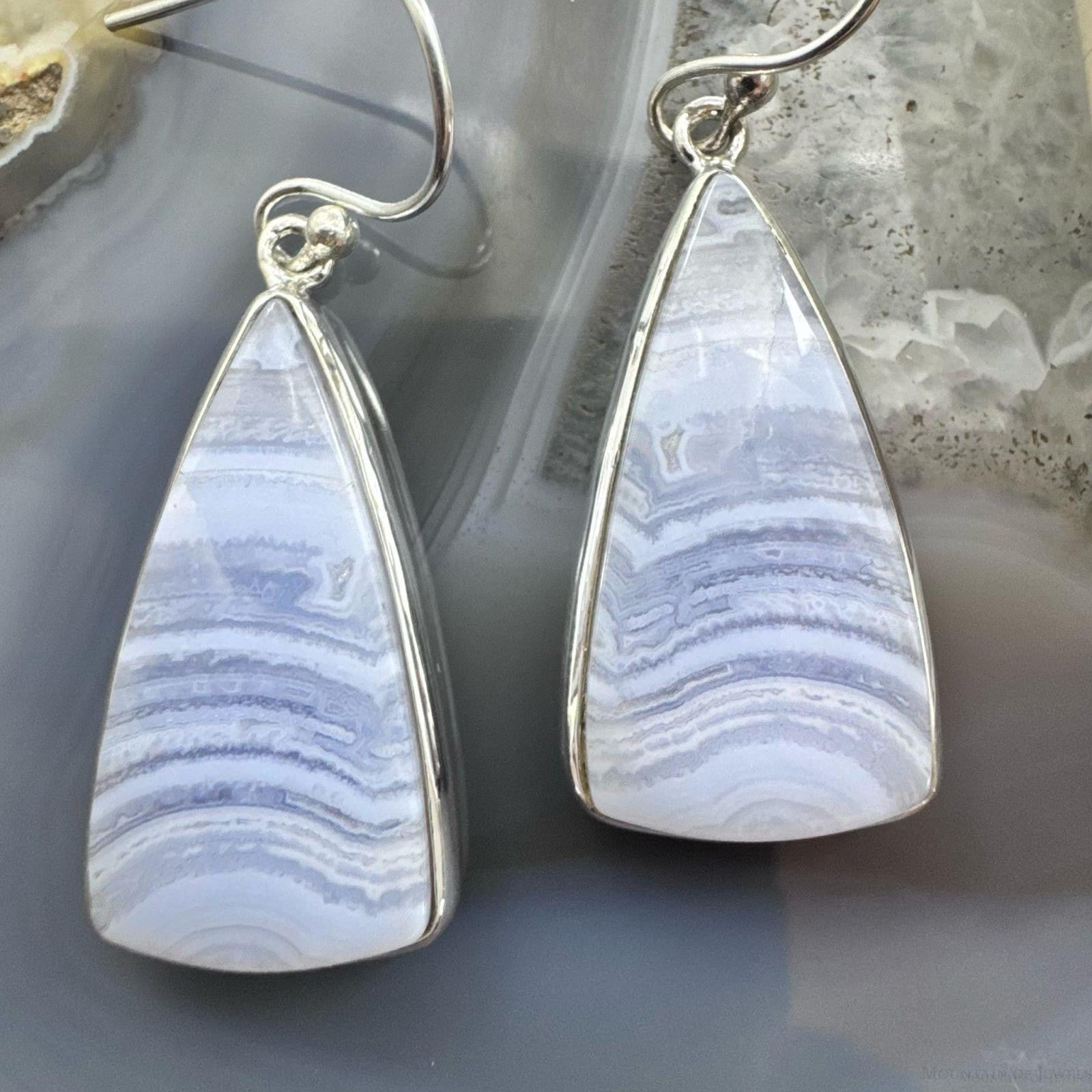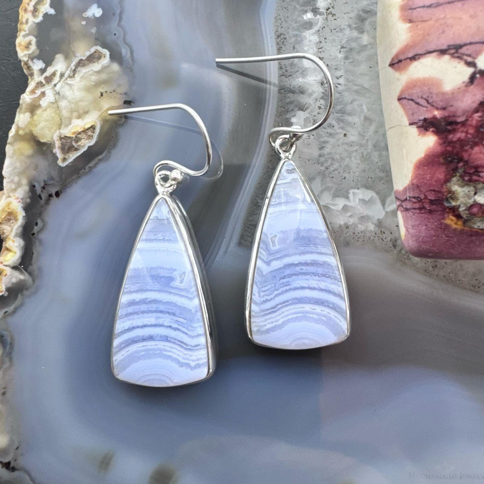 Sterling Silver Southwestern Style Triangle Blue Lace Agate Dangle Earrings For Women.