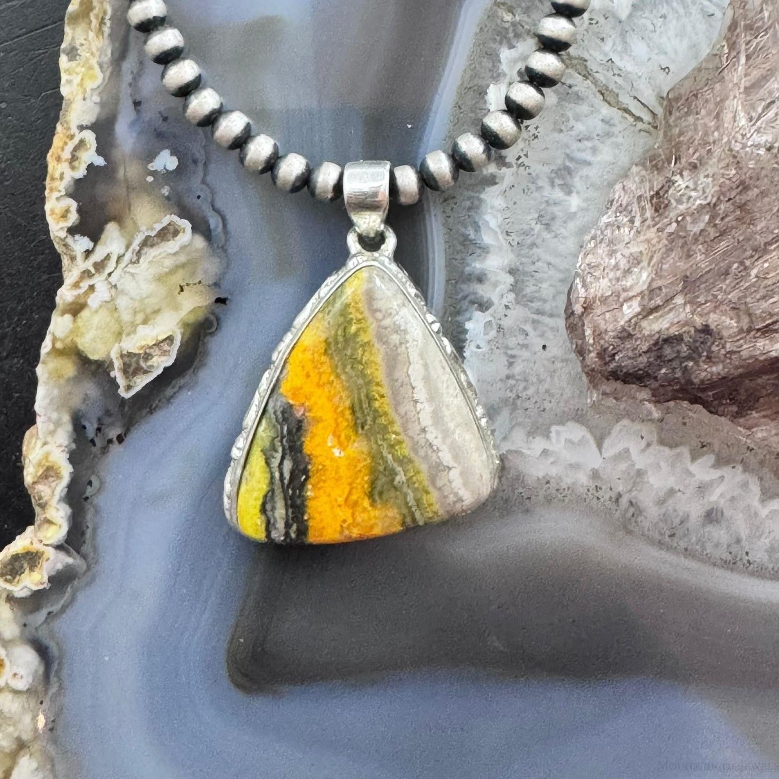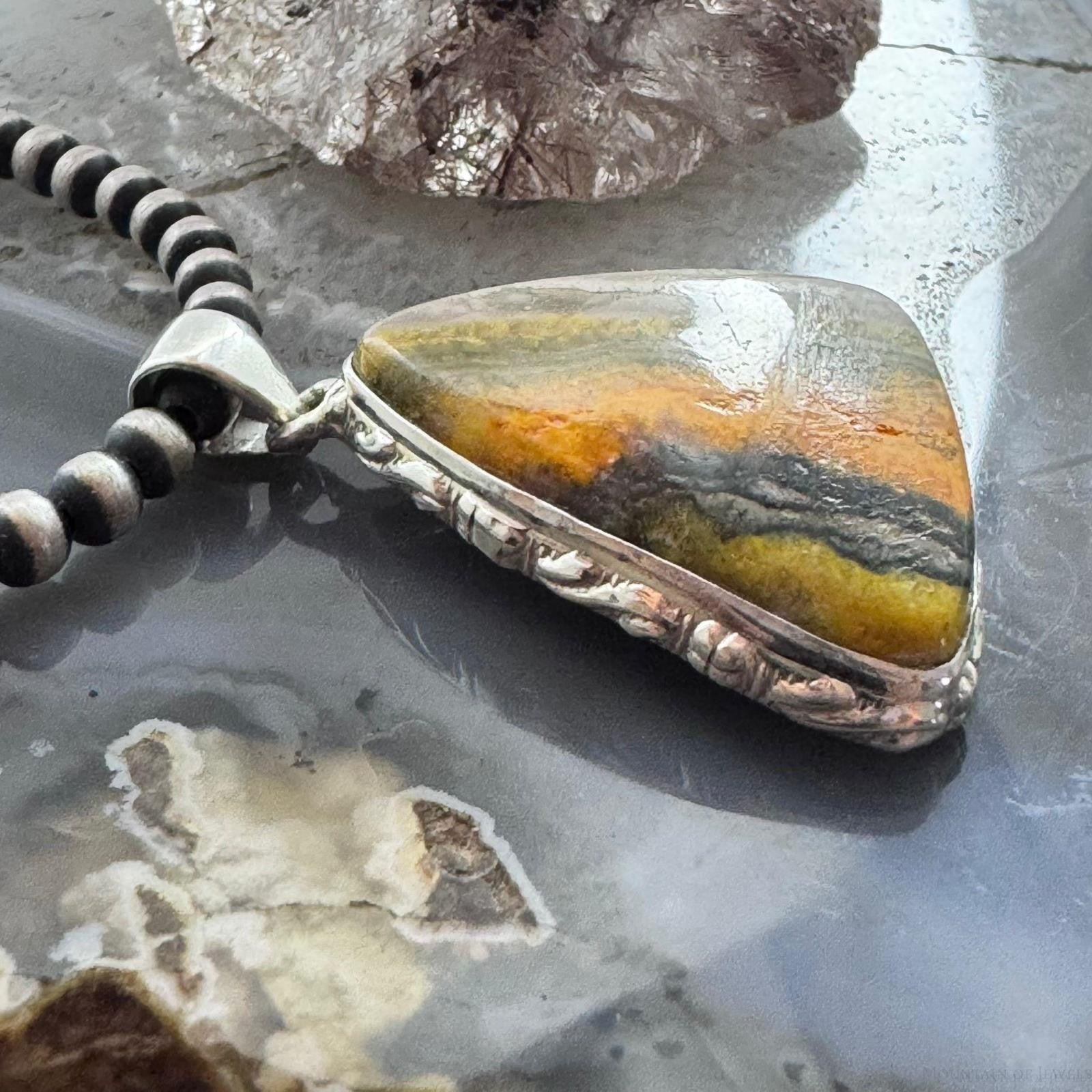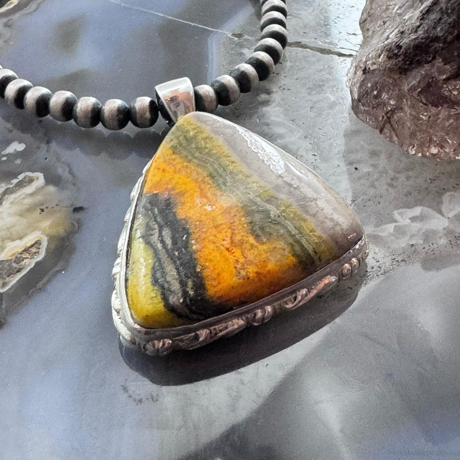 Sterling Silver Southwestern Style Triangle Eclipse Jasper Pendant For Women