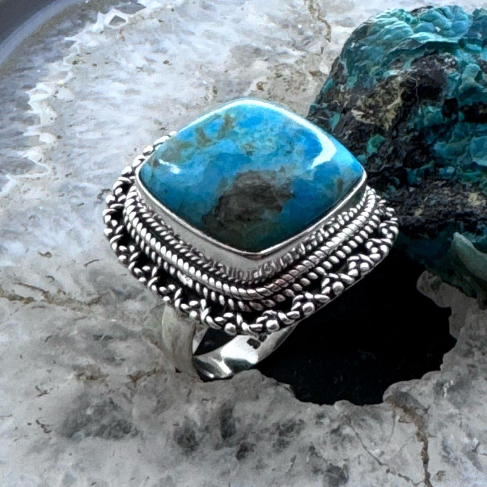 Sterling Silver Southwestern Style Turquoise Bar Ring Size 7 For Women