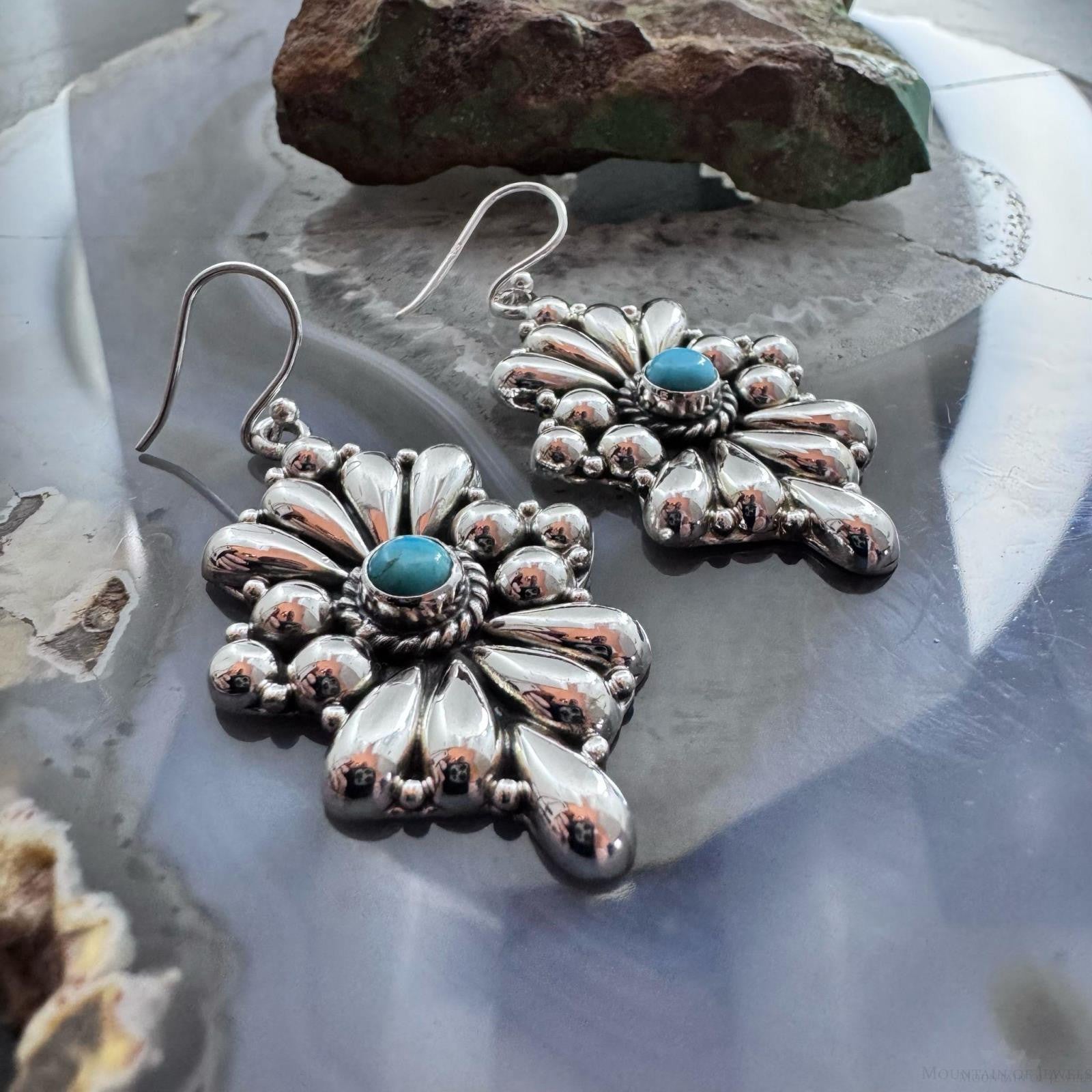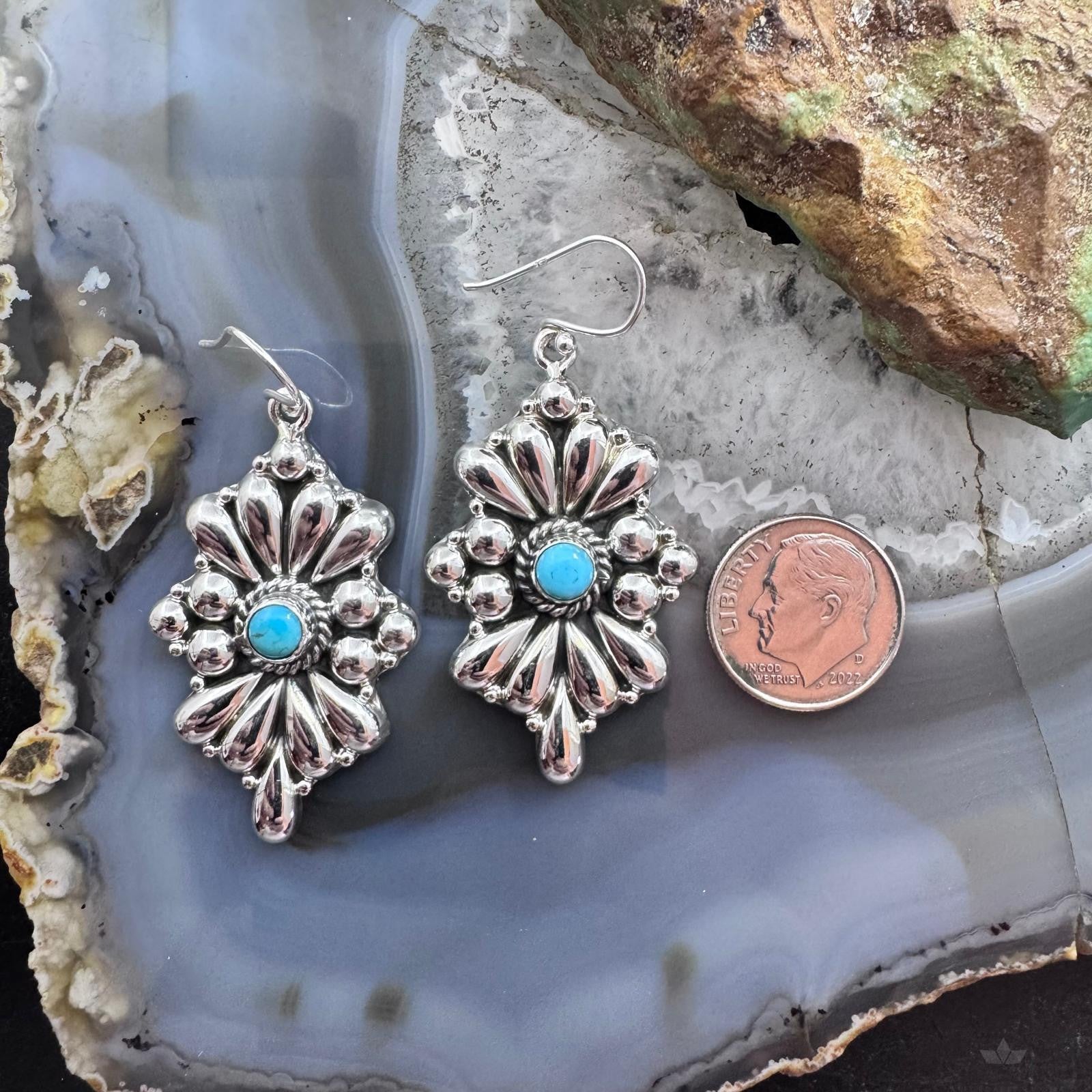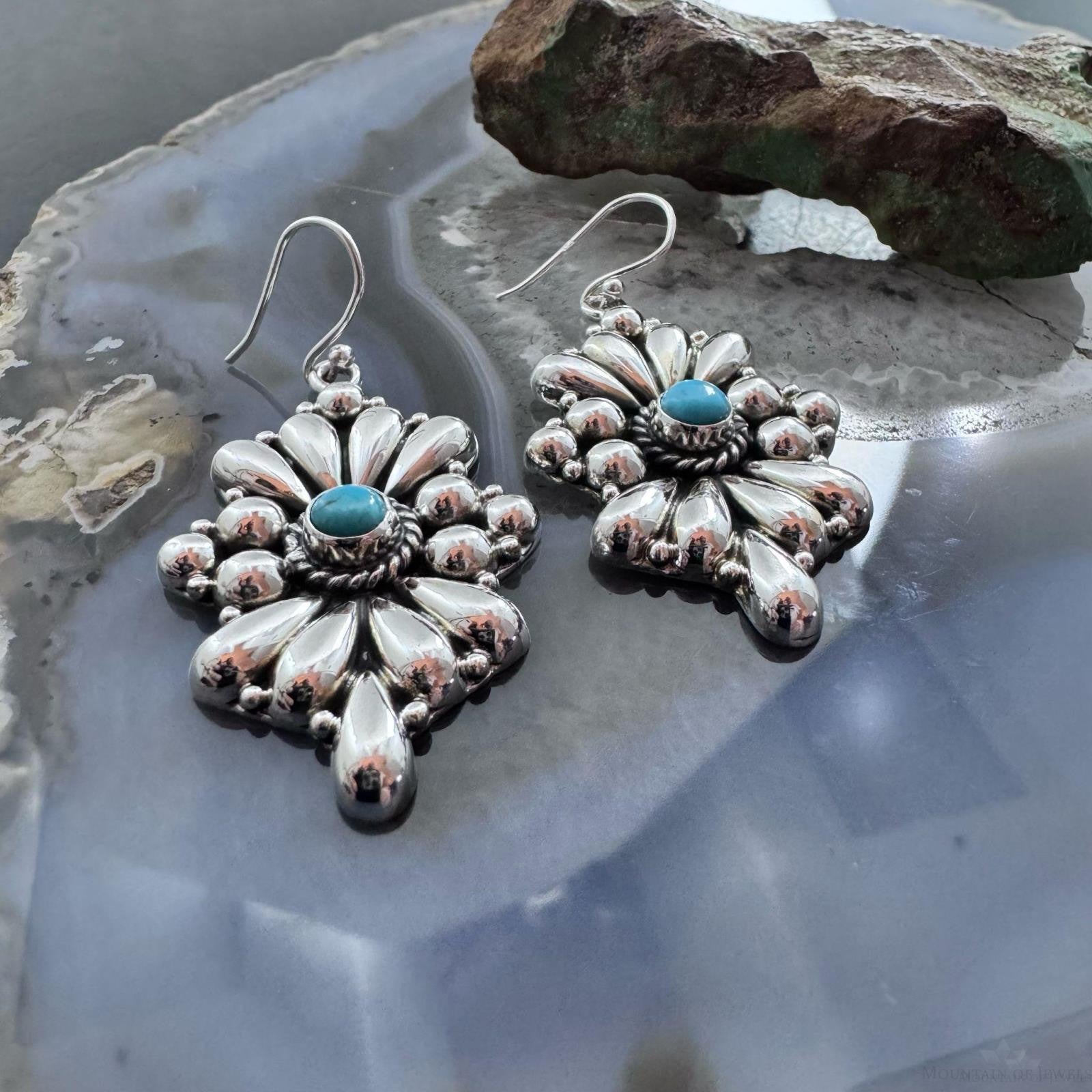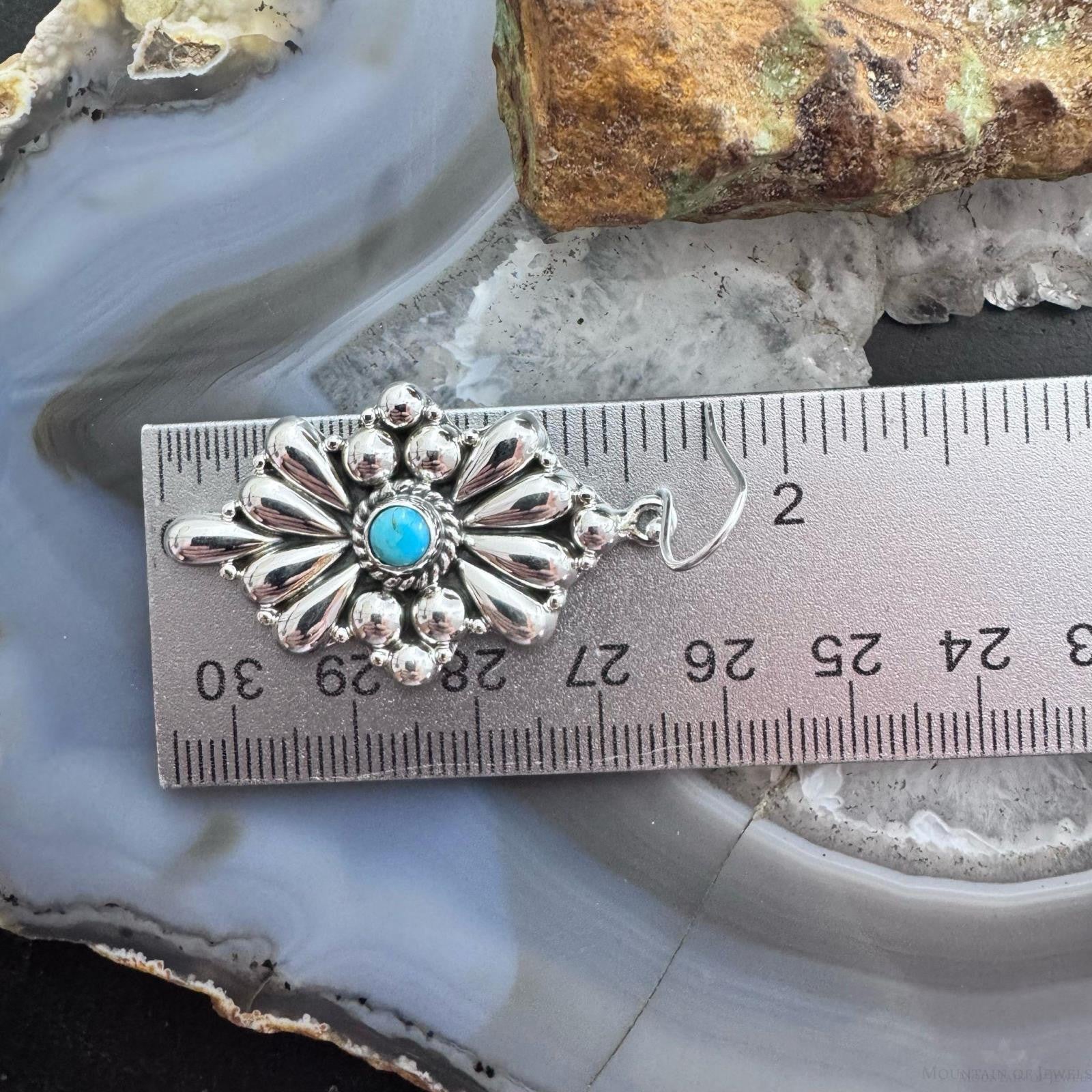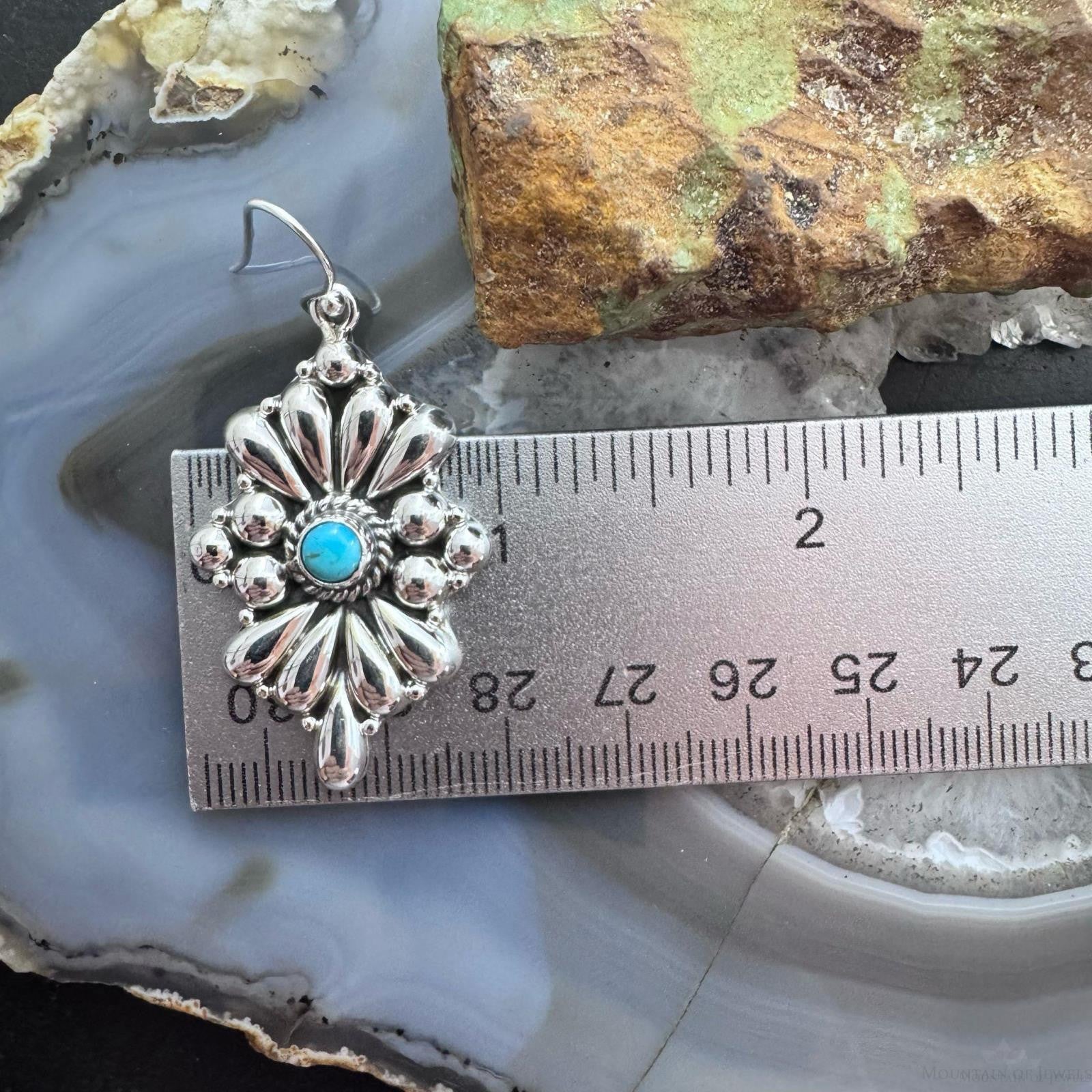 Sterling Silver Southwestern Style Turquoise Cluster Dangle Earrings For Women