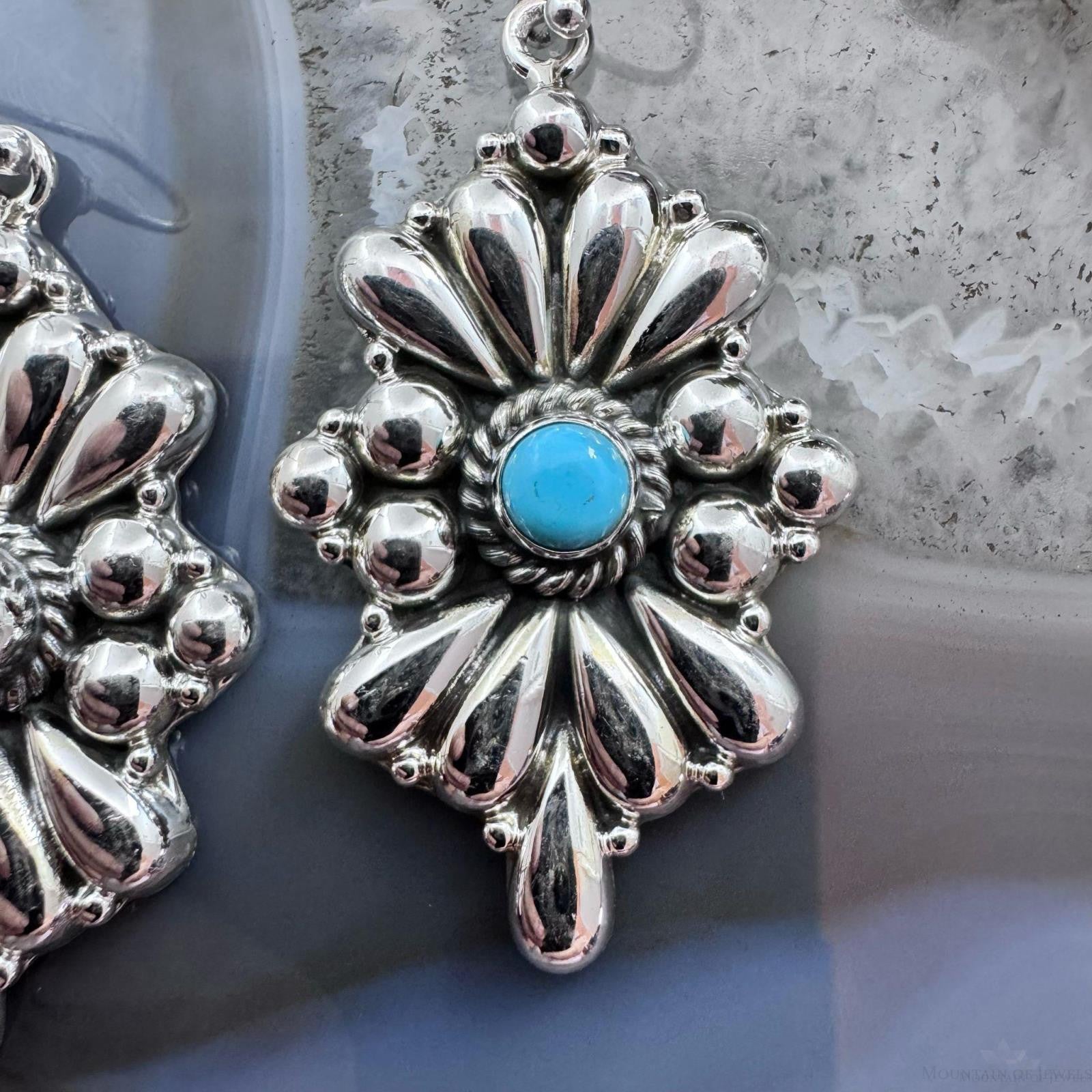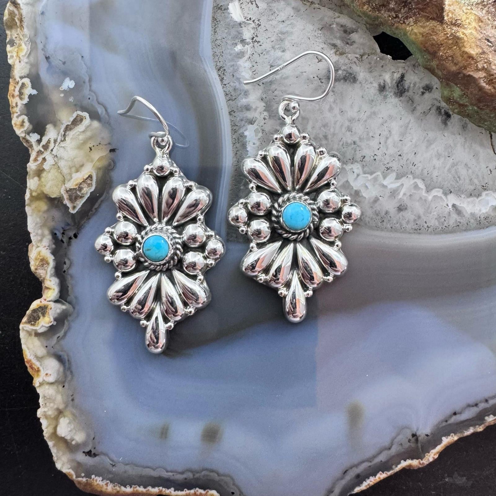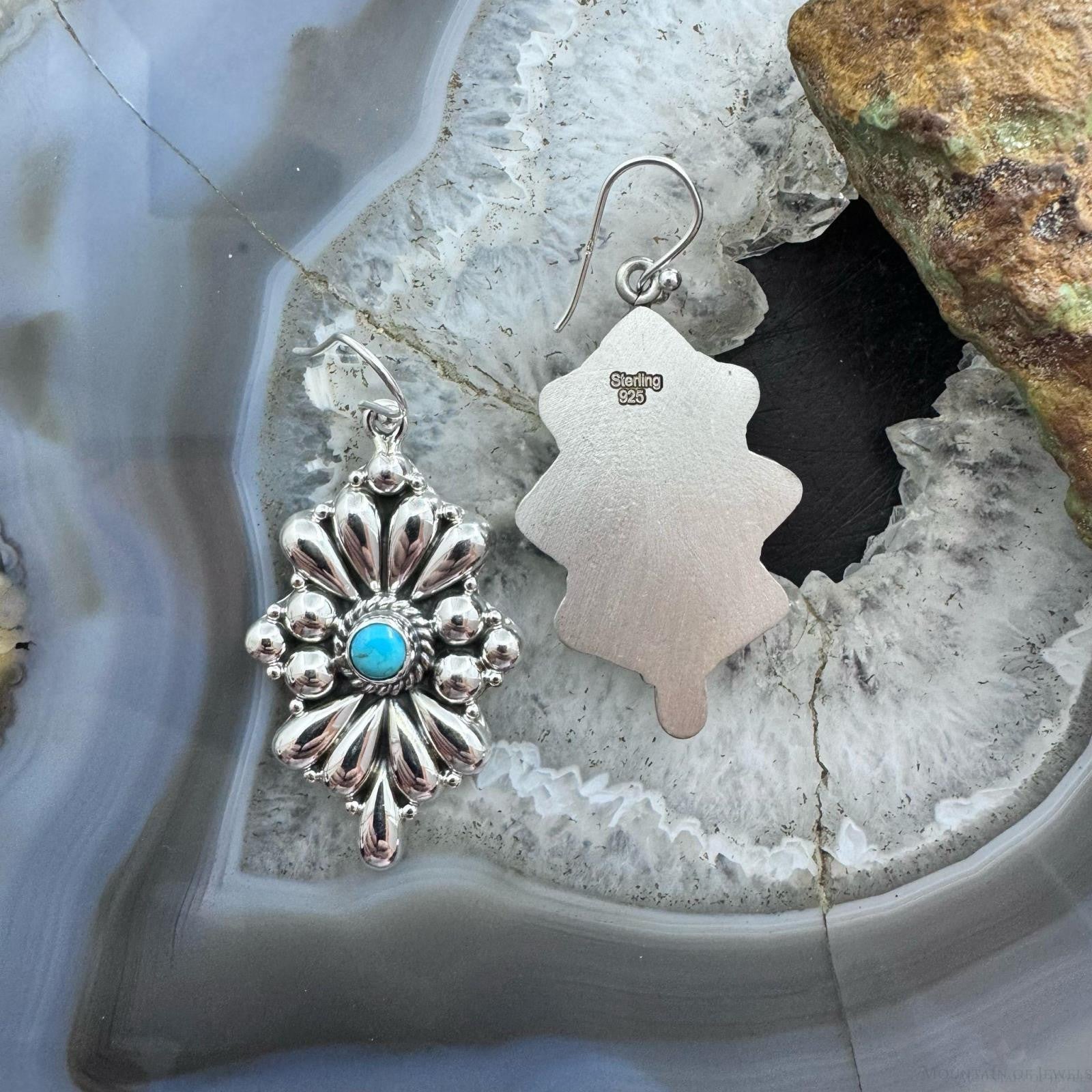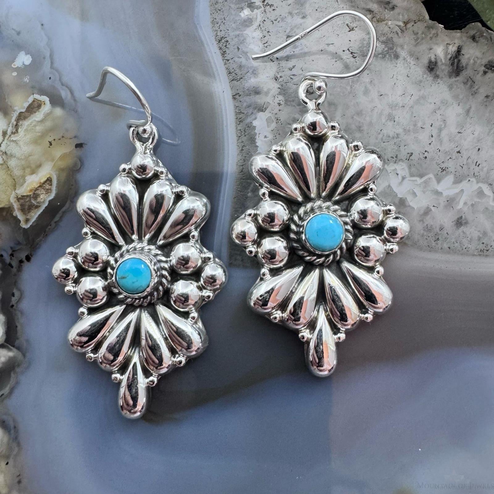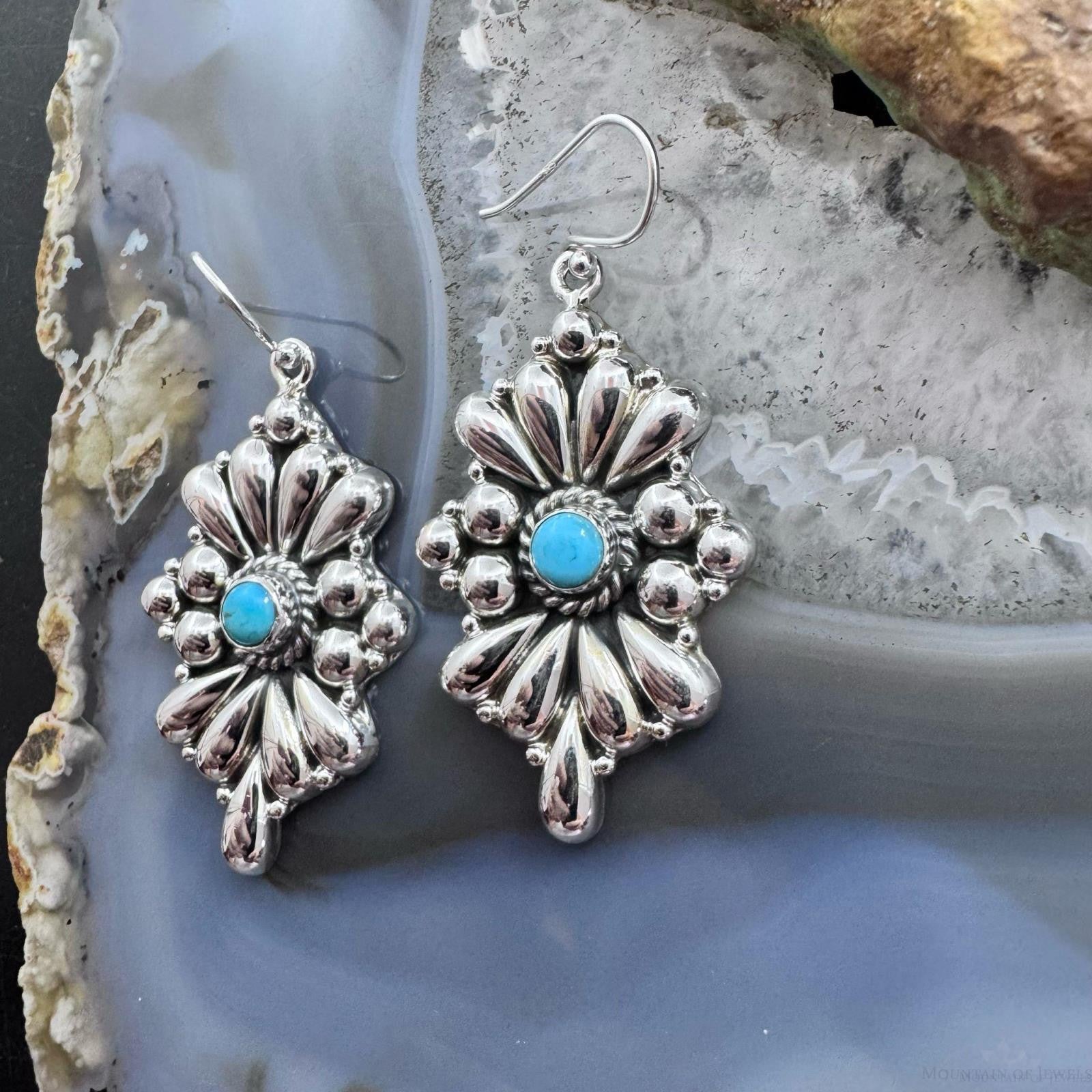 Sterling Silver Southwestern Style Turquoise Cluster Dangle Earrings For Women