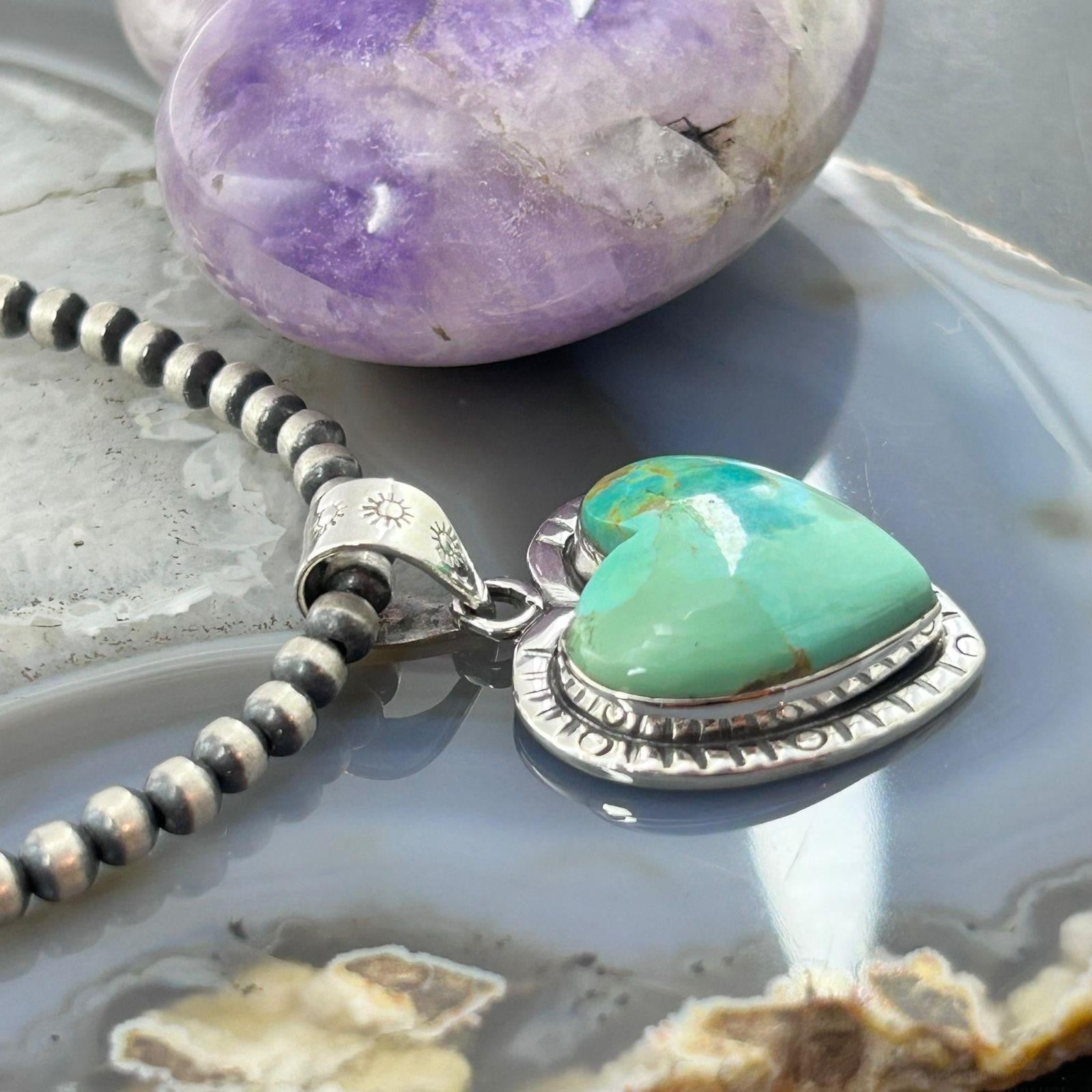 Sterling Silver Southwestern Style Turquoise Decorated Heart Pendant For Women