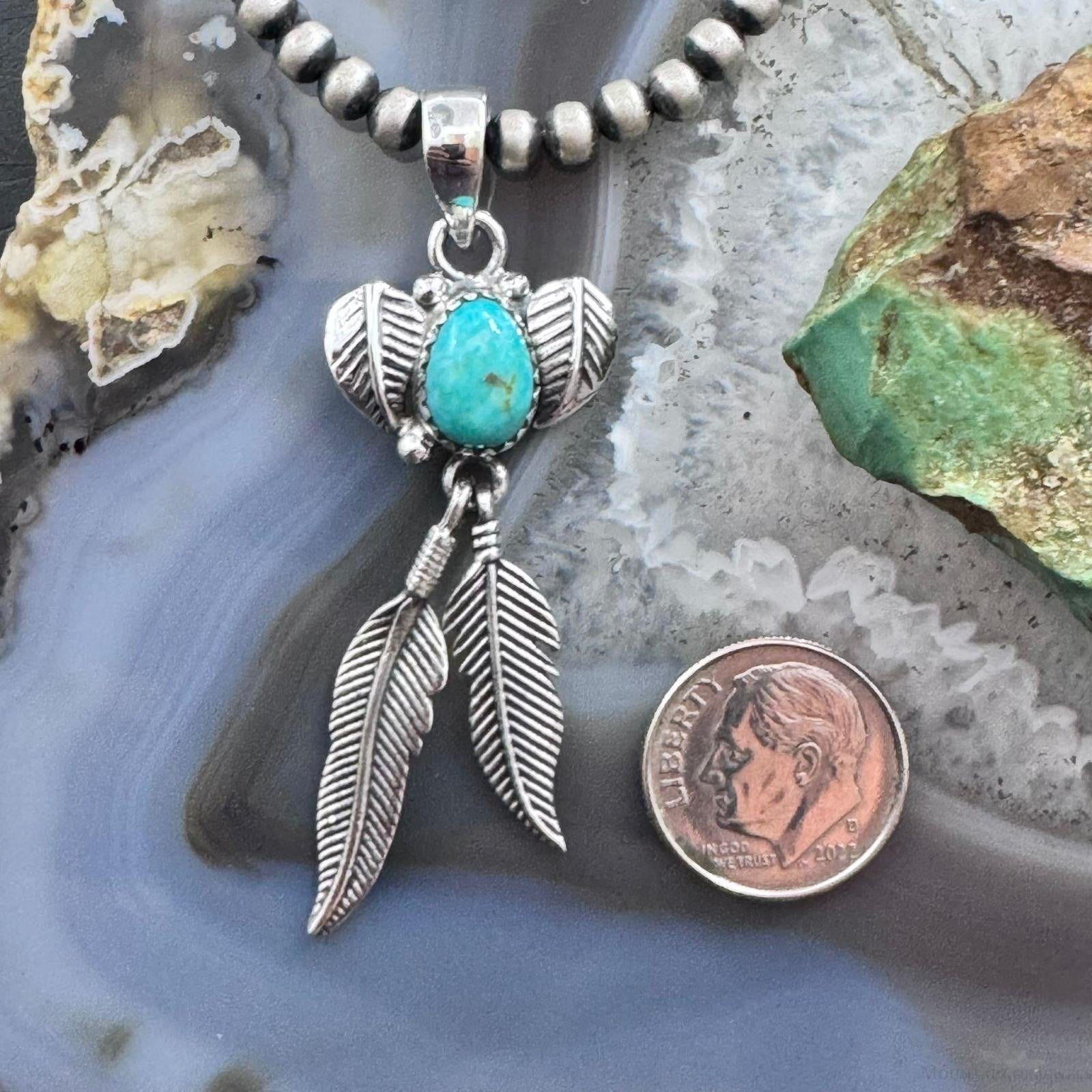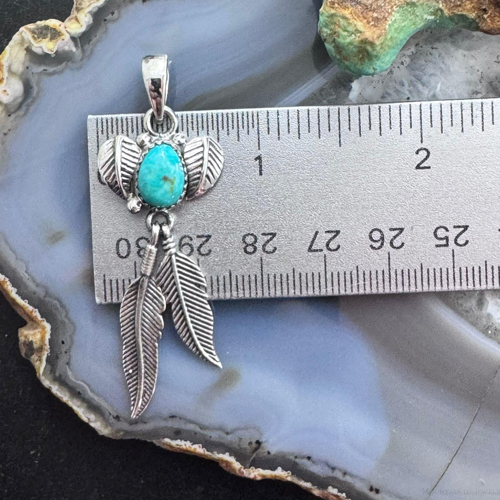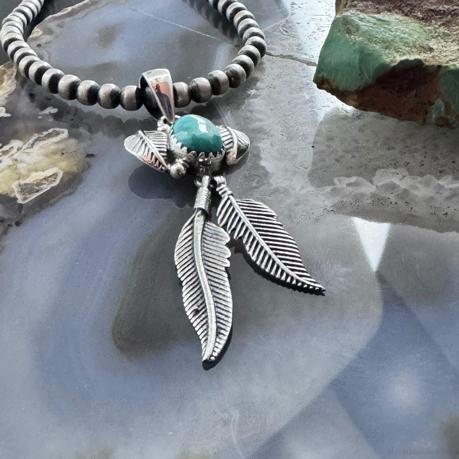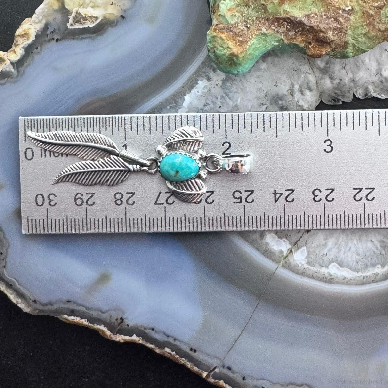 Sterling Silver Southwestern Style Turquoise Feather w/Leaves Pendant For Women