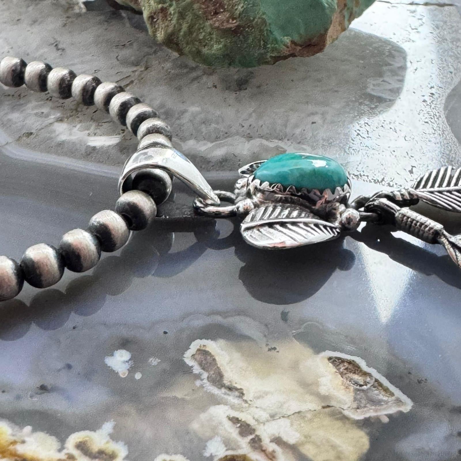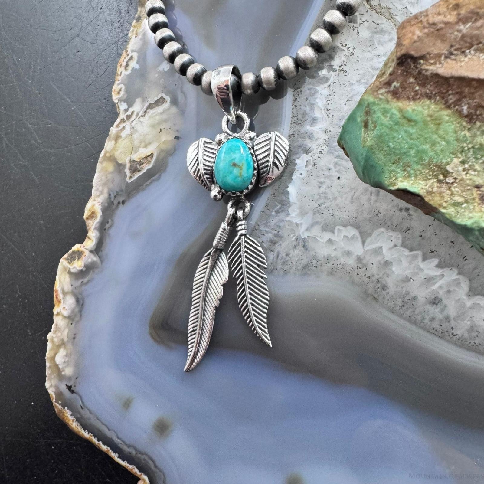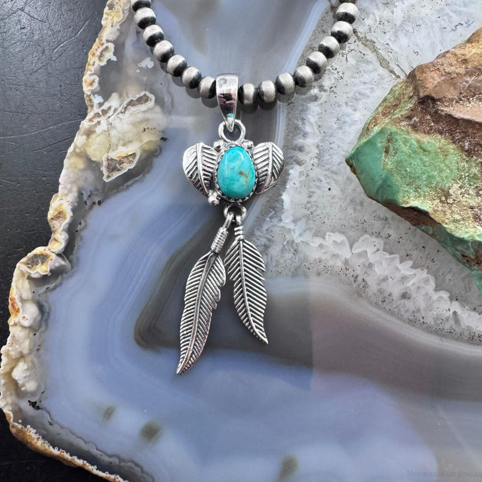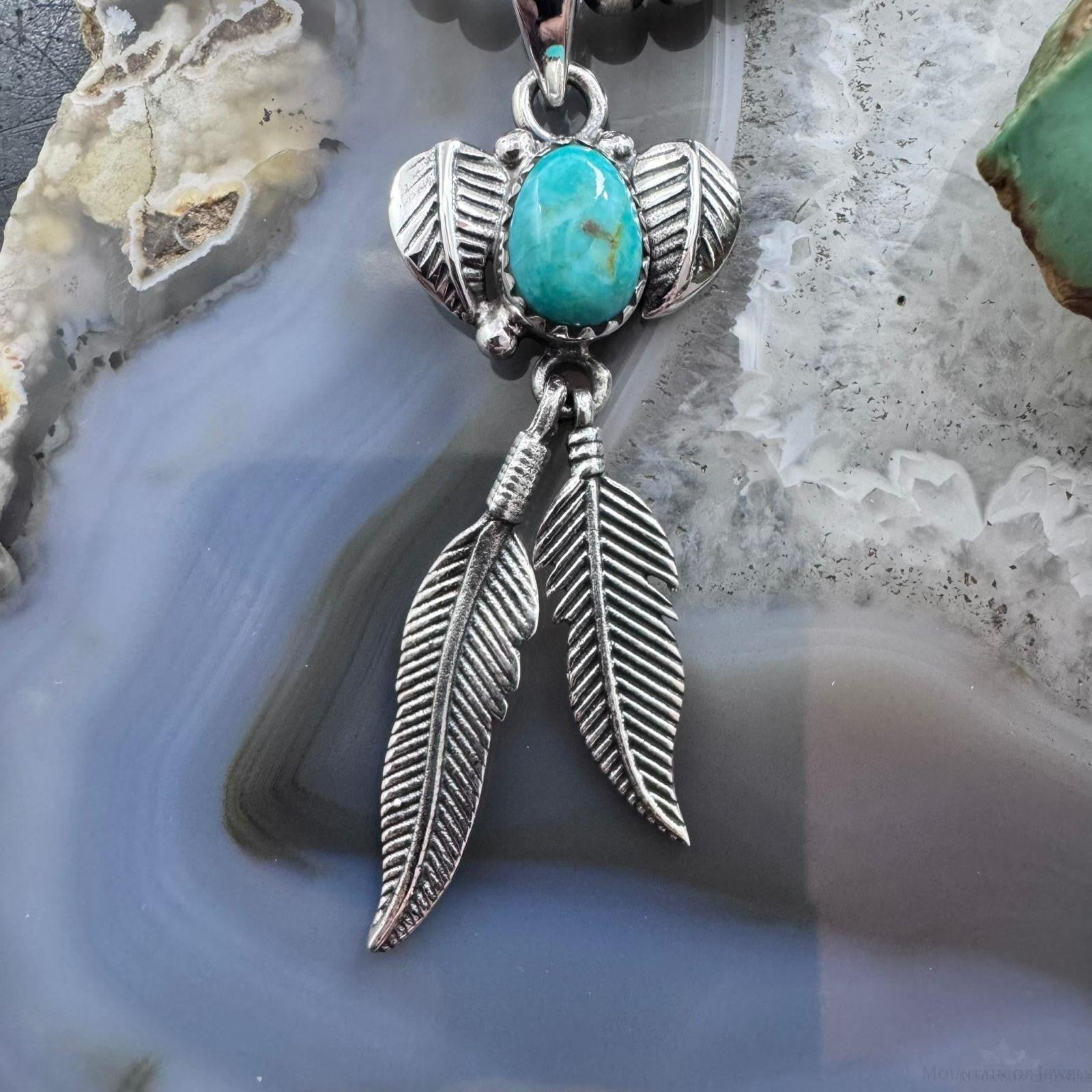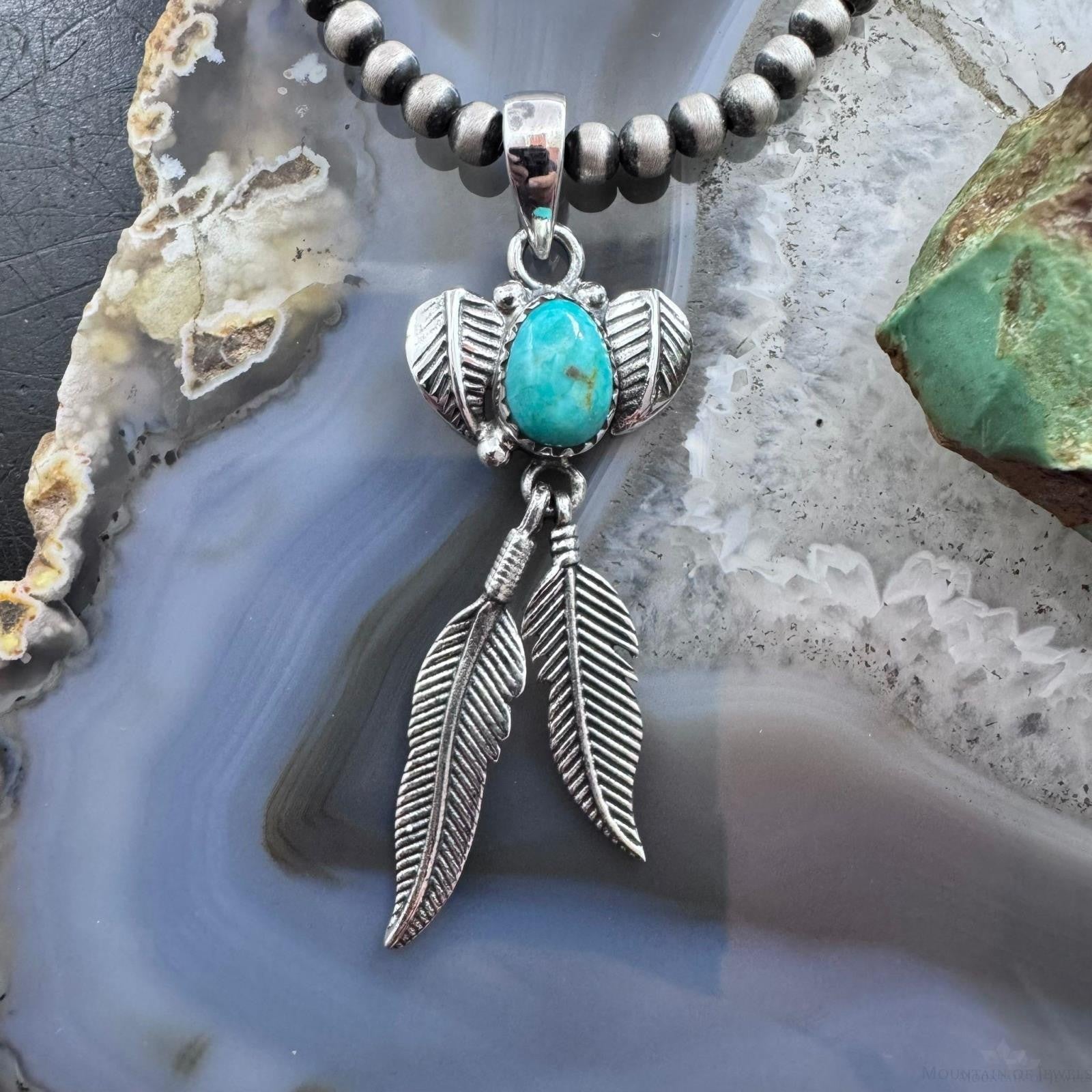 Sterling Silver Southwestern Style Turquoise Feather w/Leaves Pendant For Women