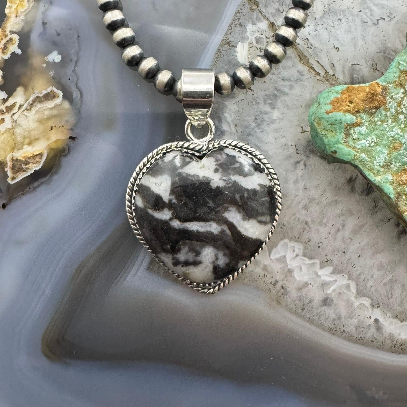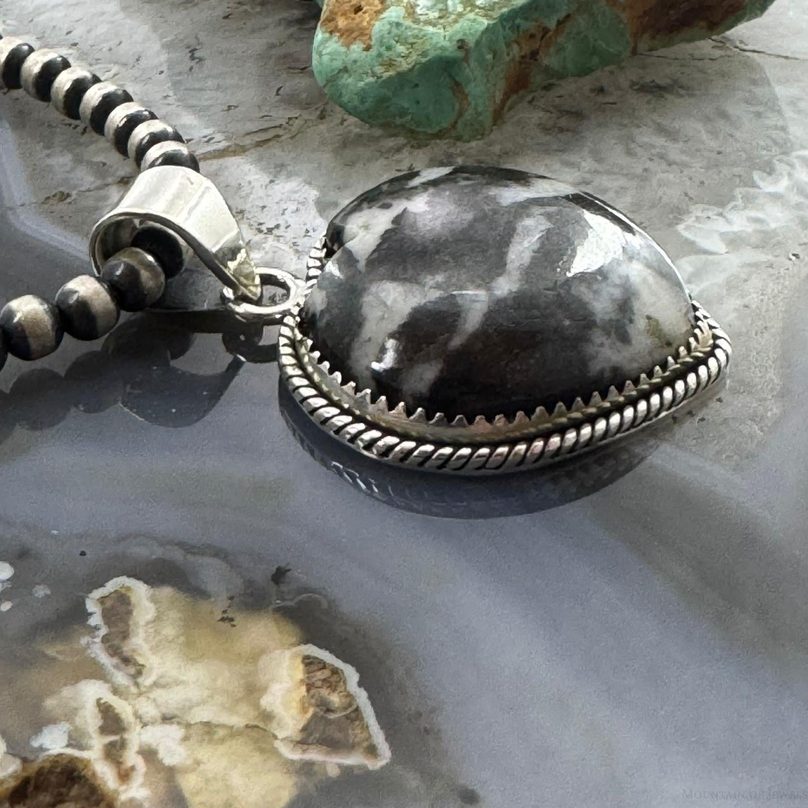 Sterling Silver Southwestern Style White Buffalo Heart Shape Pendant For Women