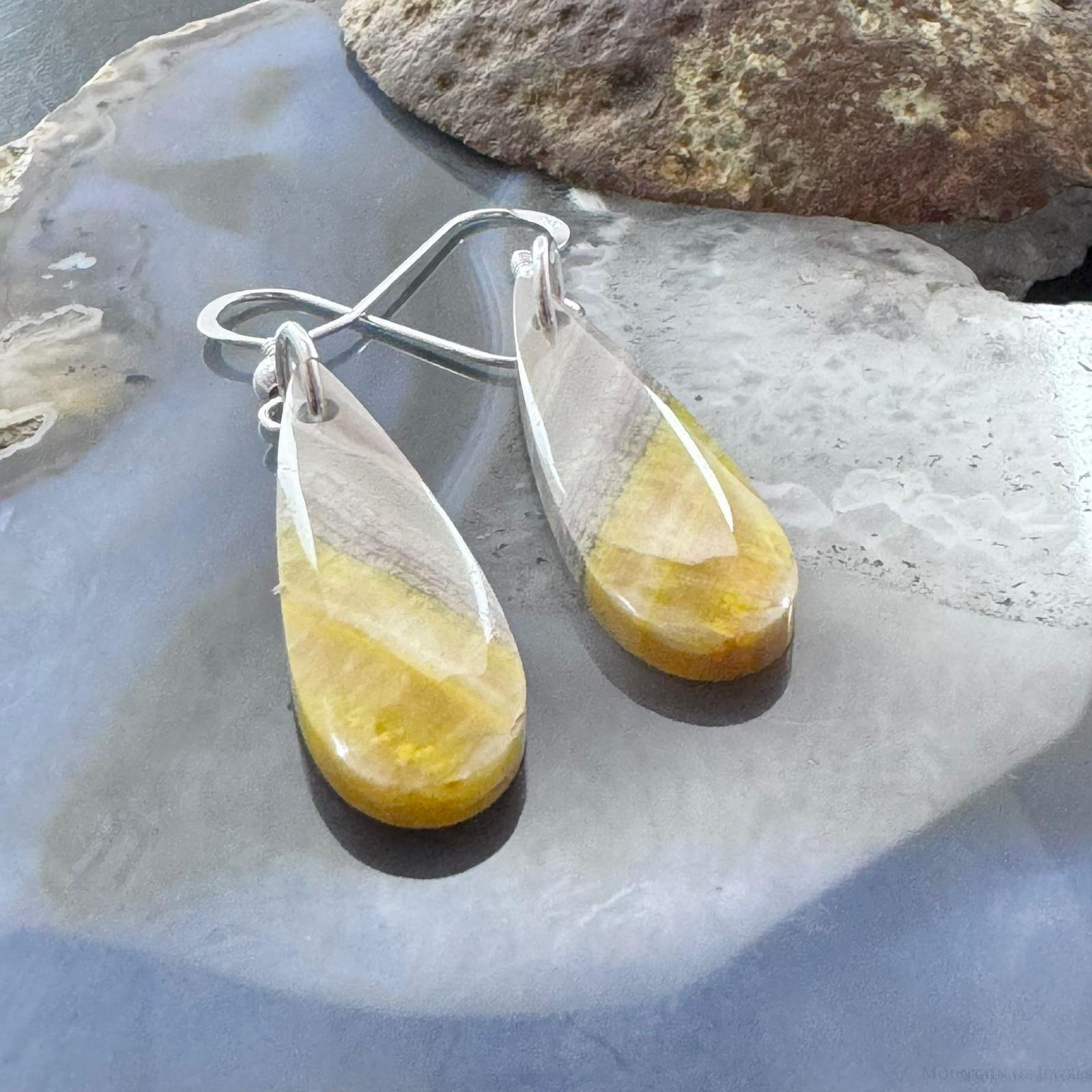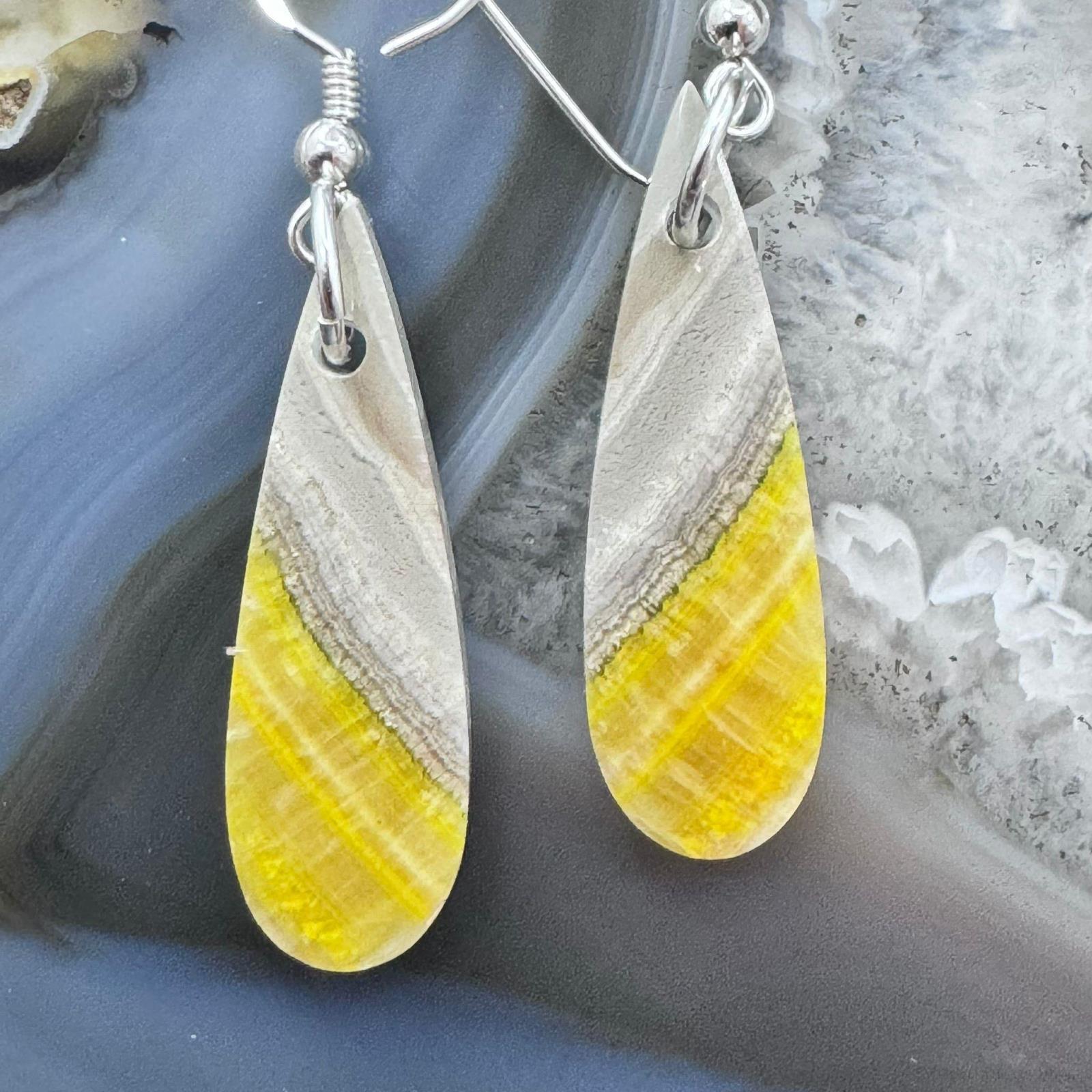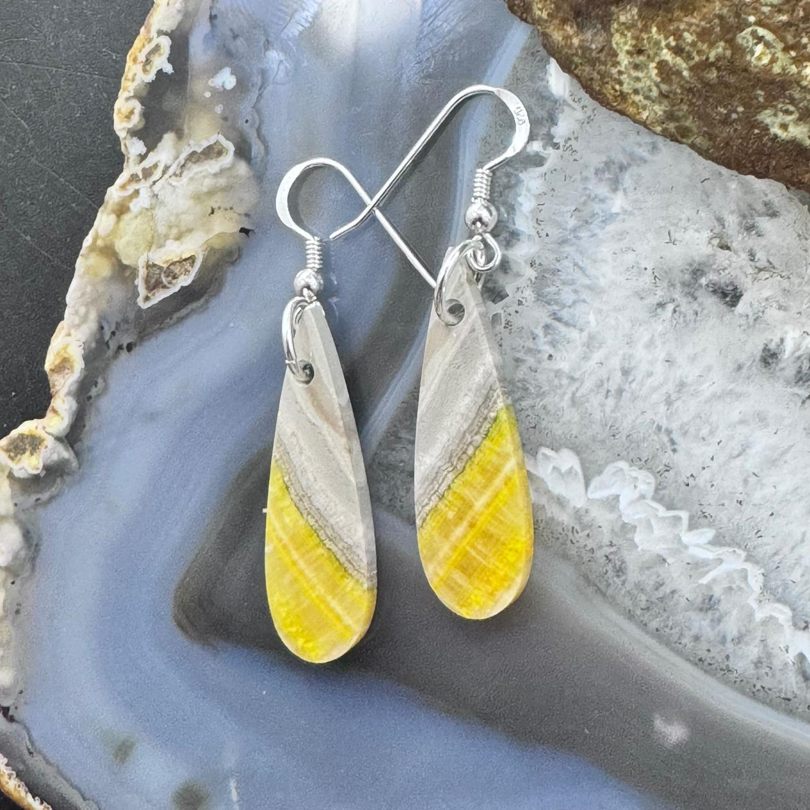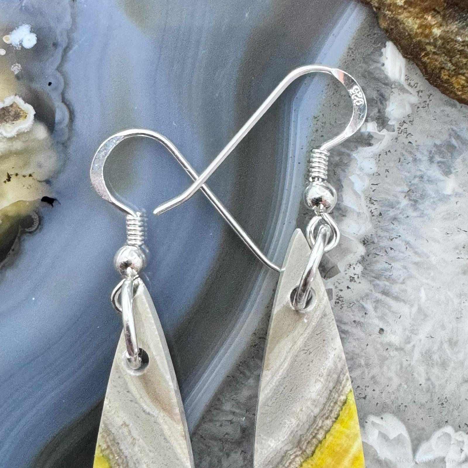 Sterling Silver Teardrop Bumblebee Jasper Slab Dangle Earrings For Women #175