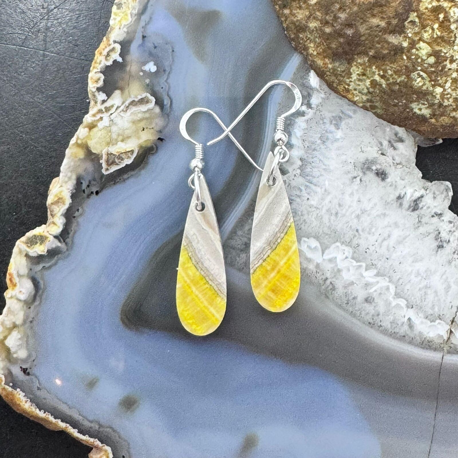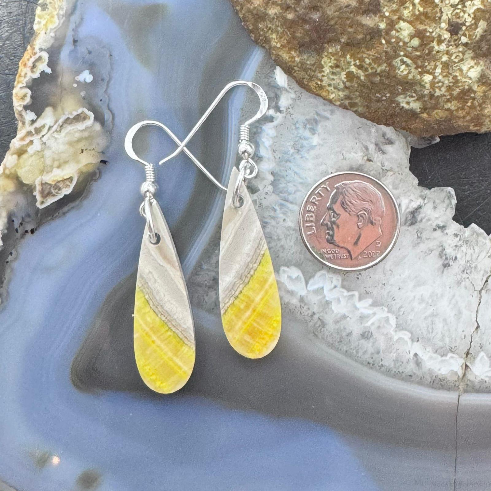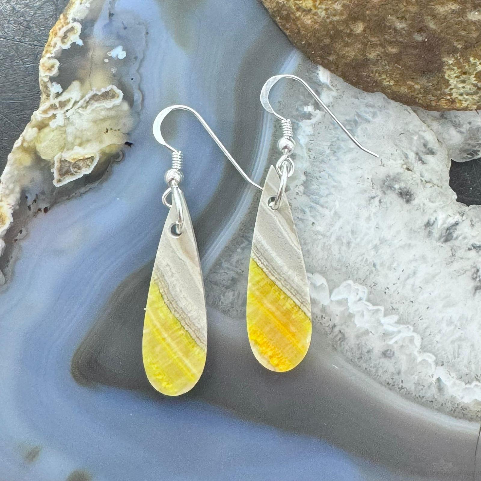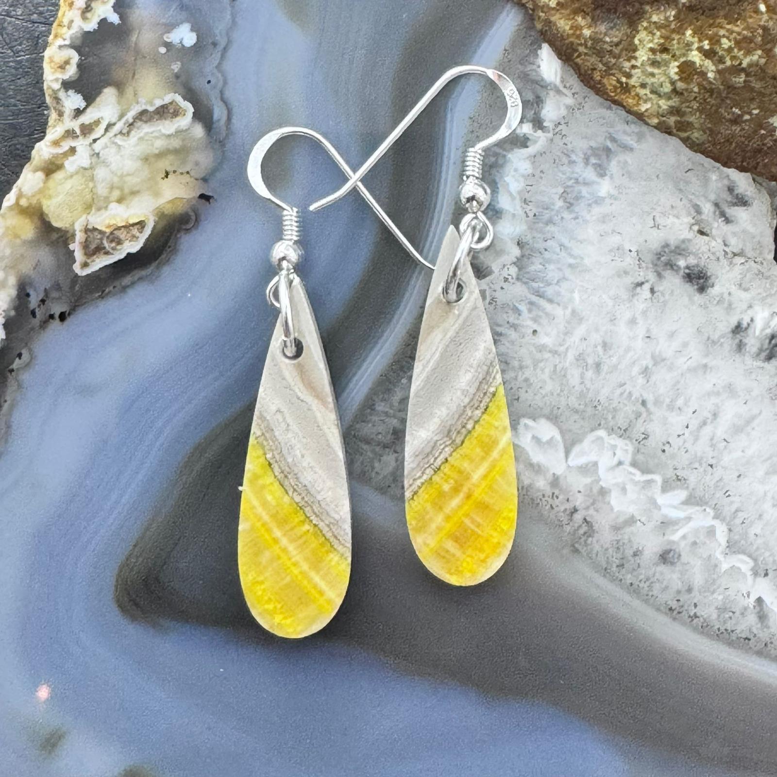 Sterling Silver Teardrop Bumblebee Jasper Slab Dangle Earrings For Women #175