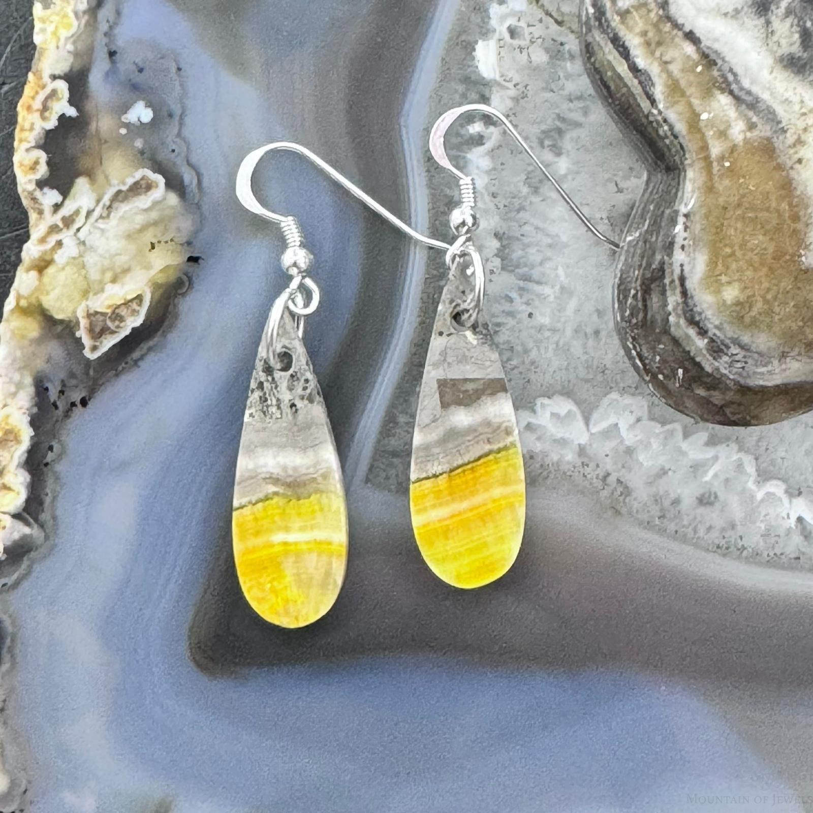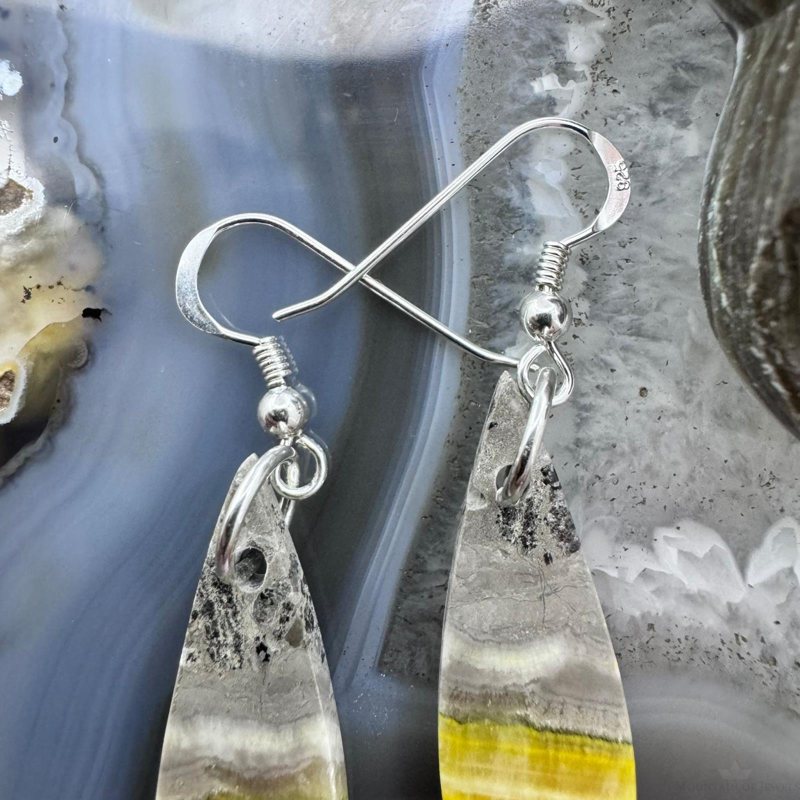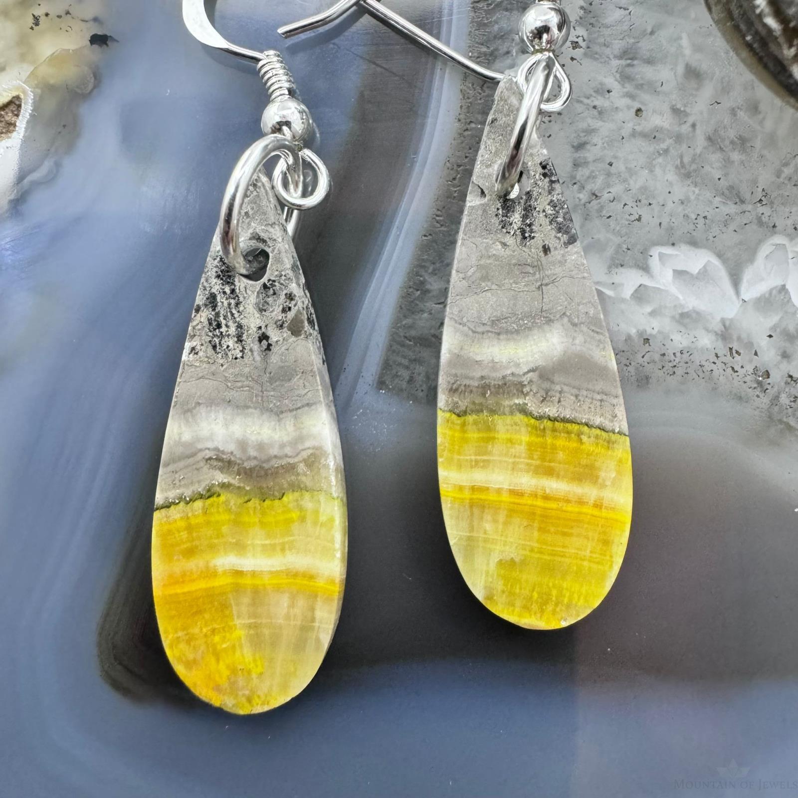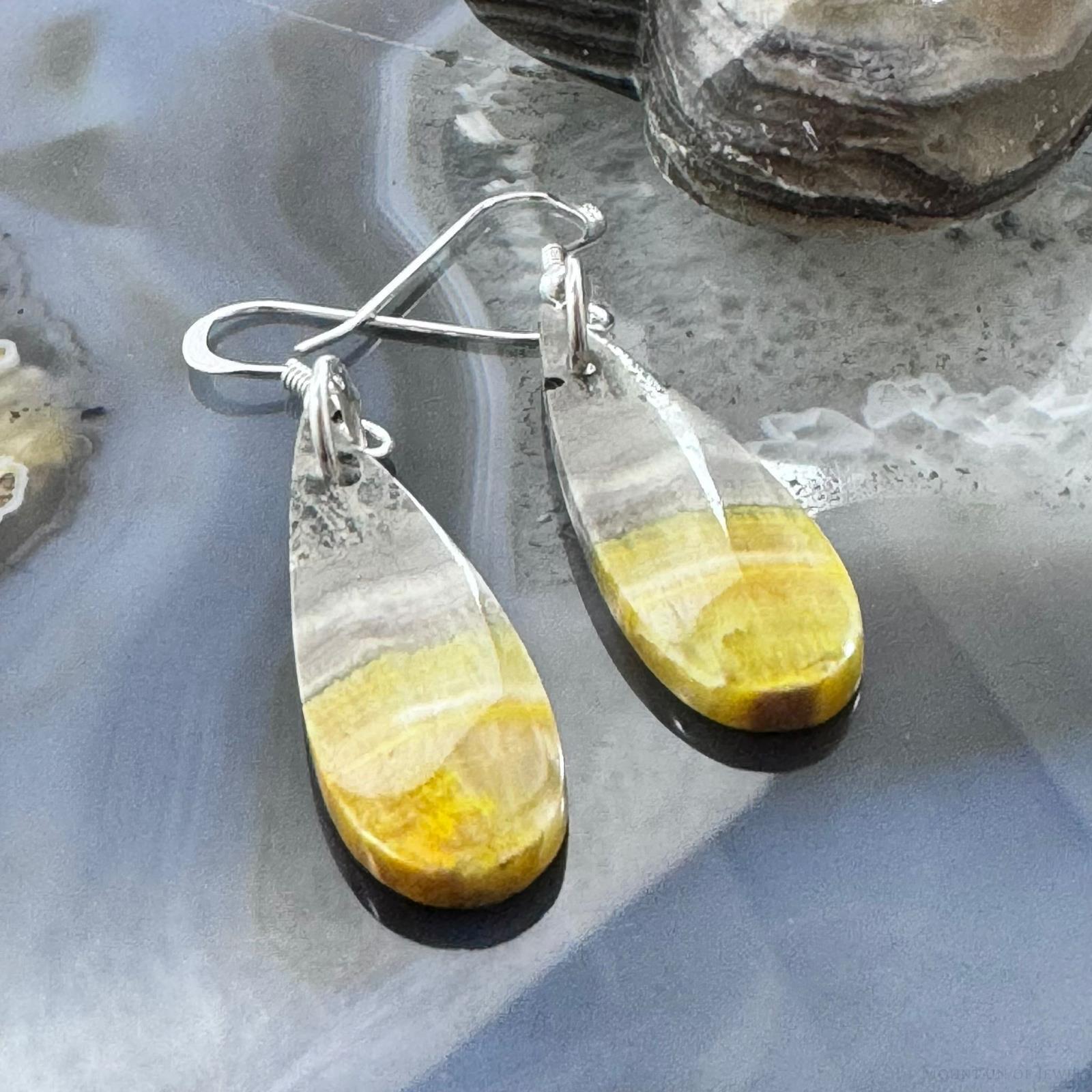 Sterling Silver Teardrop Bumblebee Jasper Slab Dangle Earrings For Women #177