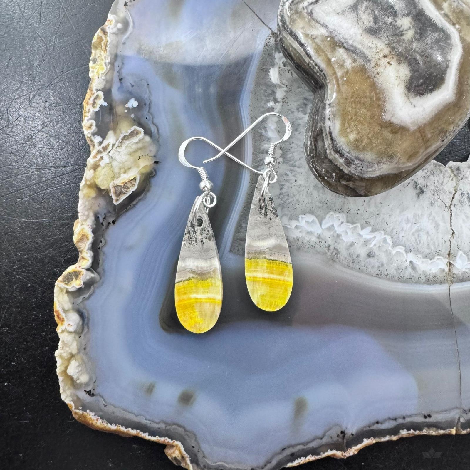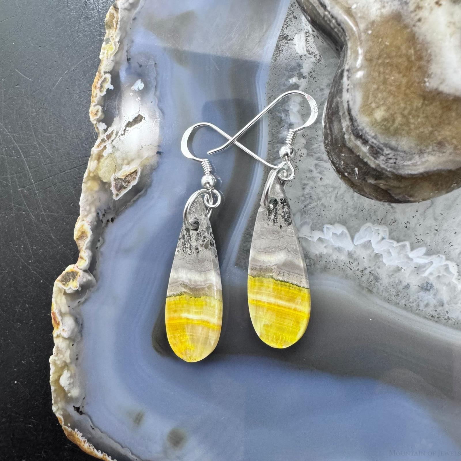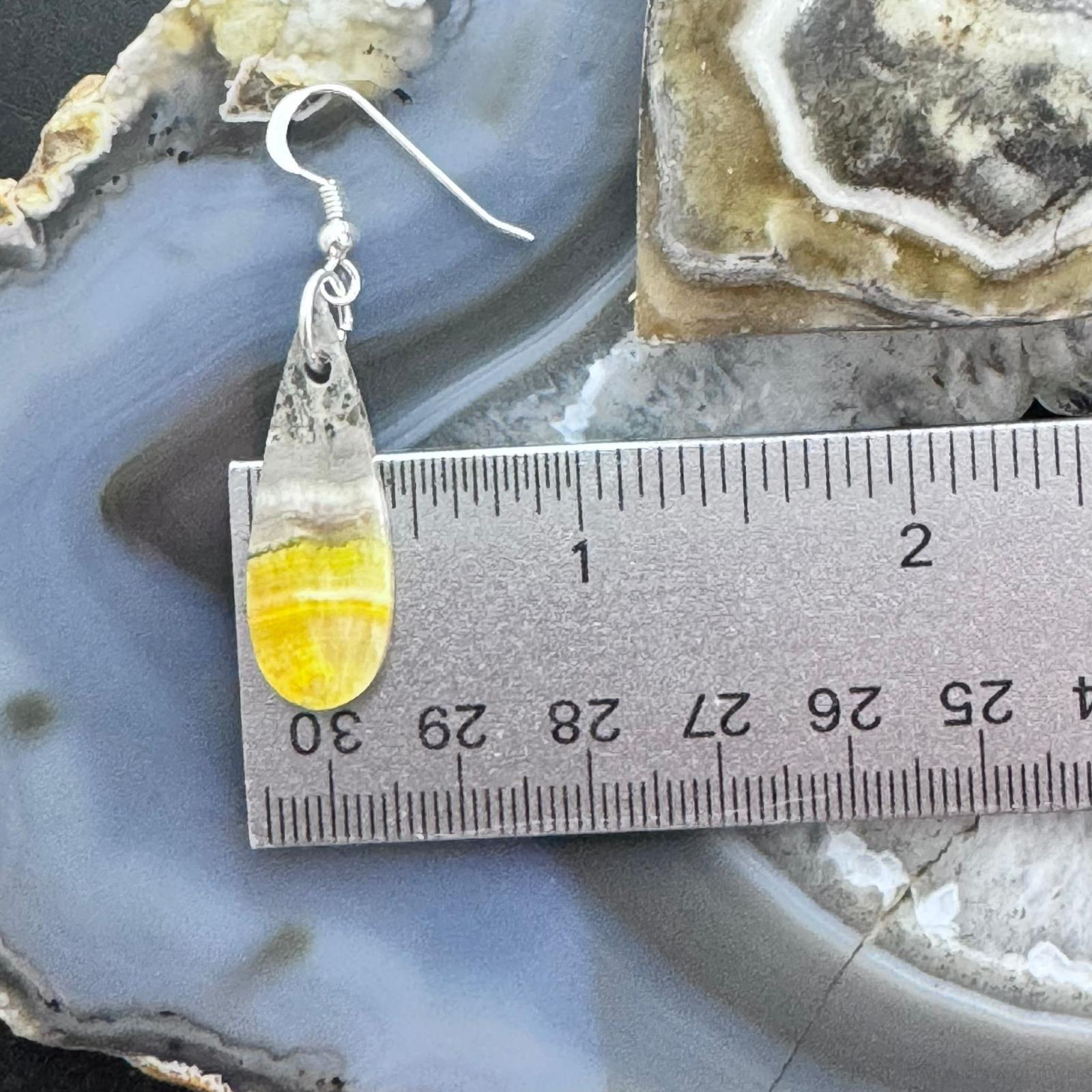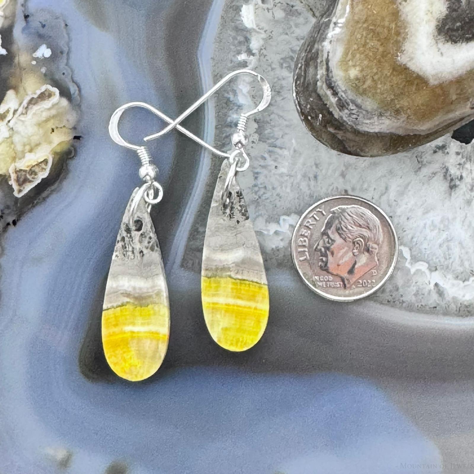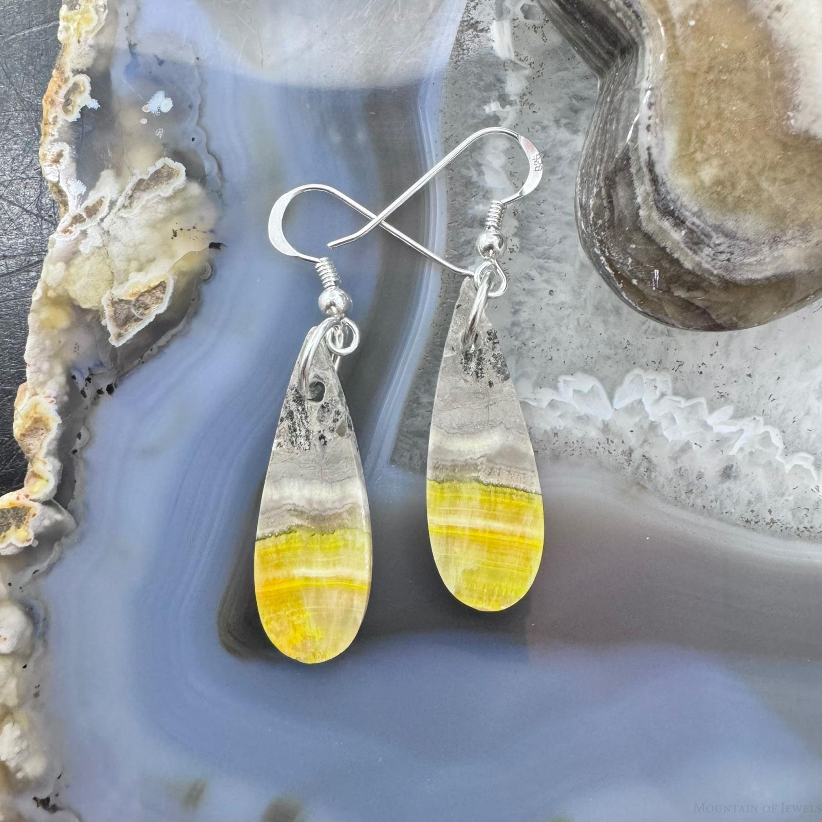 Sterling Silver Teardrop Bumblebee Jasper Slab Dangle Earrings For Women #177