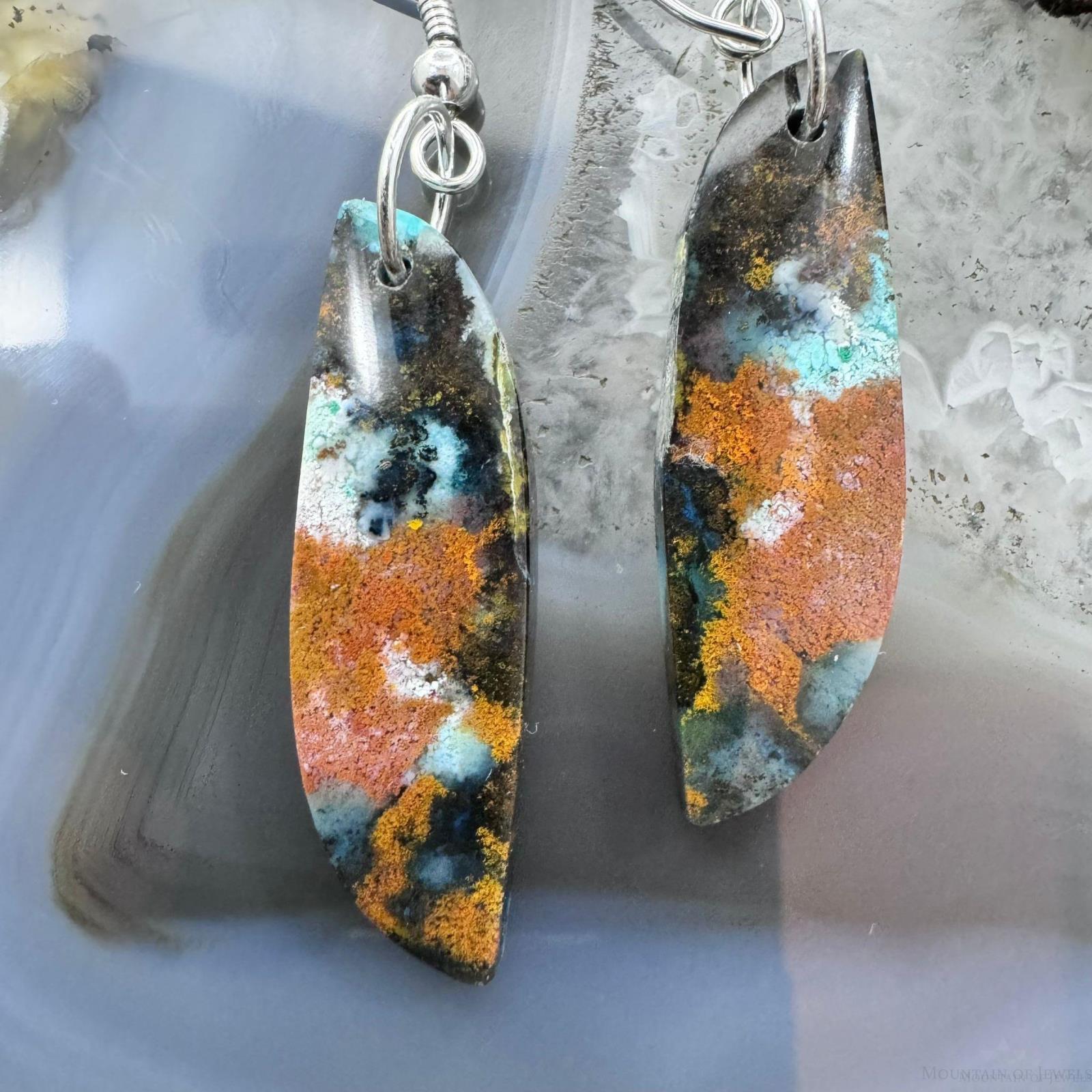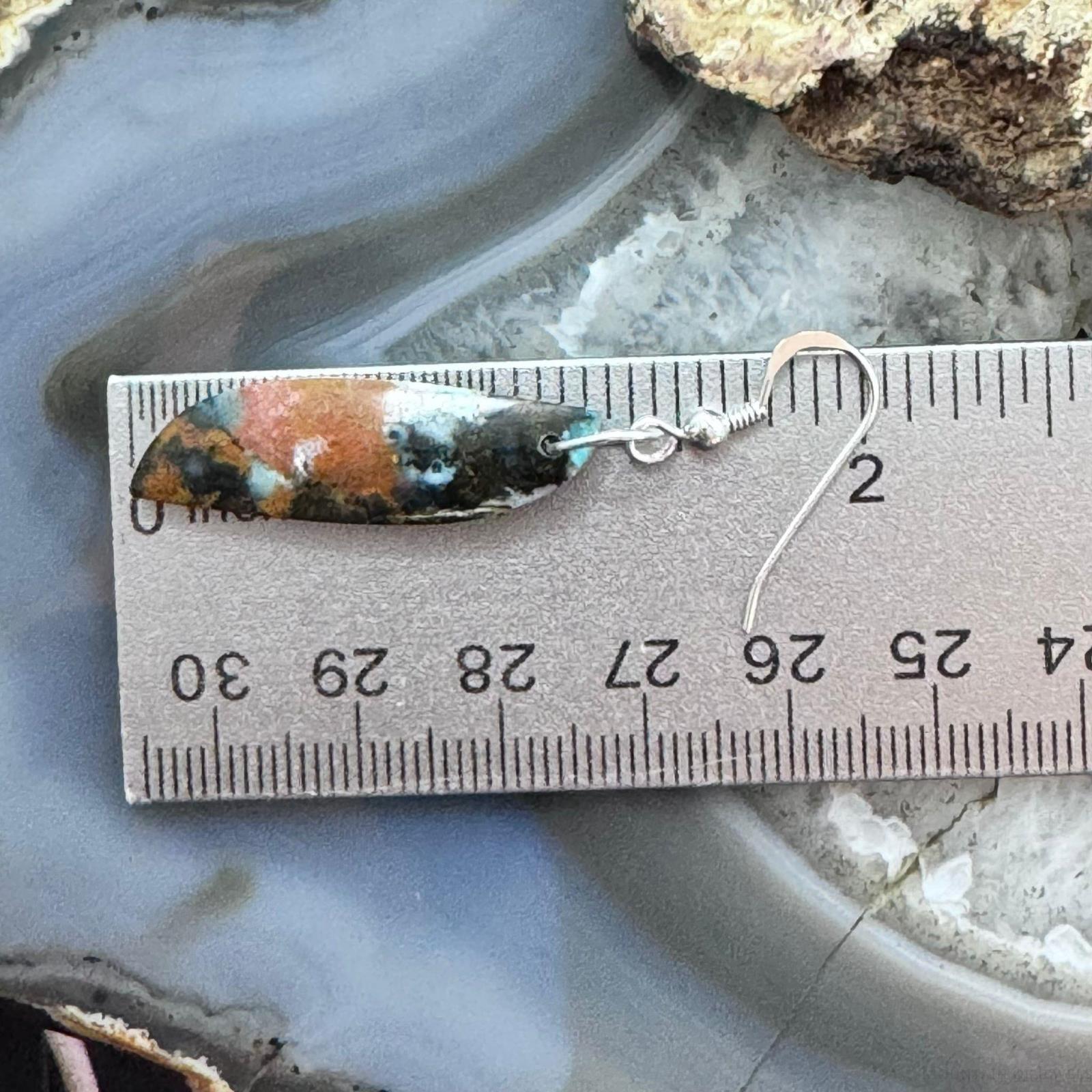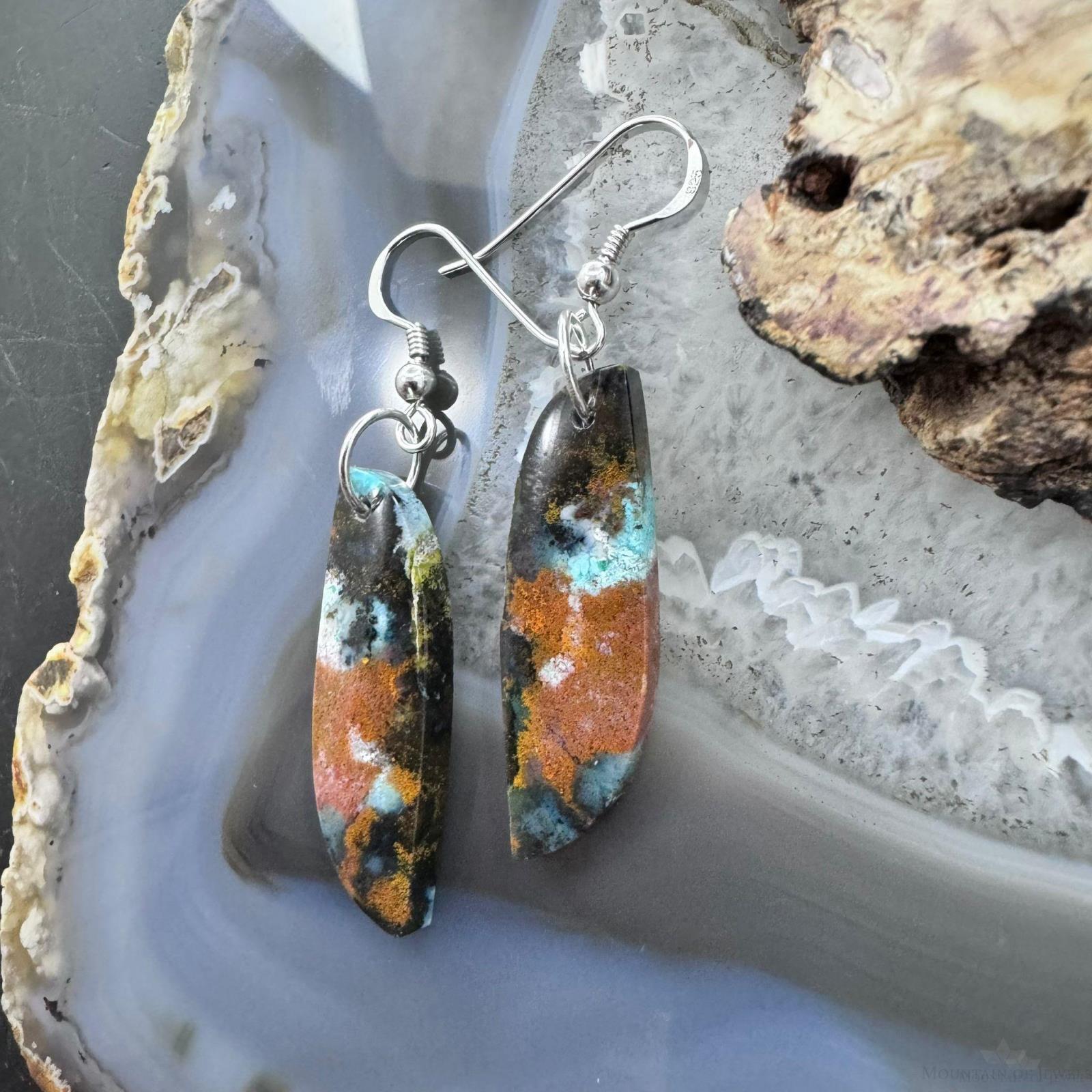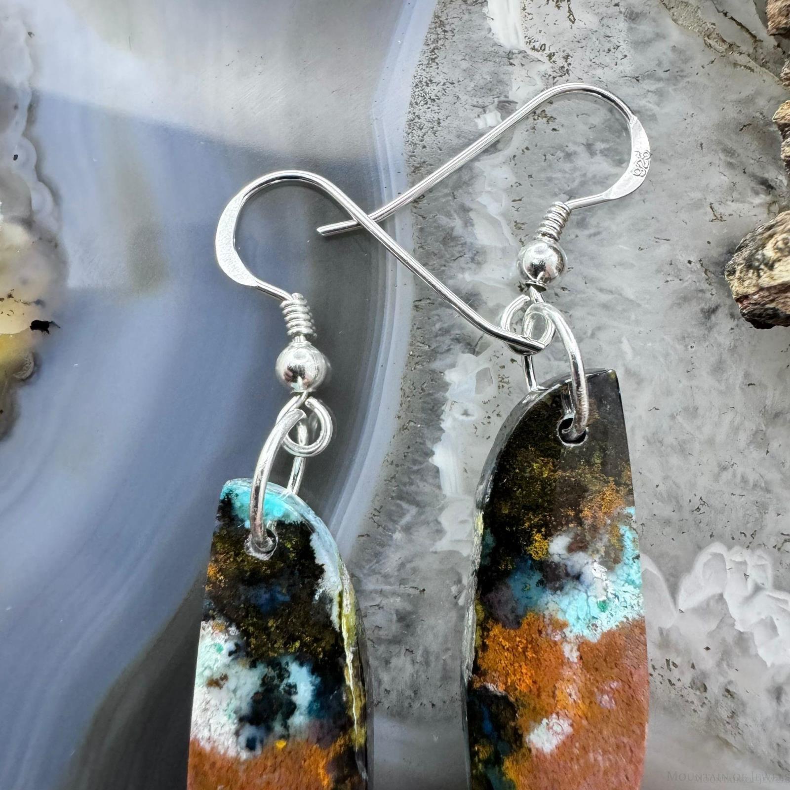 Sterling Silver Tilde Shape Chrysocolla Slab Dangle Earrings For Women #228
