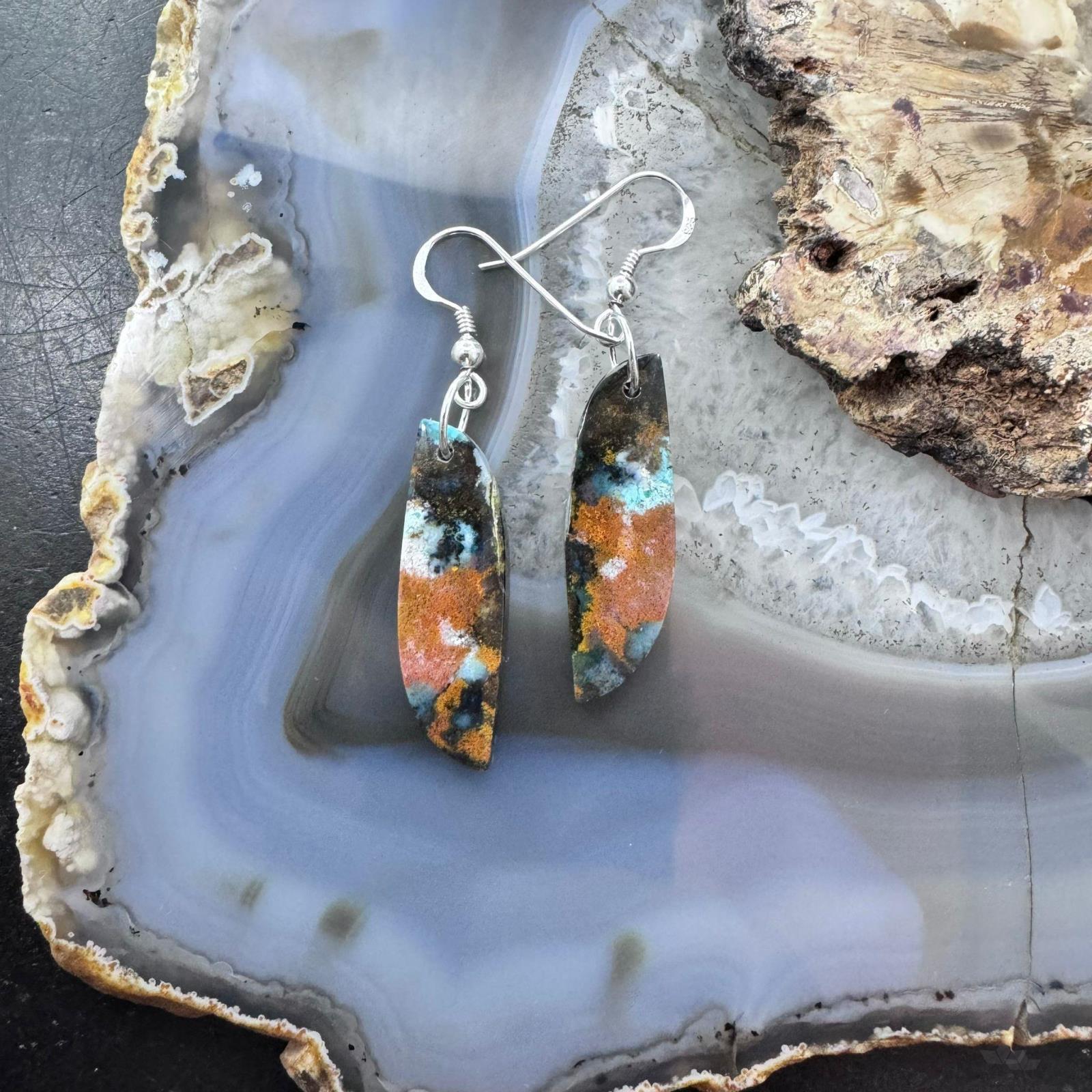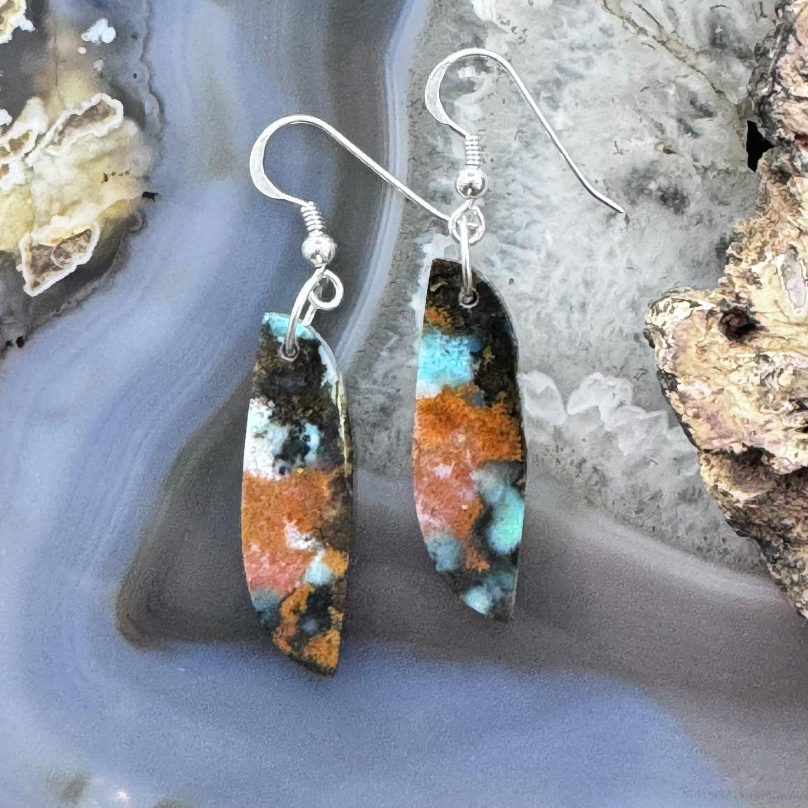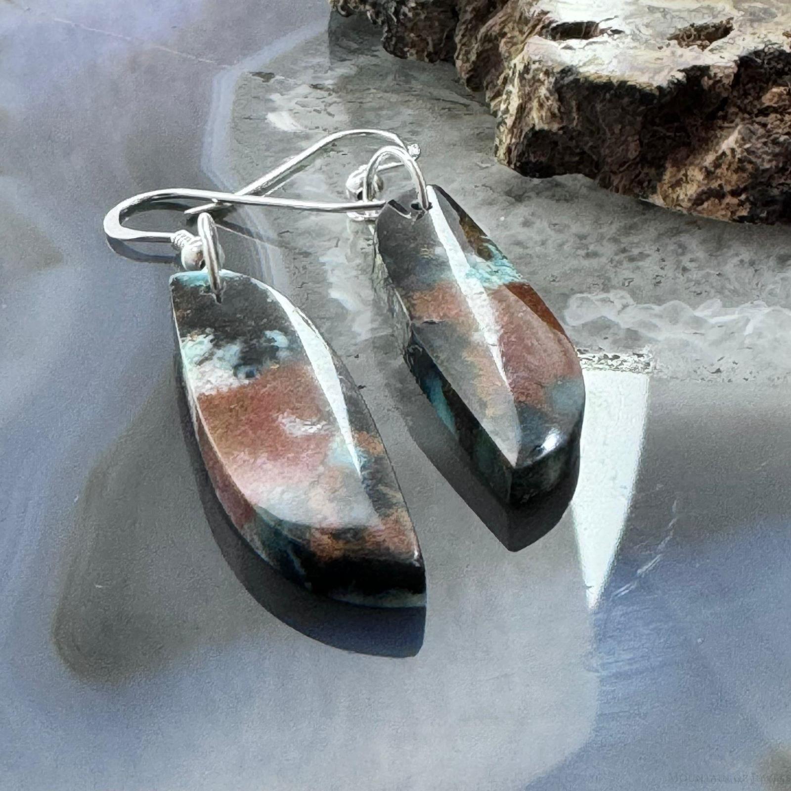 ** Dear buyer, please note that the stones in these earrings are natural and may have various matrixes, lines and sometime pits or cavities. Unlike stones that are set in a silver cup or bezel, these are not. Under normal wear and tear, nothing should damage the stones. However, they are fragile and if dropped on a hard surface they may chip, break or shatter. Since every pair is unique in pattern and design, we would not be able to replace one earring, and you'll have to acquire a whole new set. Wear these beautiful earrings responsibly.**