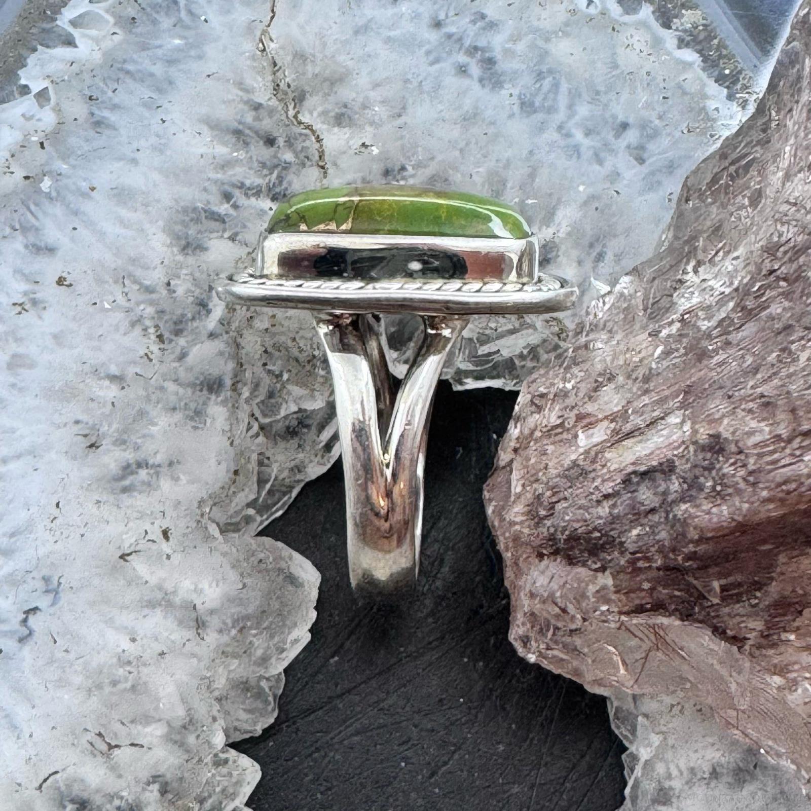 Sterling Southwestern Style Atlantisite & Green Copper Bar Ring Size 6.75 For Women