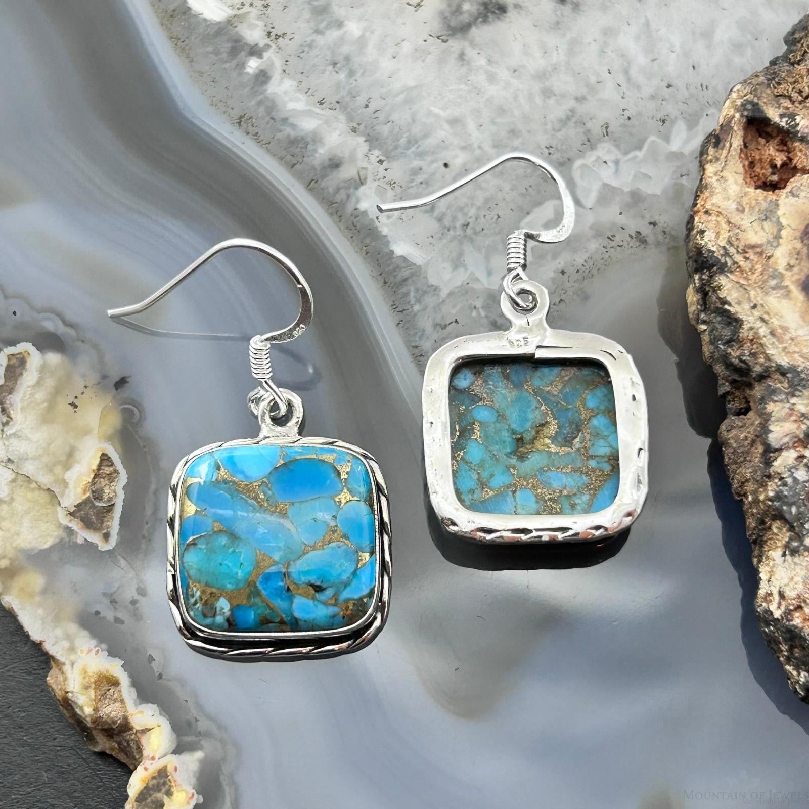 Sterling Silver Southwestern Style Blue Copper Turquoise Dangle Earrings For Women #1