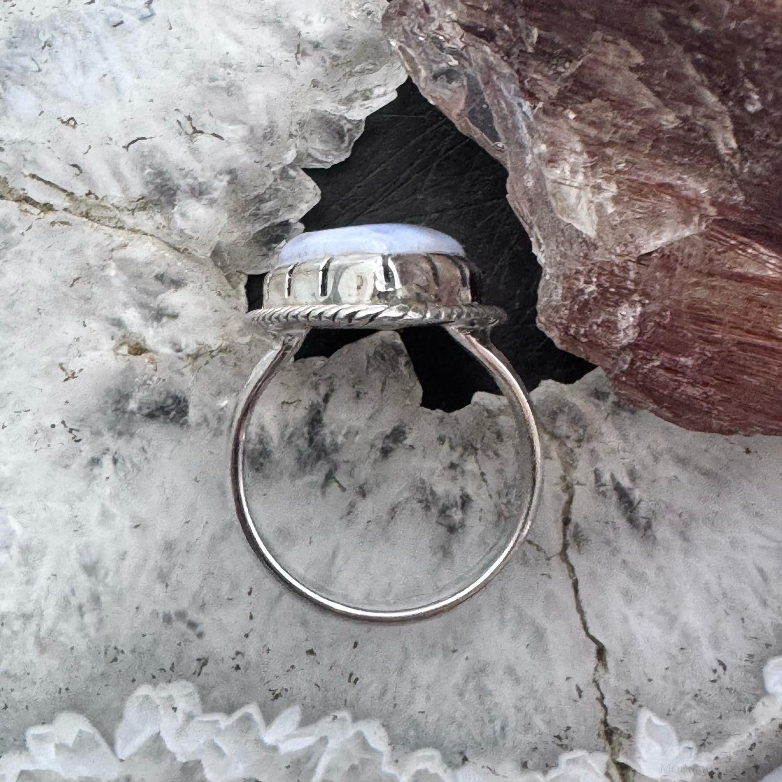 Sterling Silver Southwestern Style Blue Lace Agate Decorated Ring Size 6.75 For Women