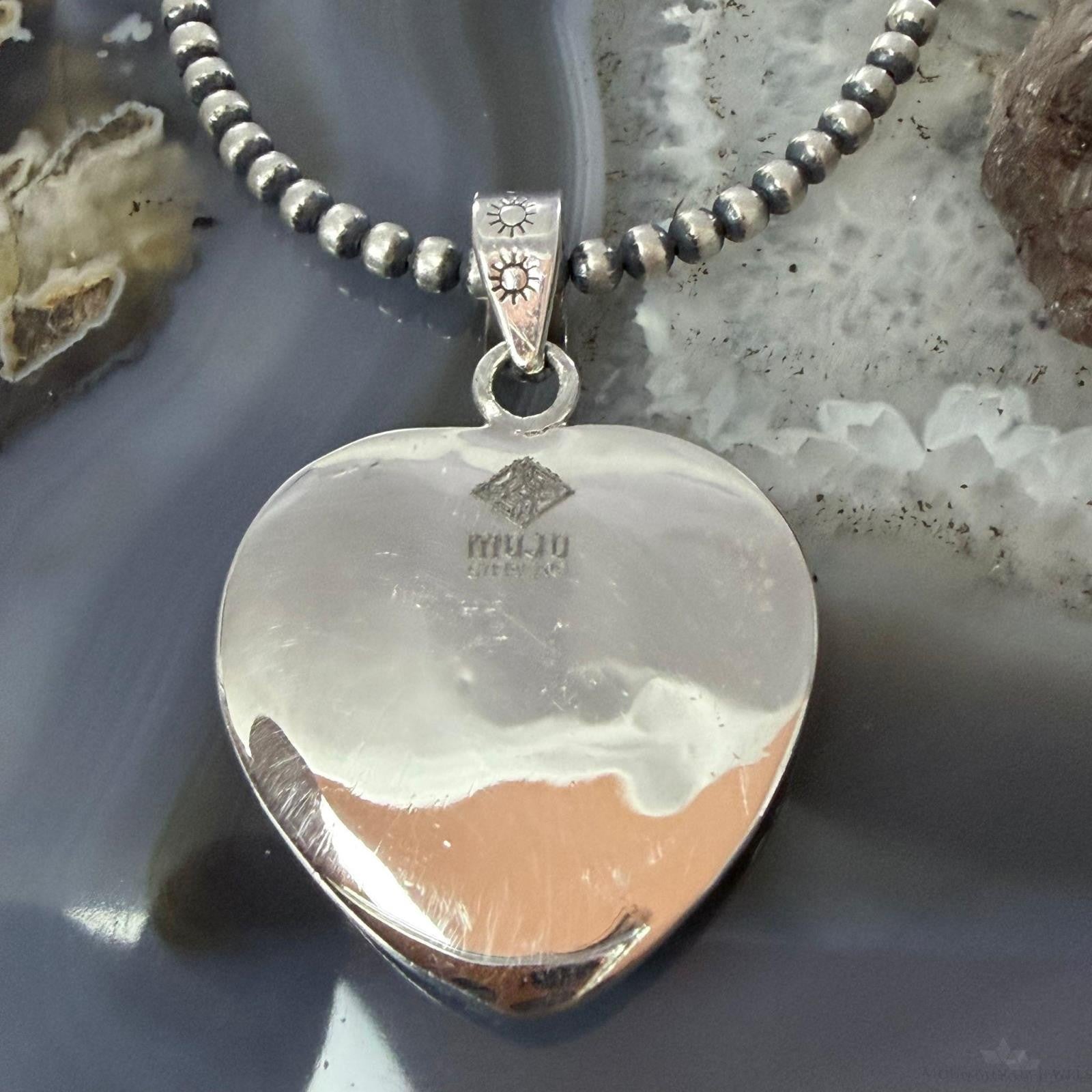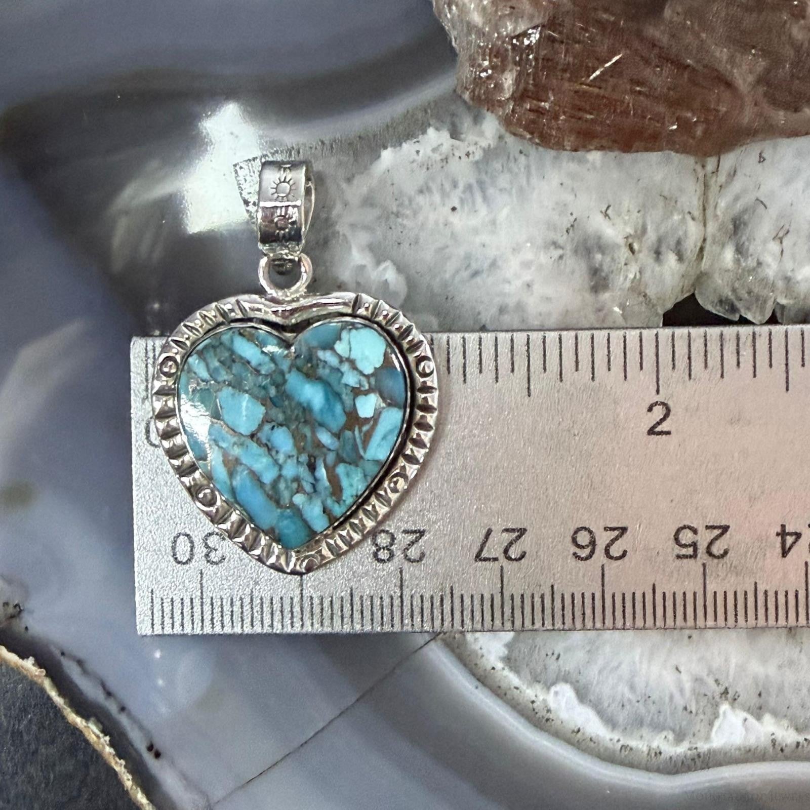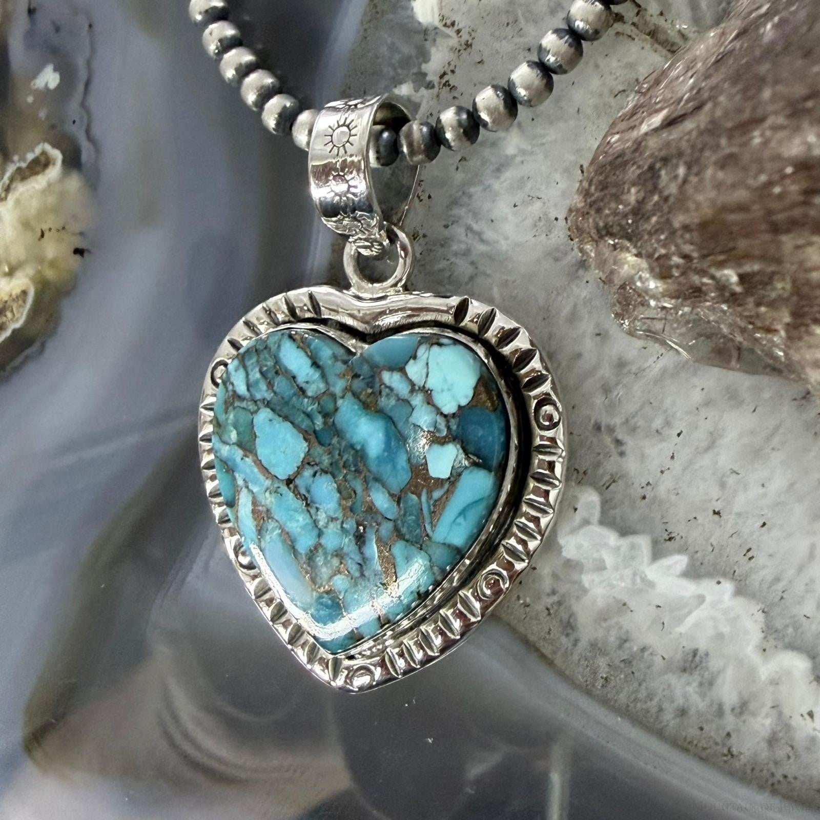 Sterling Silver Southwestern Style Blue Turquoise Dahlia Heart Pendant For Women