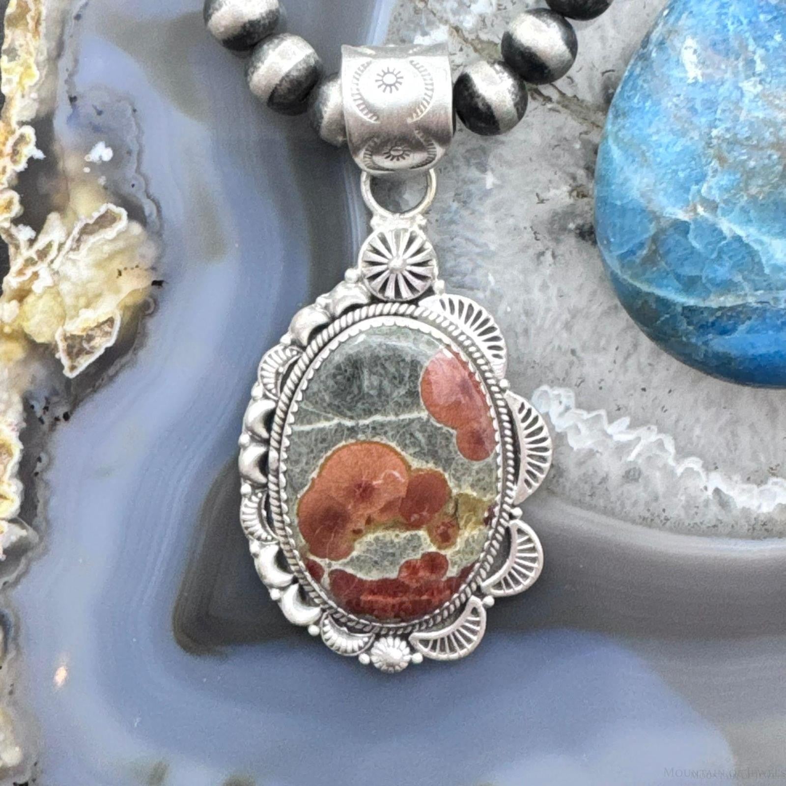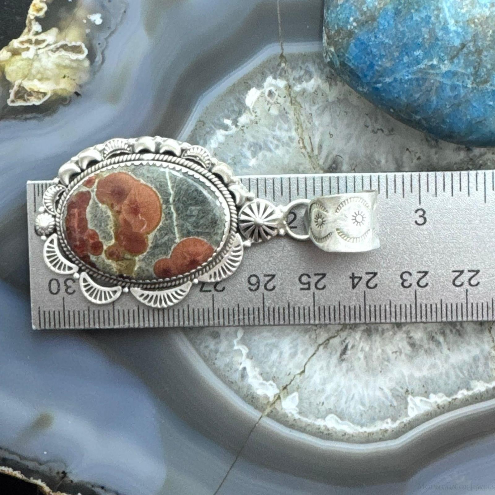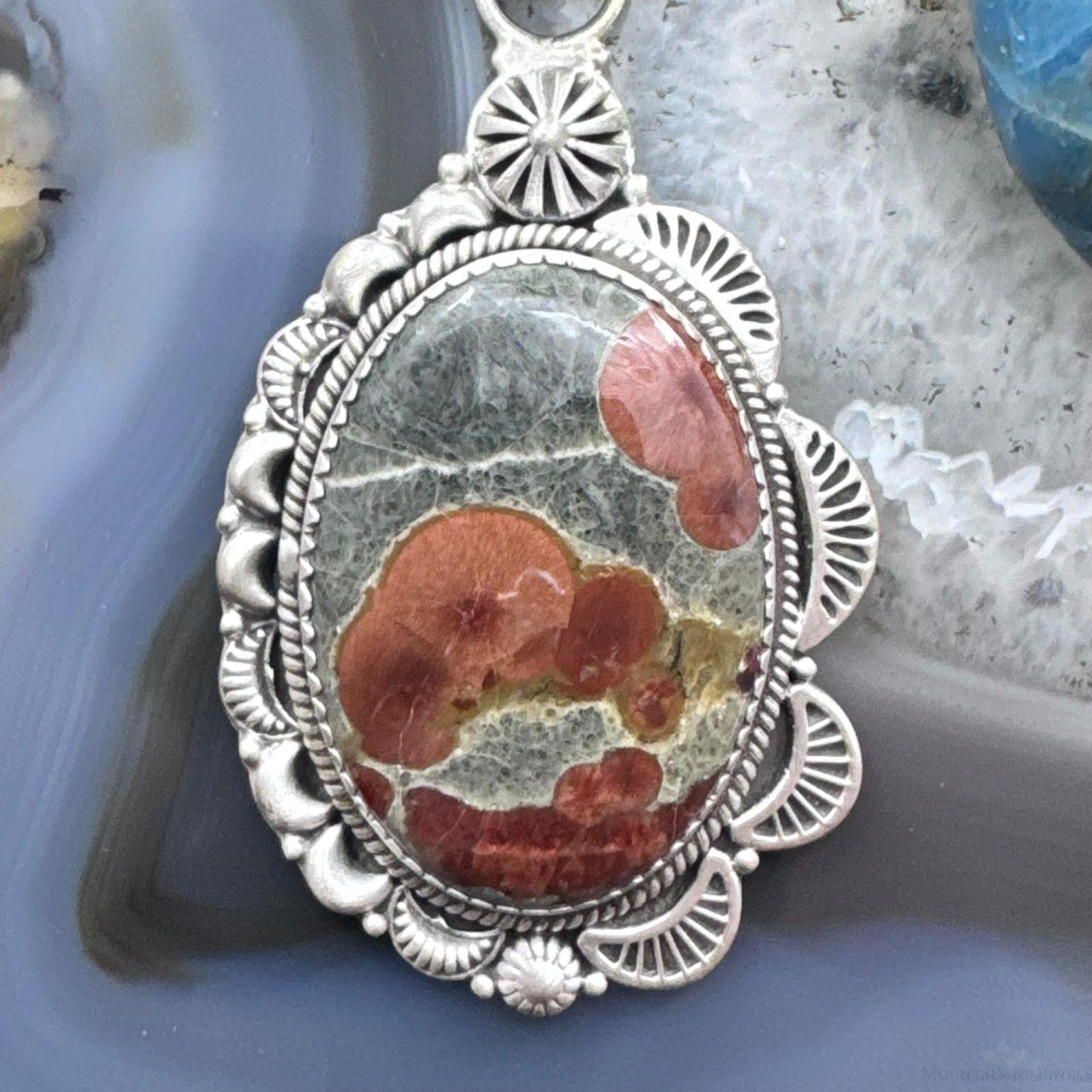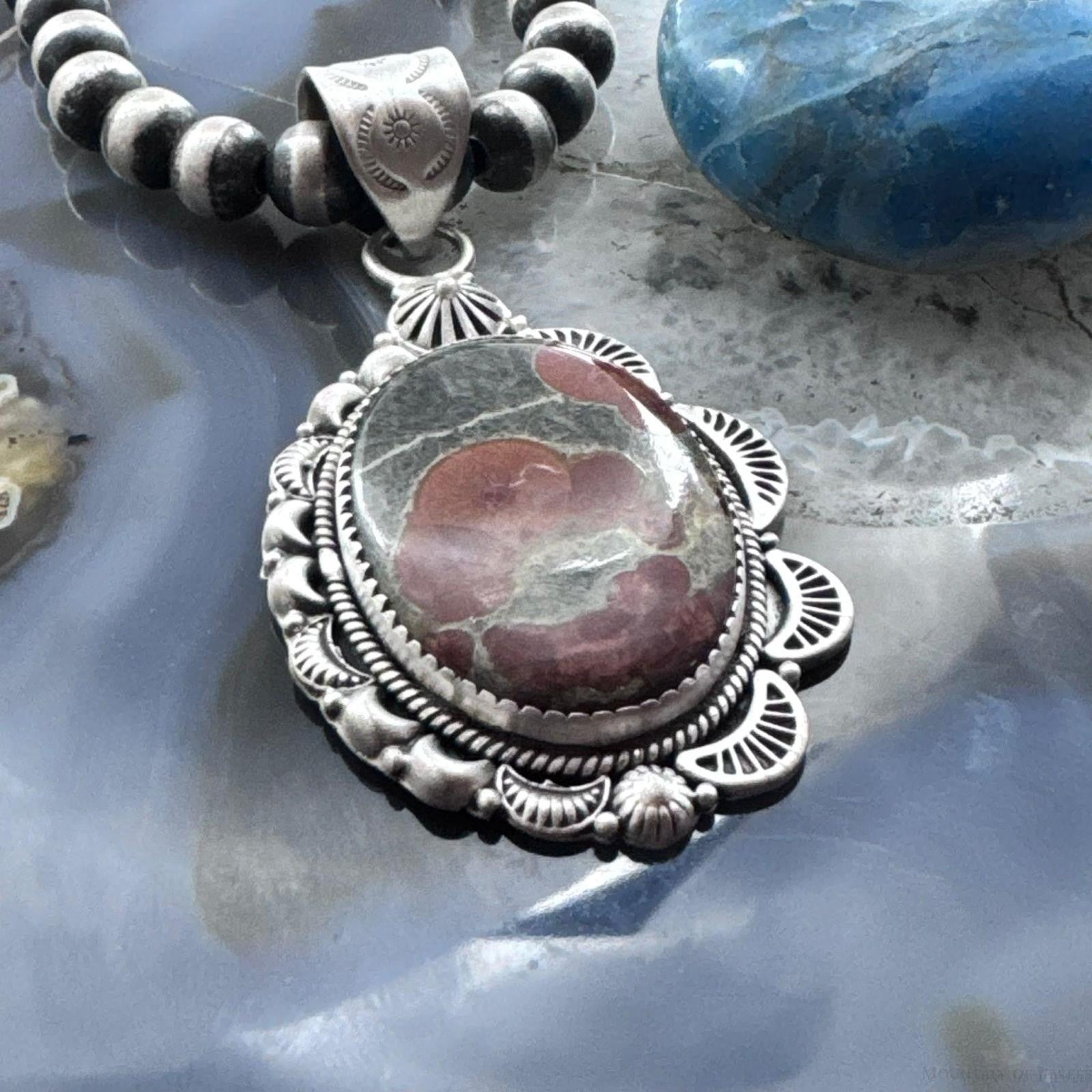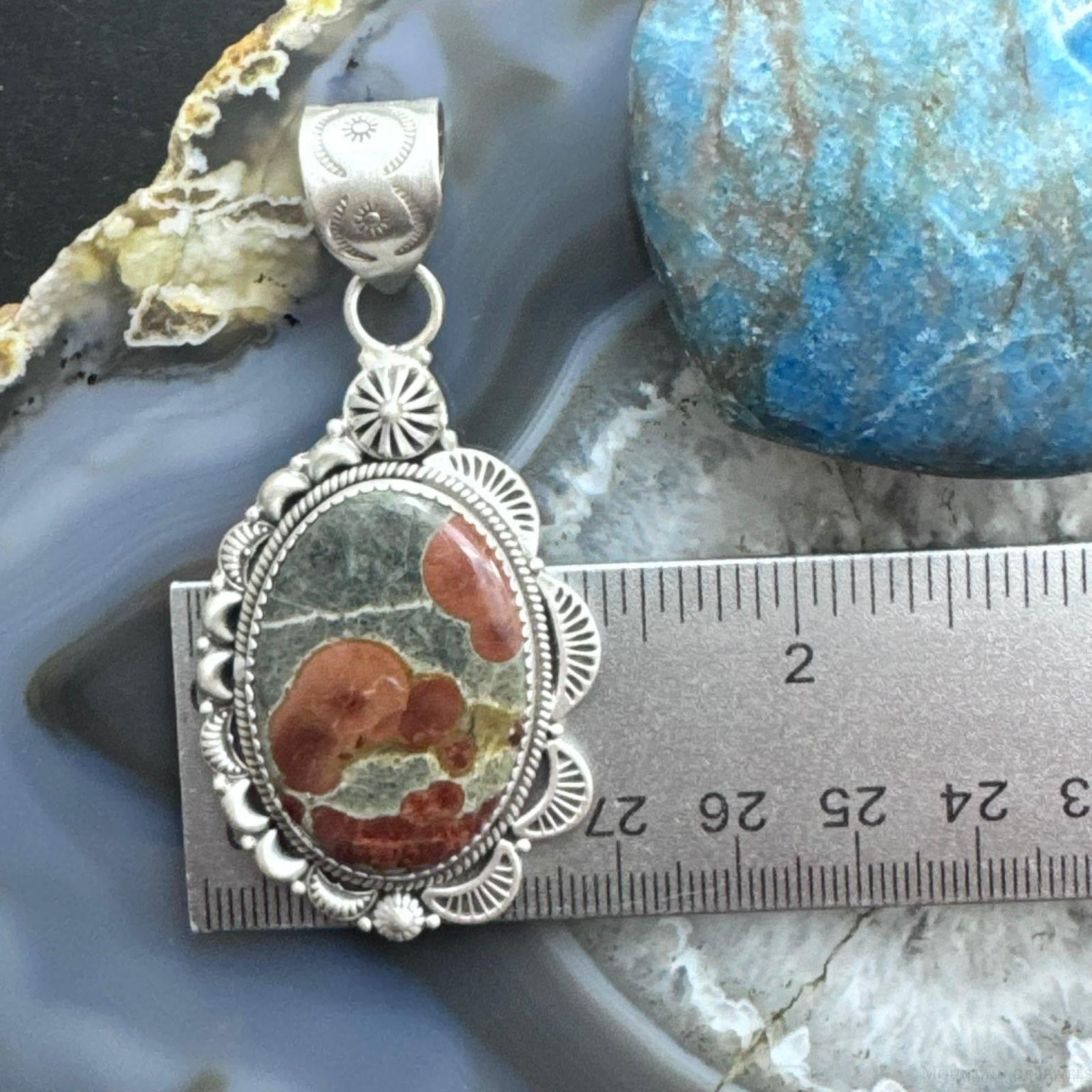 Sterling Silver Southwestern Style Elongated Oval Peanut Obsidian Decorated Pendant For Women.