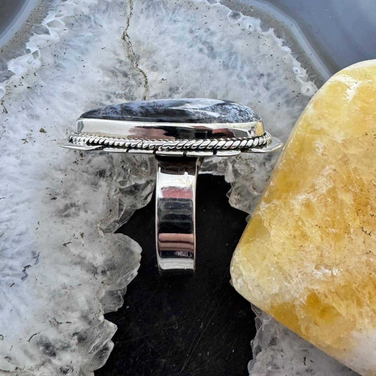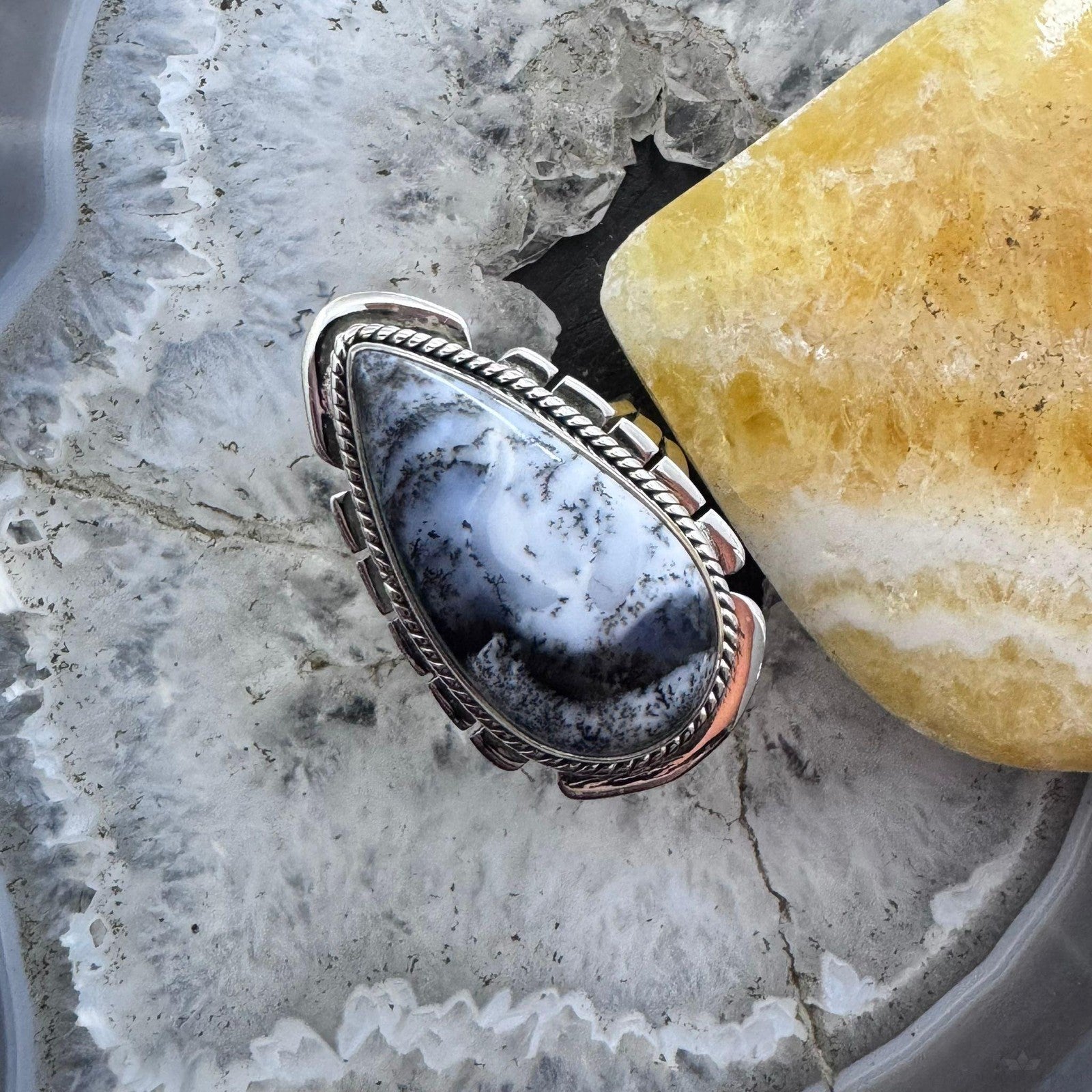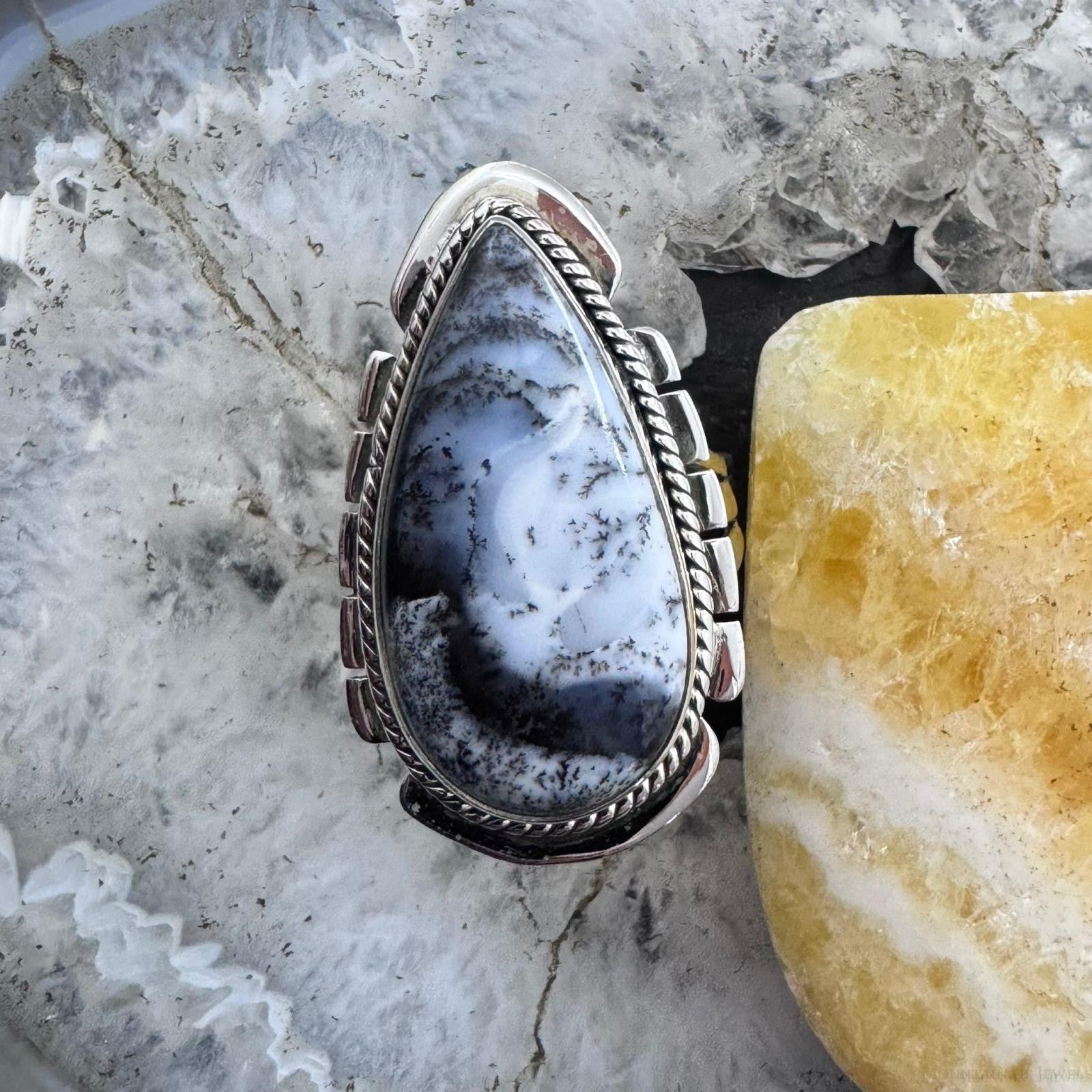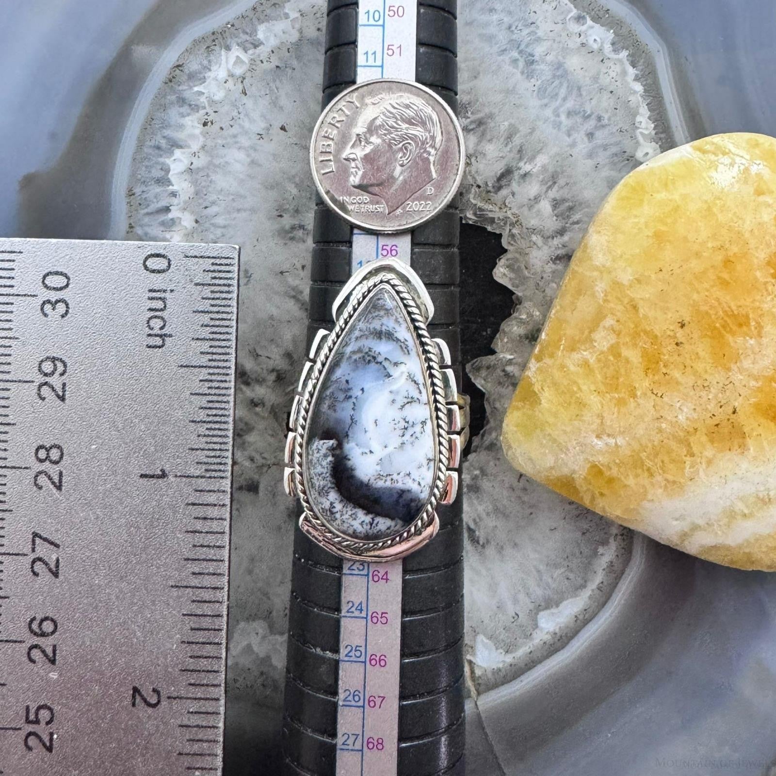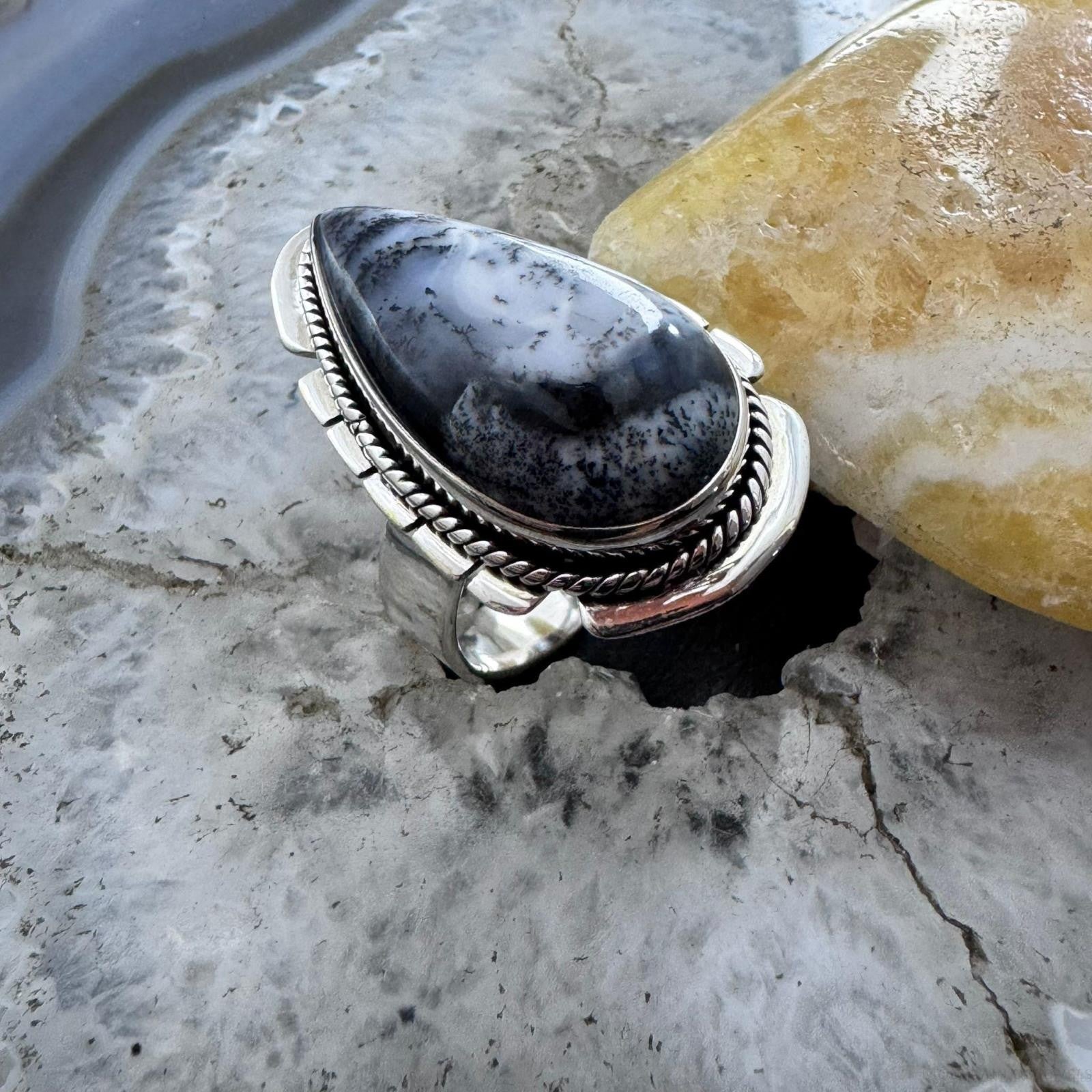 Sterling Silver Southwestern Style Elongated Teardrop Dendrite Agate Ring Size 9.25 For Women