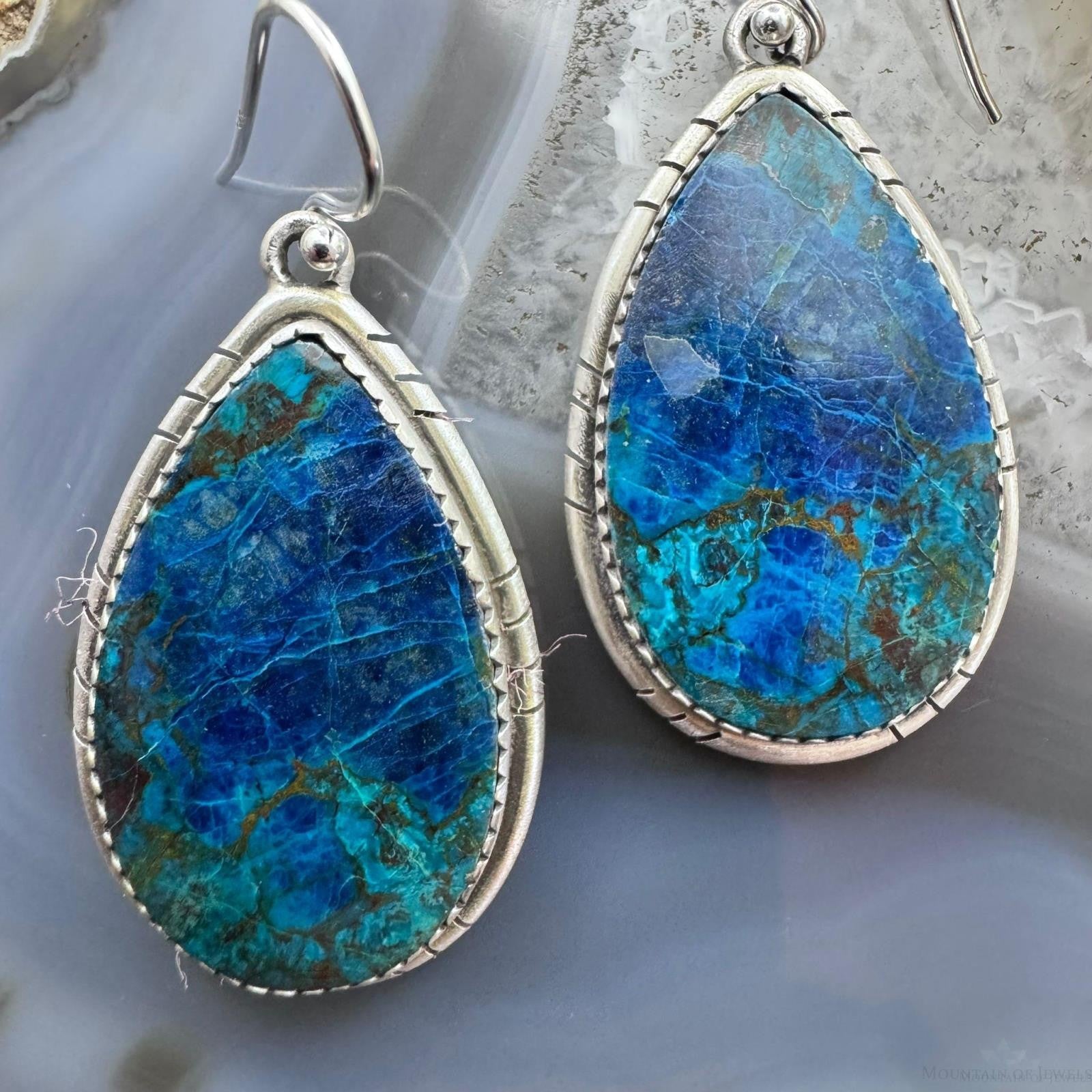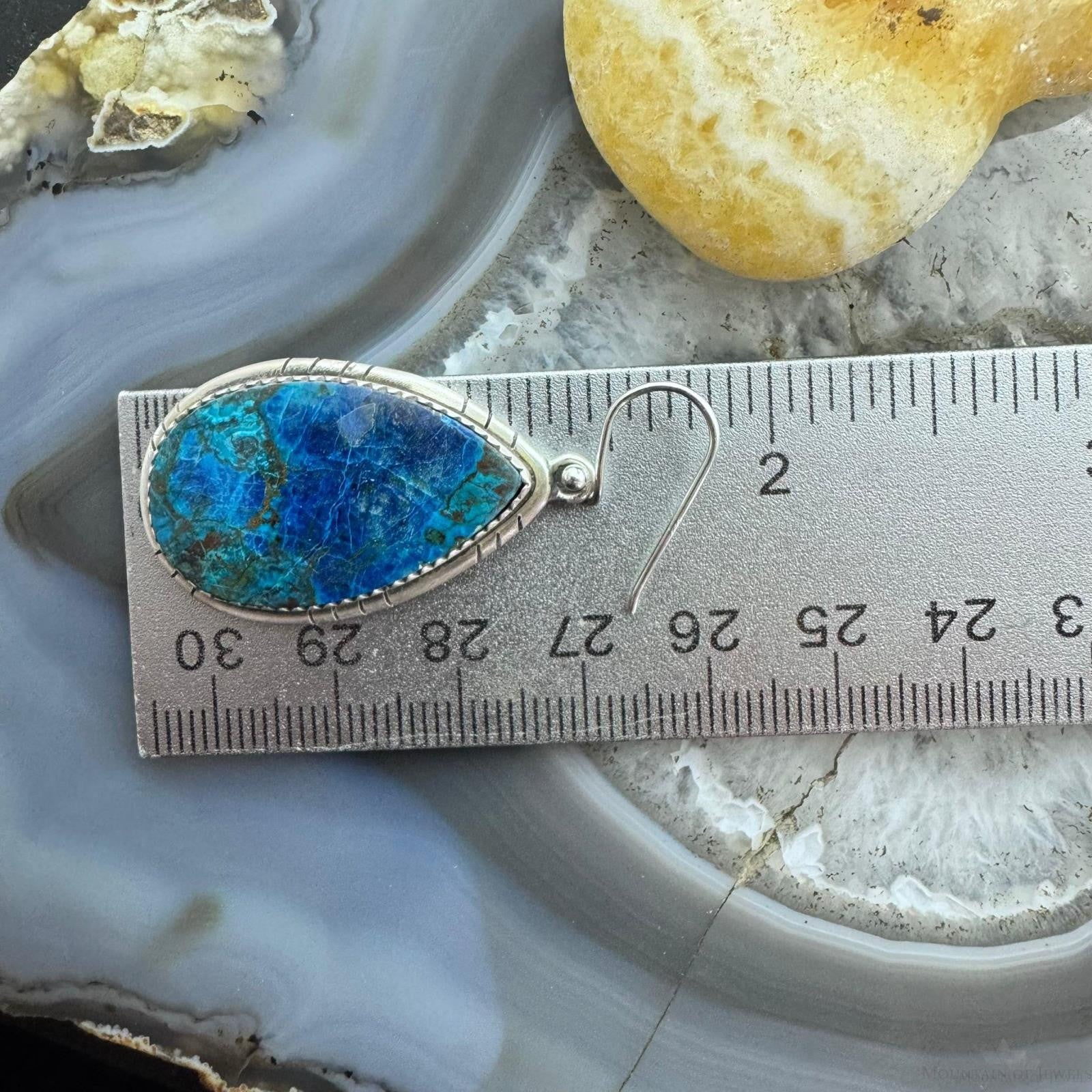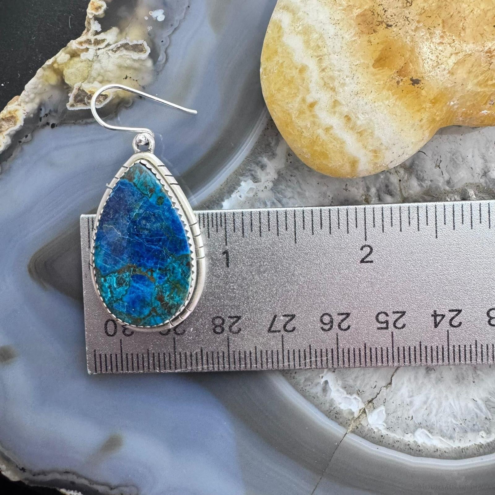Sterling Silver Southwestern Style Elongated Teardrop Shattuckite Dangle Earrings For Women