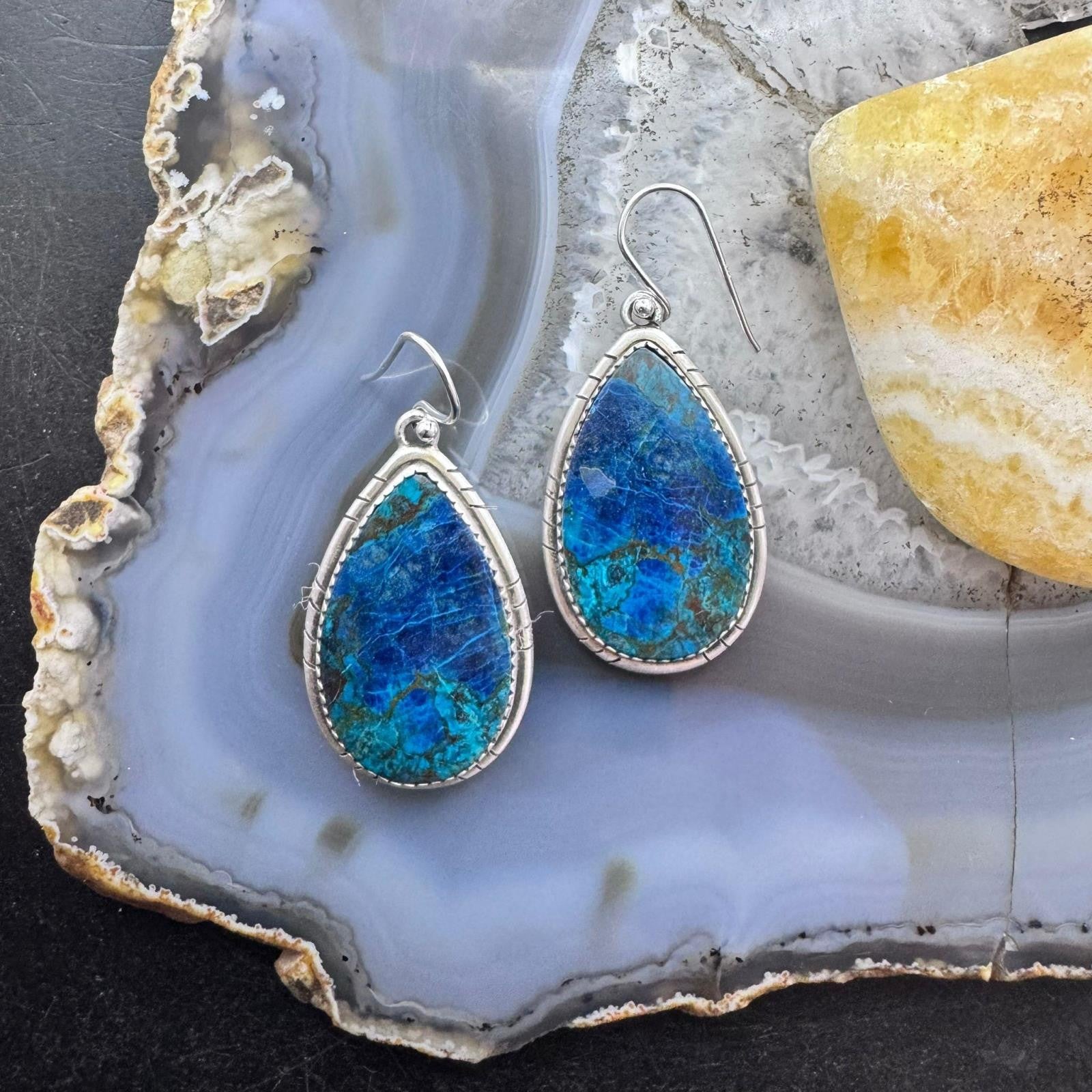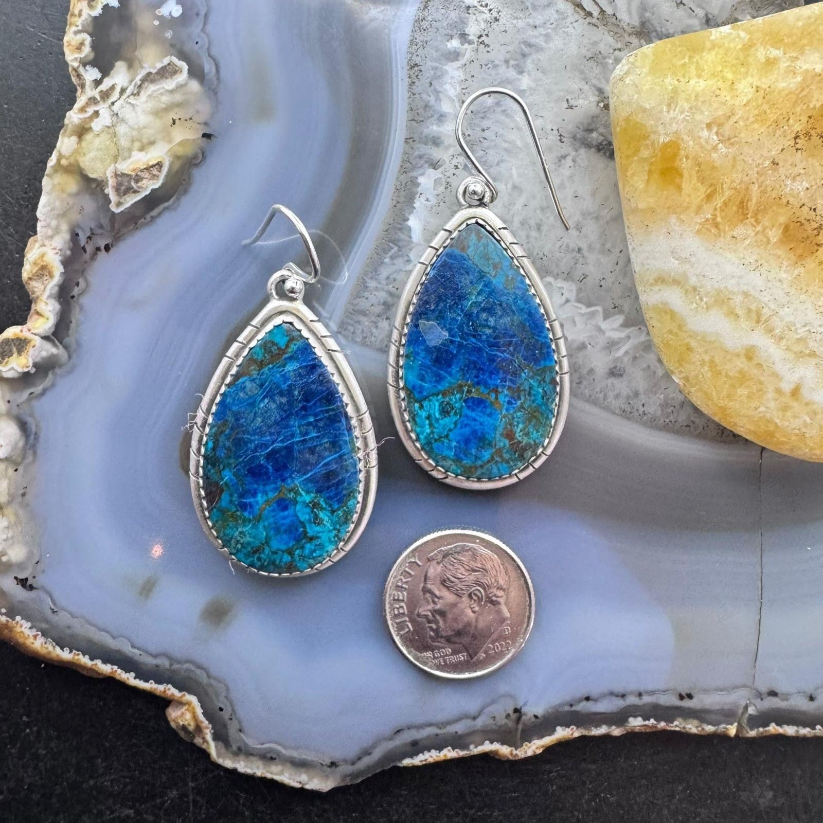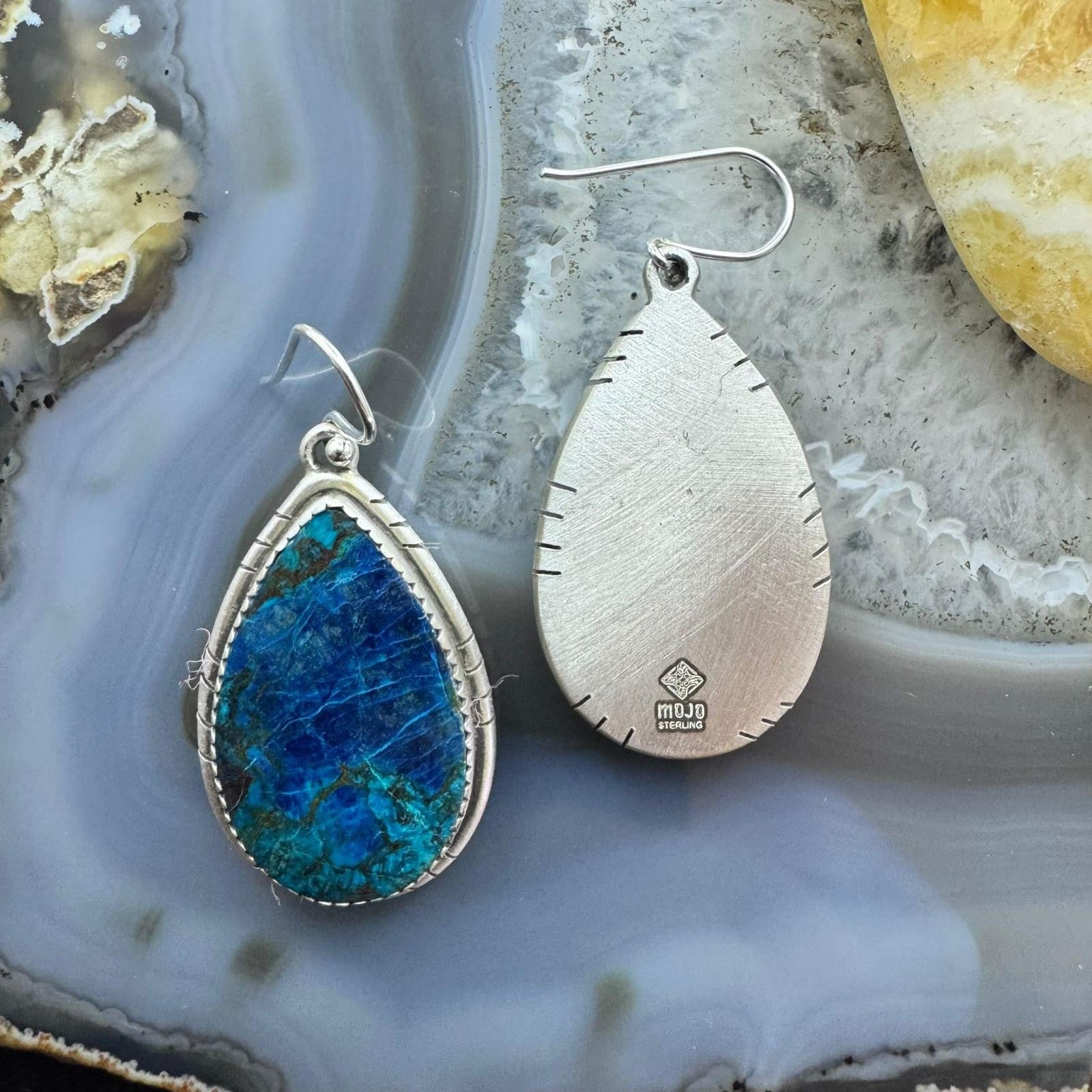 Sterling Silver Southwestern Style Elongated Teardrop Shattuckite Dangle Earrings For Women