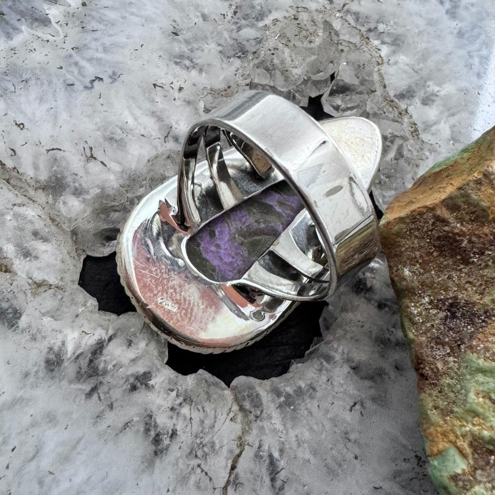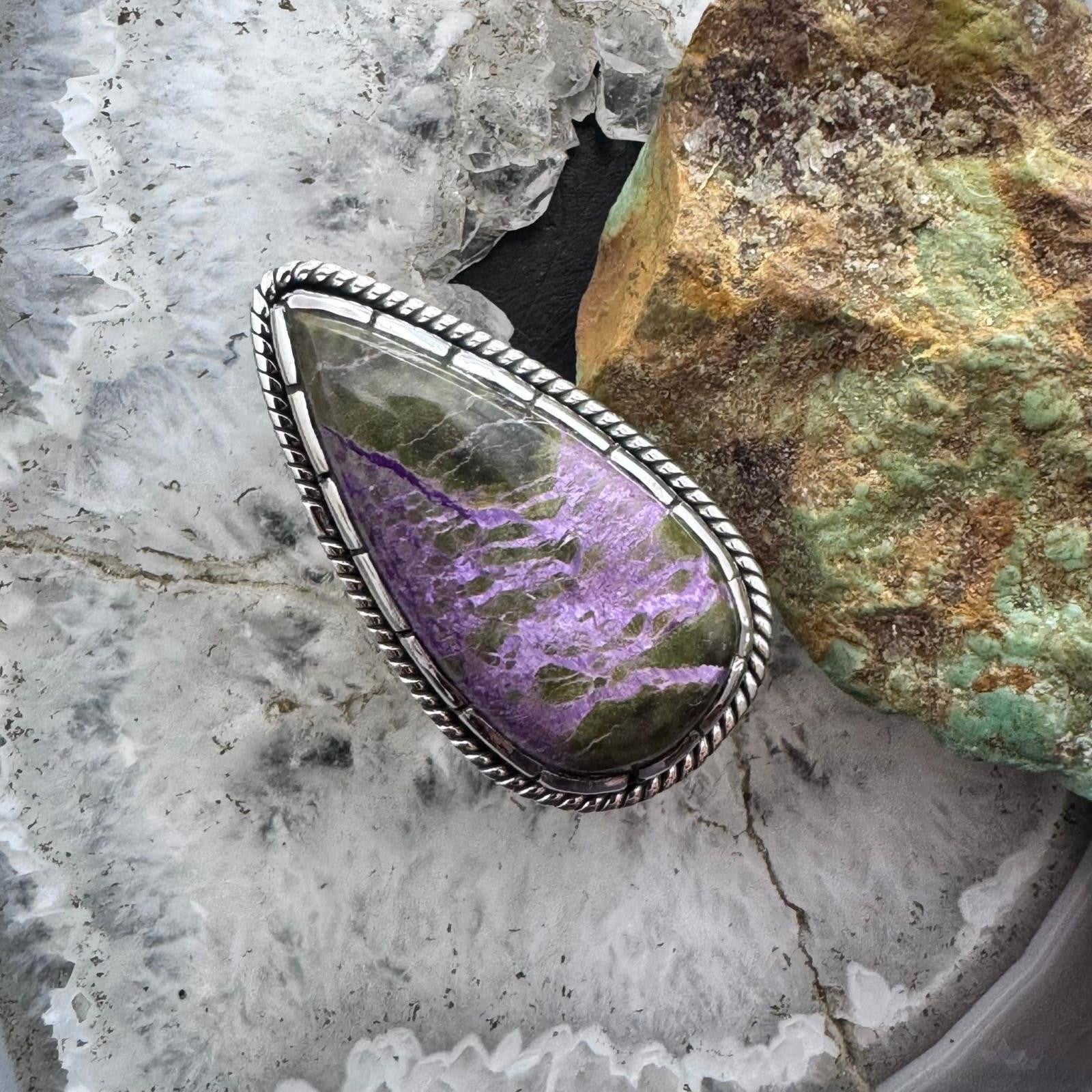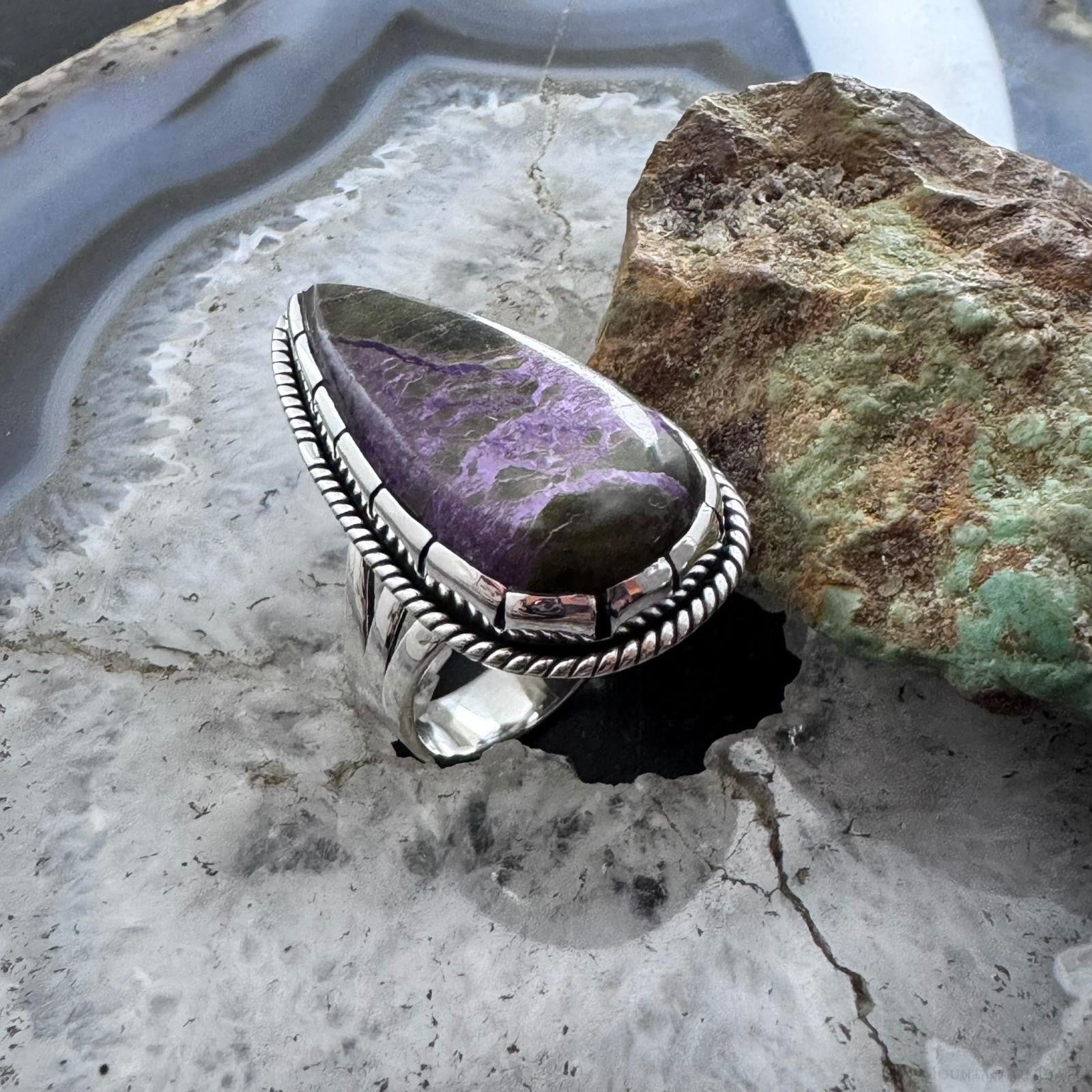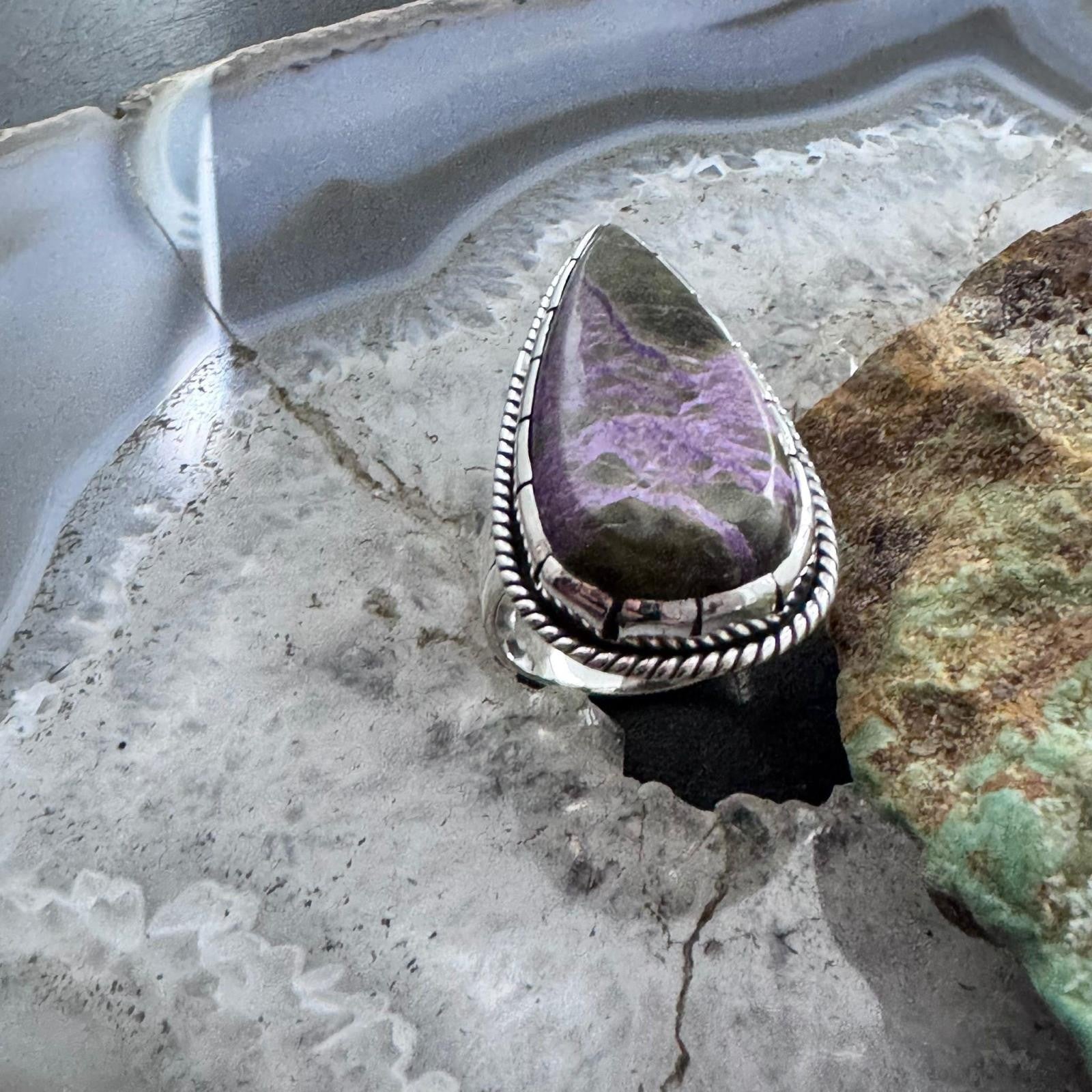 Sterling Southwestern Style Elongated Teardrop Stichtite Ring Size 8.75 For Women