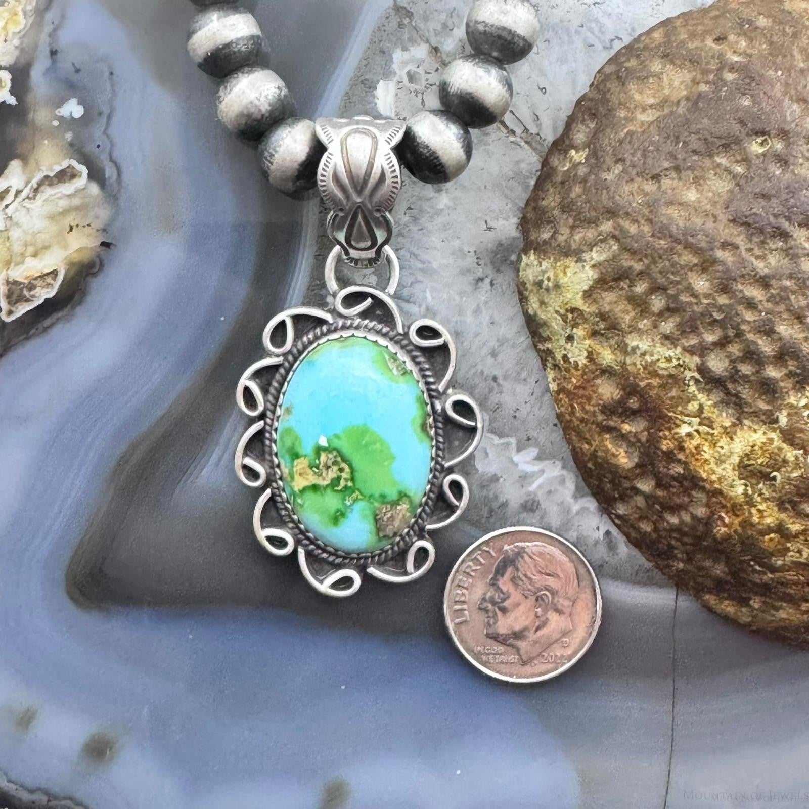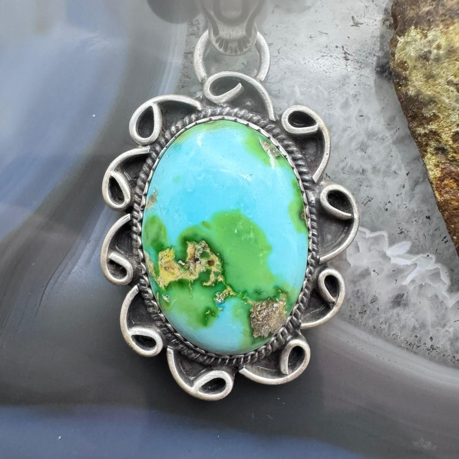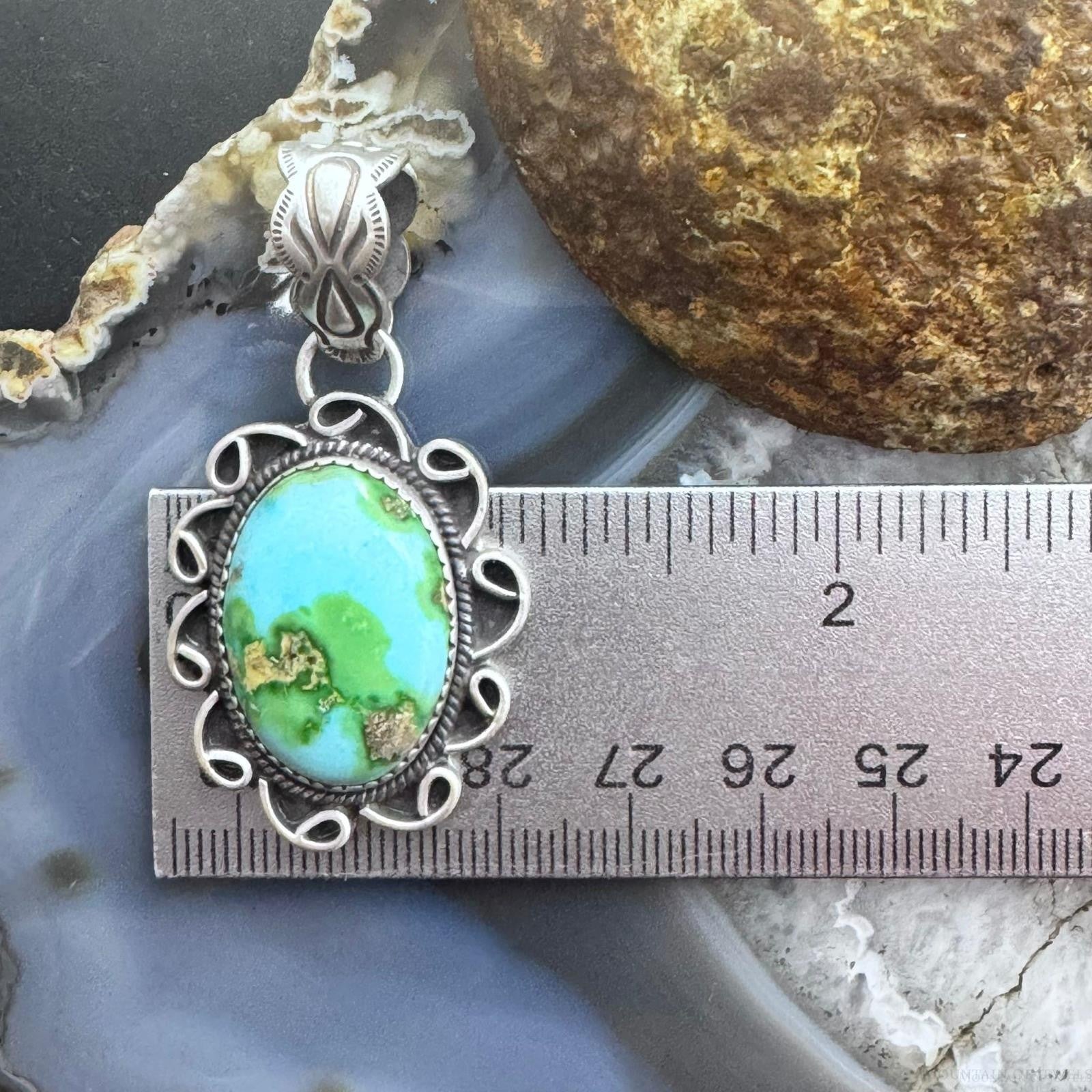 Sterling Silver Southwestern Style High Grade Matrix Sierra Bella Turquoise Pendant For Women
