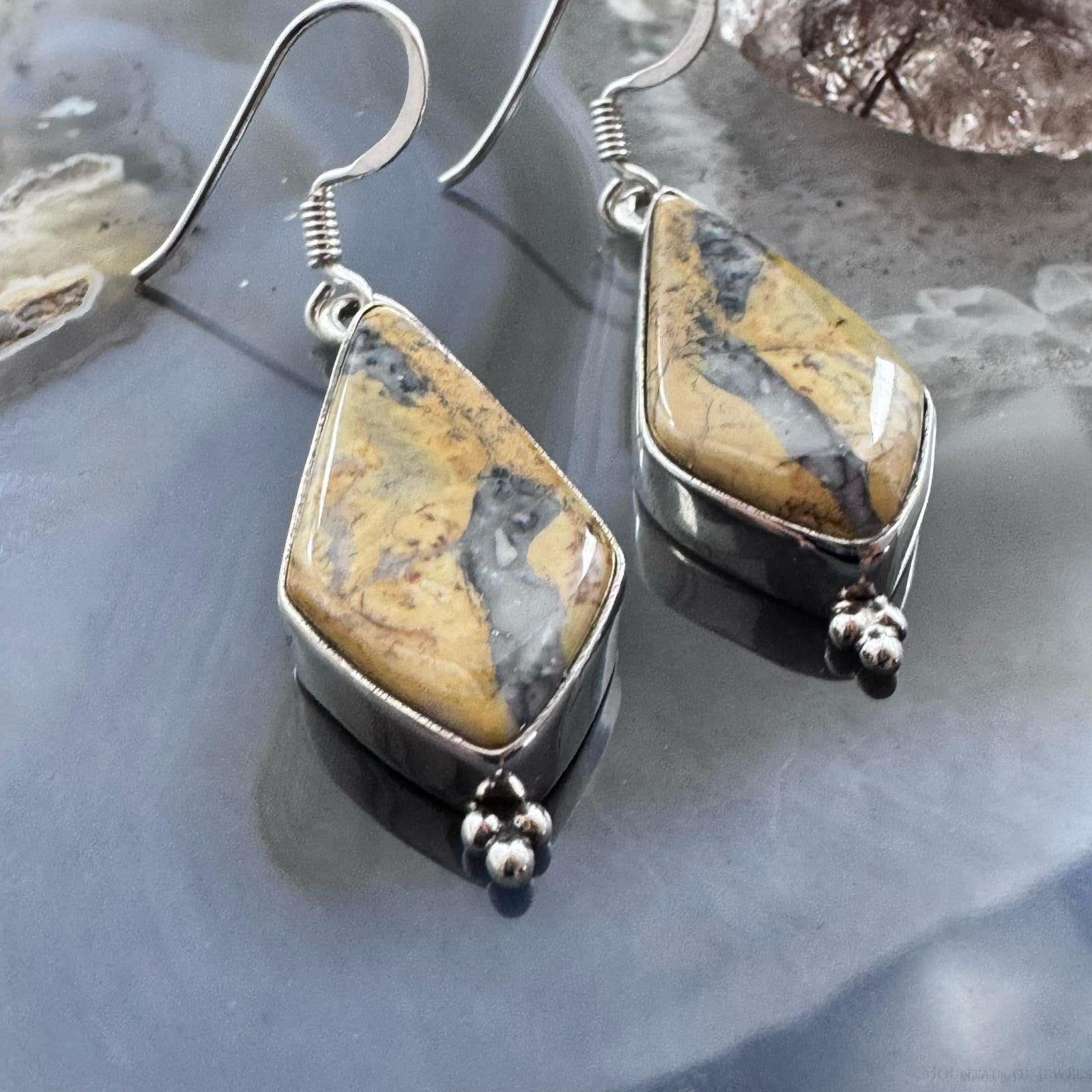 Sterling Silver Style Kite Maligano Jasper Dangle Earrings For Women