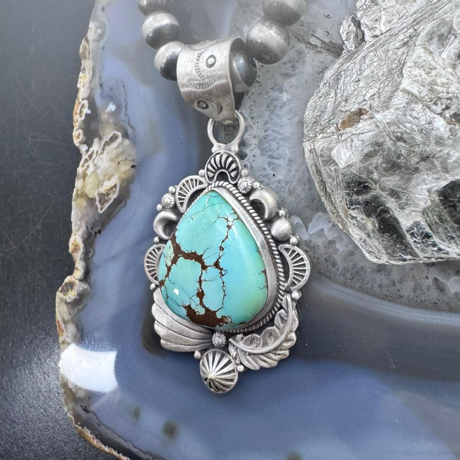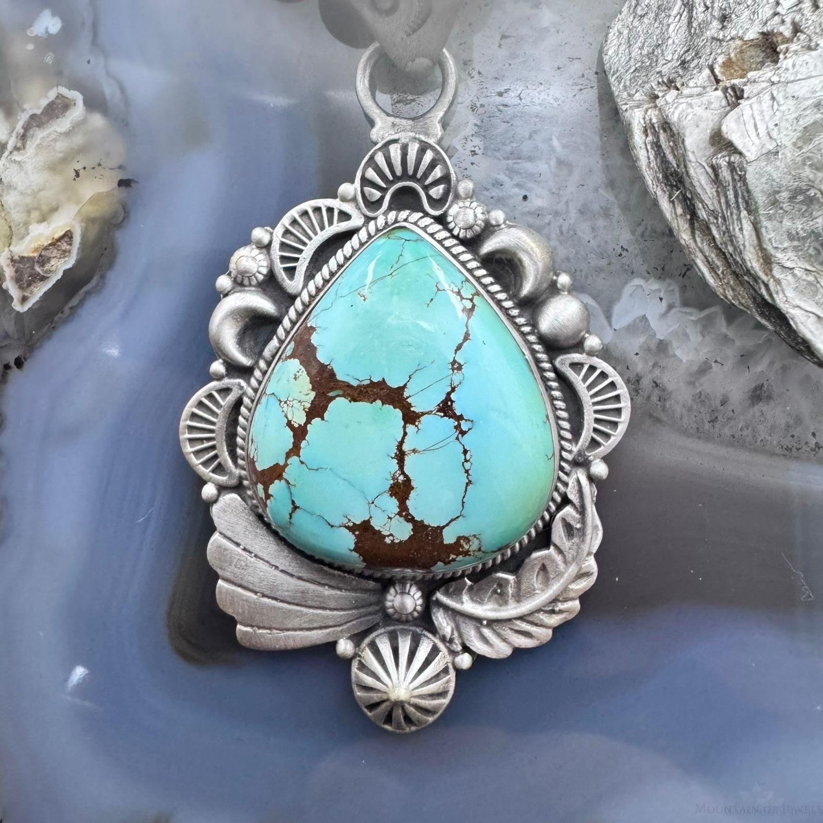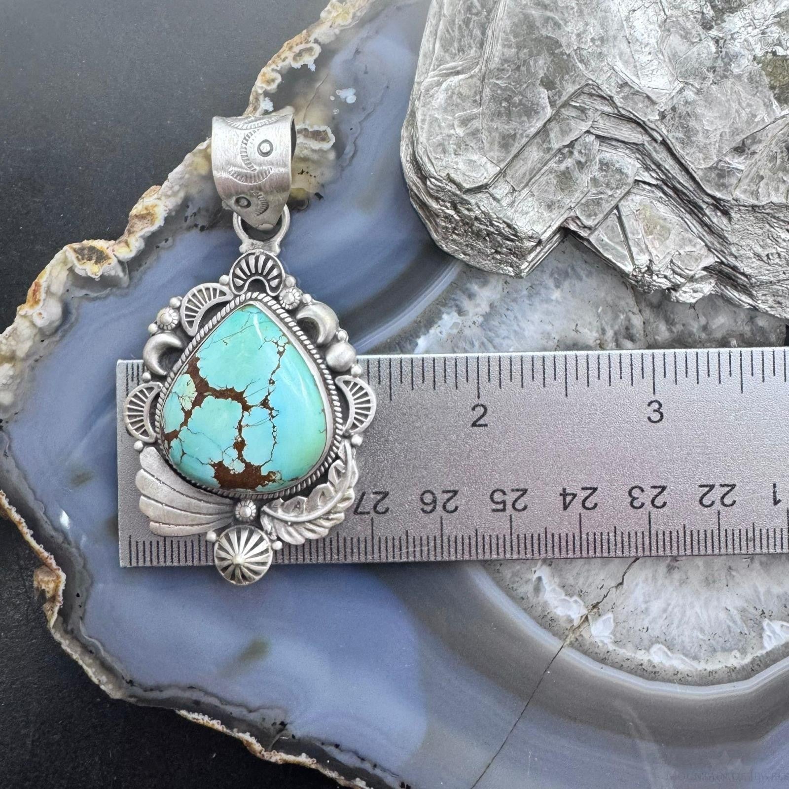 Sterling Silver Southwestern Style Large Chubby Teardrop Sierra Bella Turquoise Pendant For Women