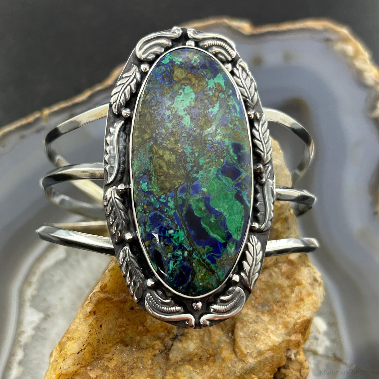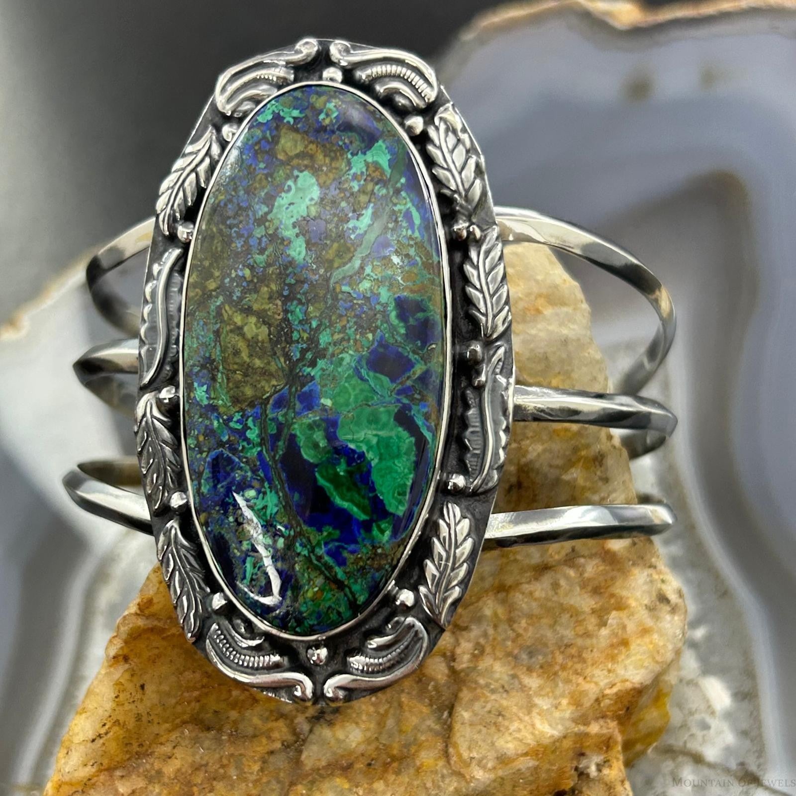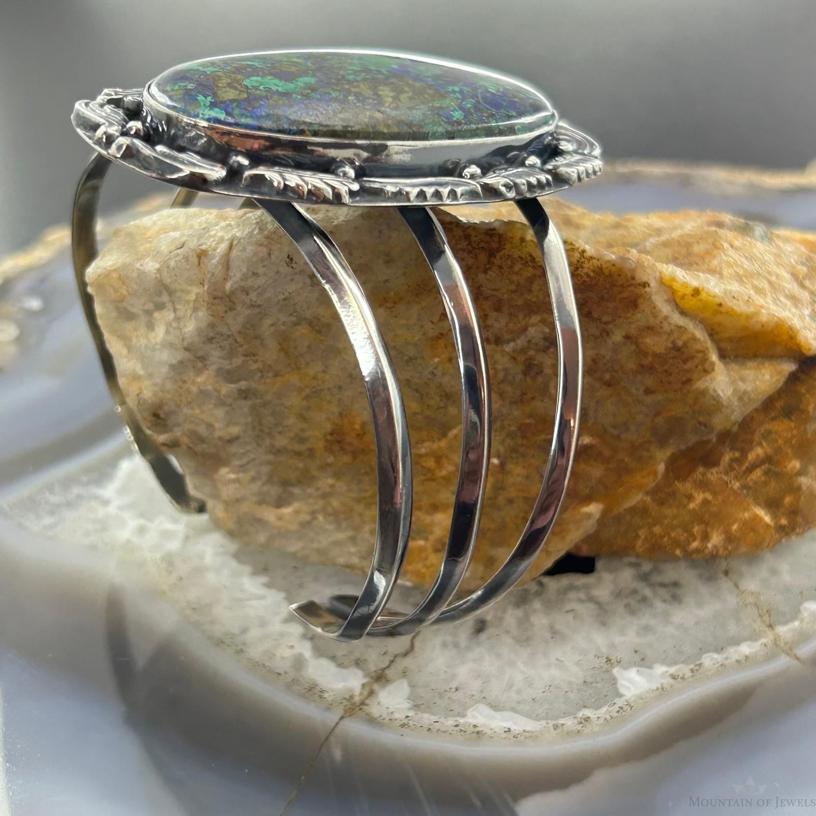Sterling Silver Southwestern Style Large Oval Azurite Malachite Bracelet For Women
