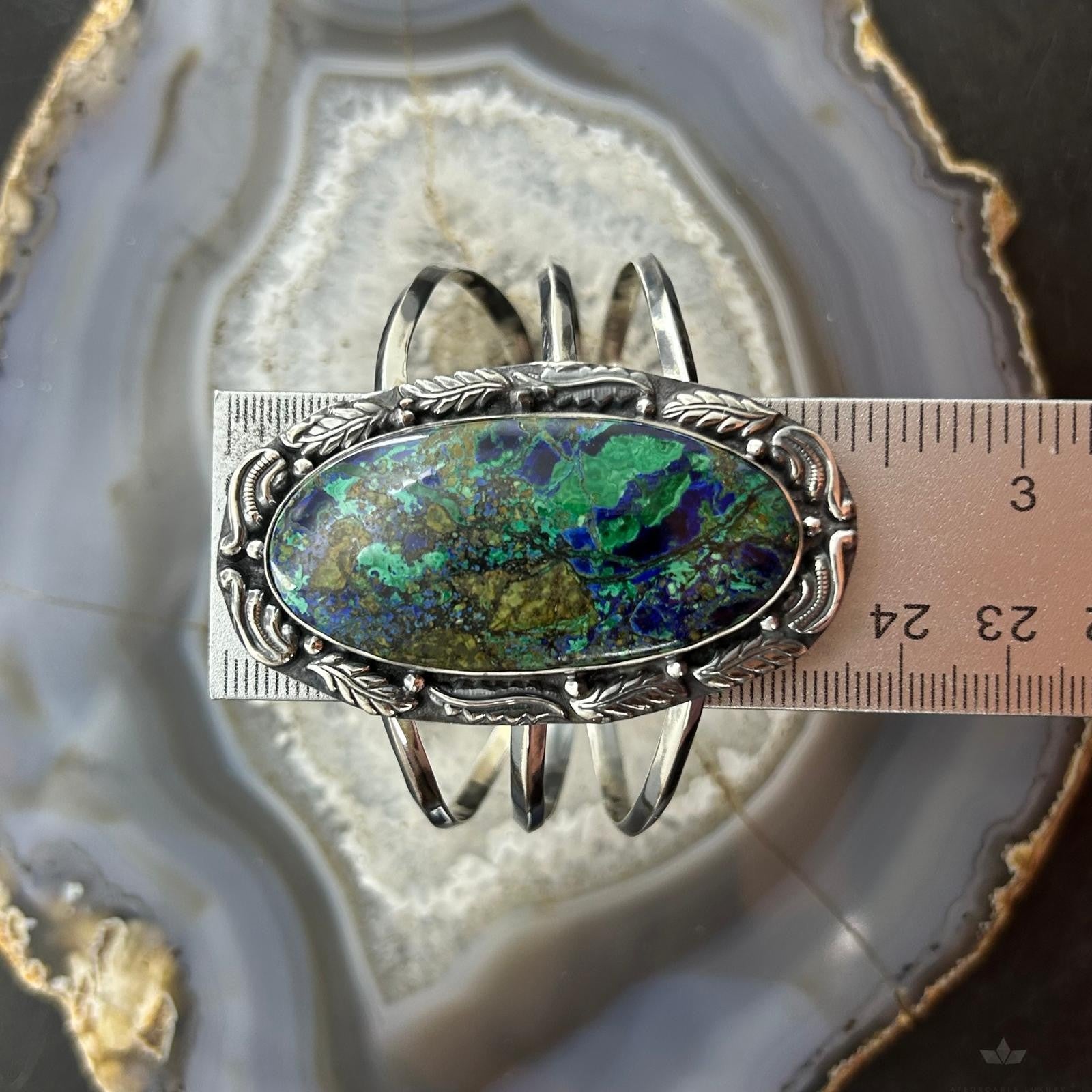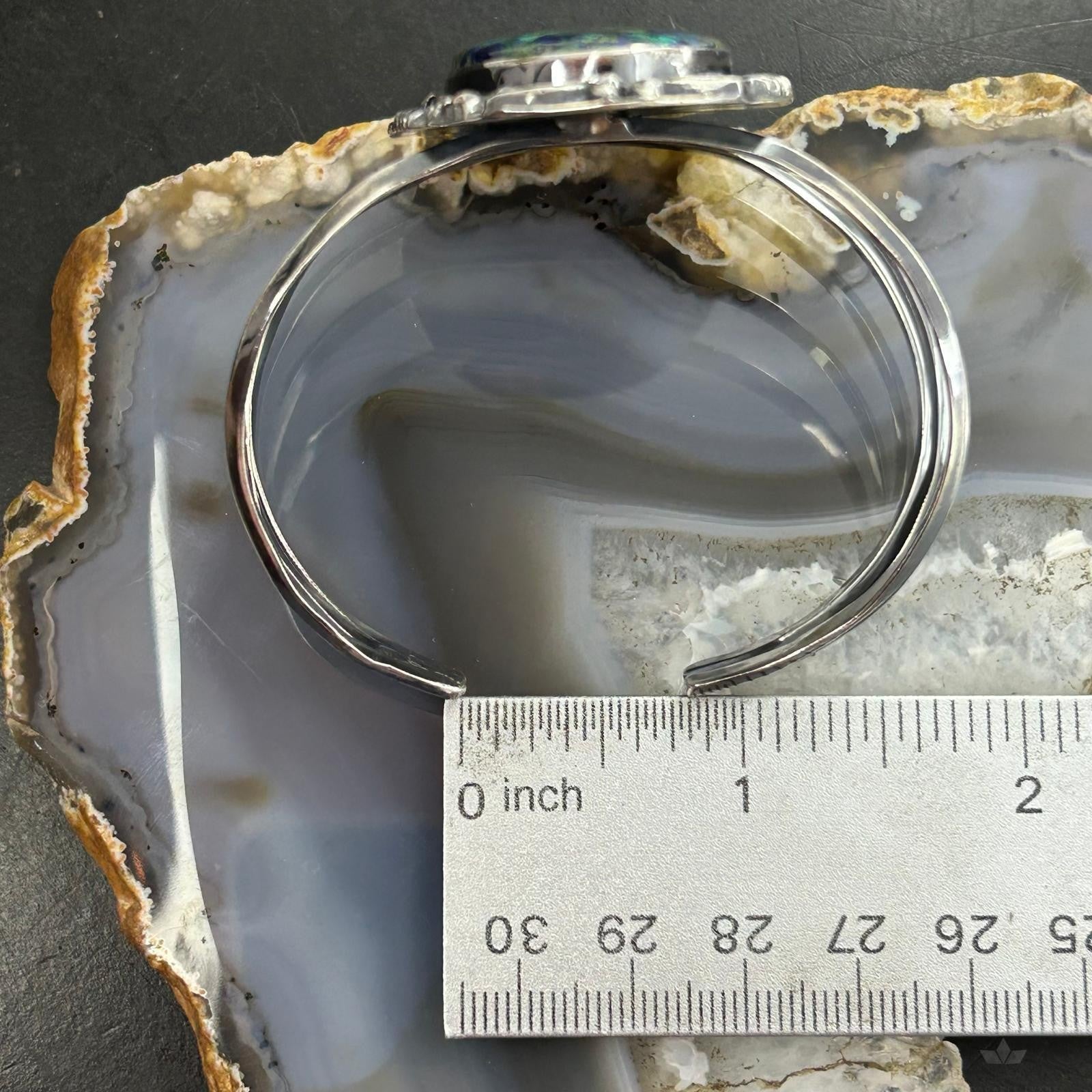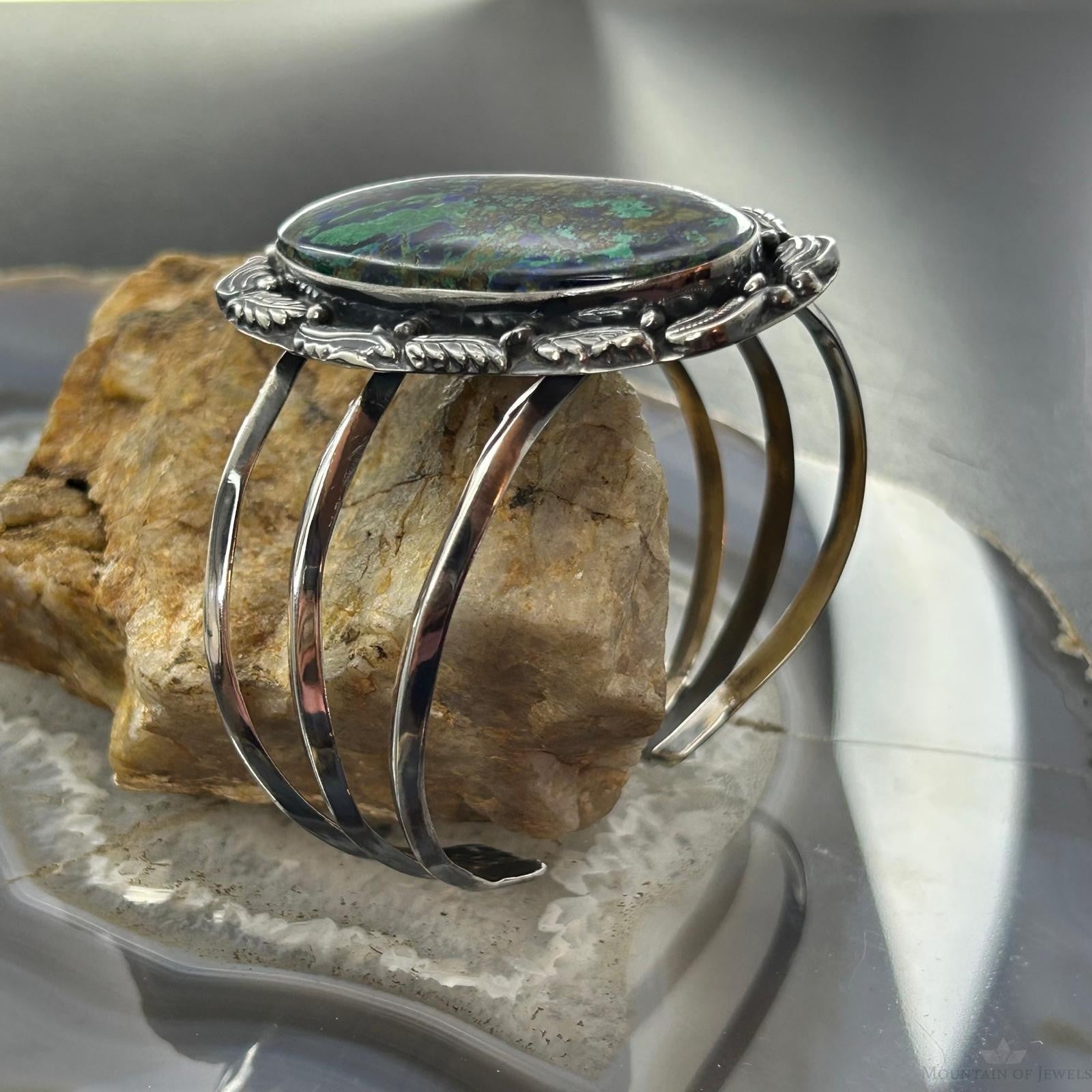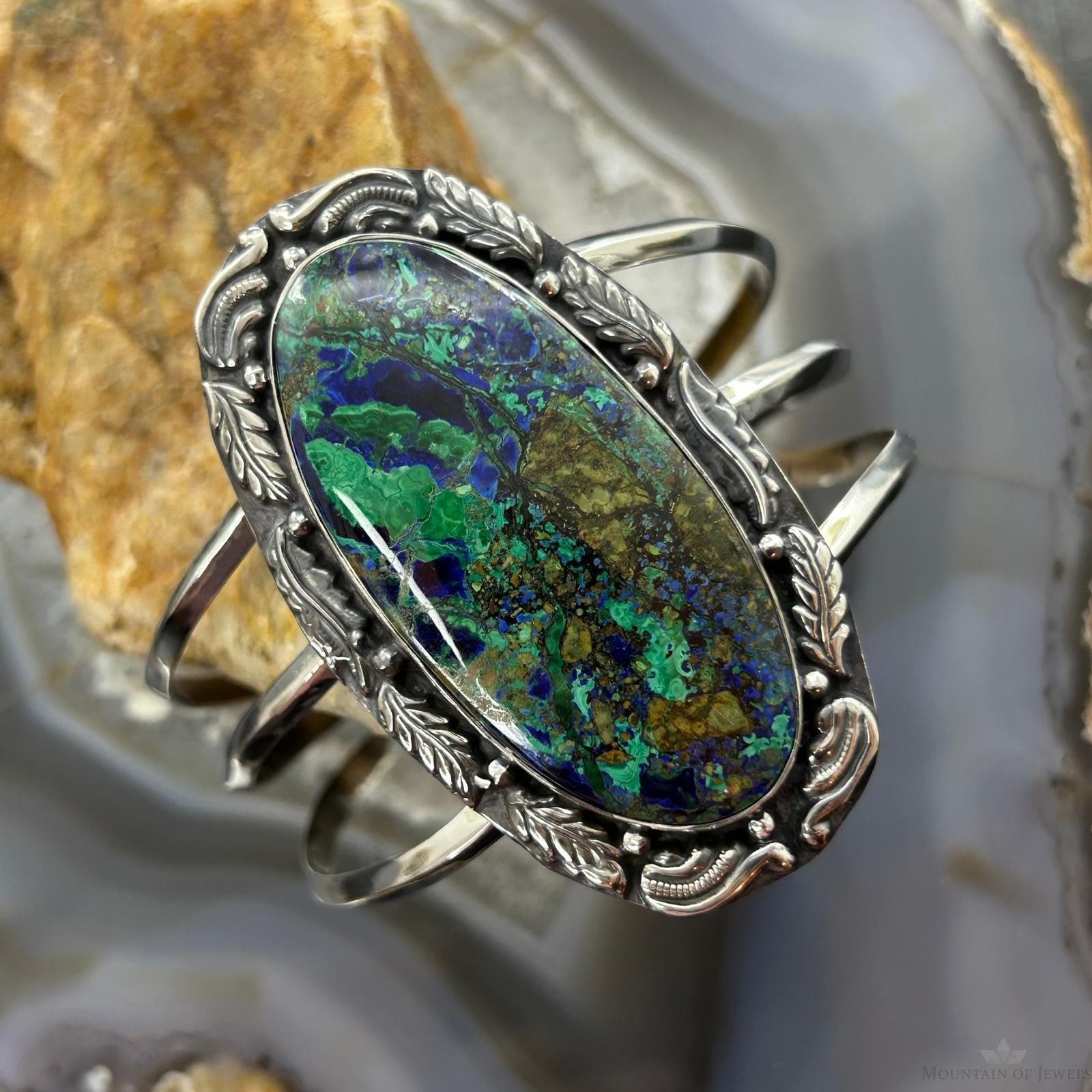 Sterling Silver Southwestern Style Large Oval Azurite Malachite Bracelet For Women