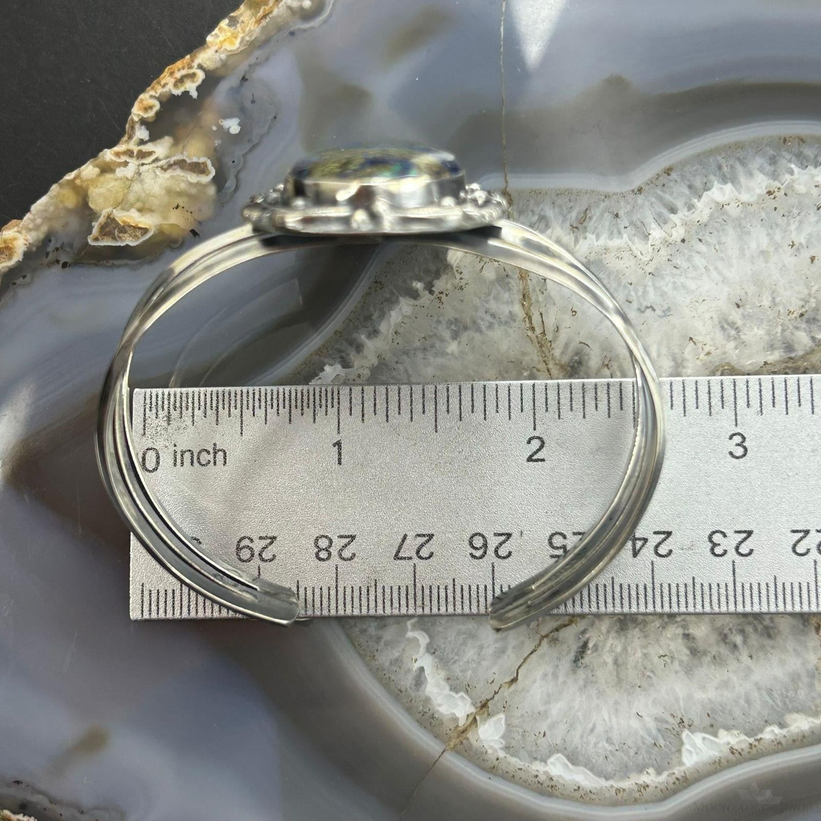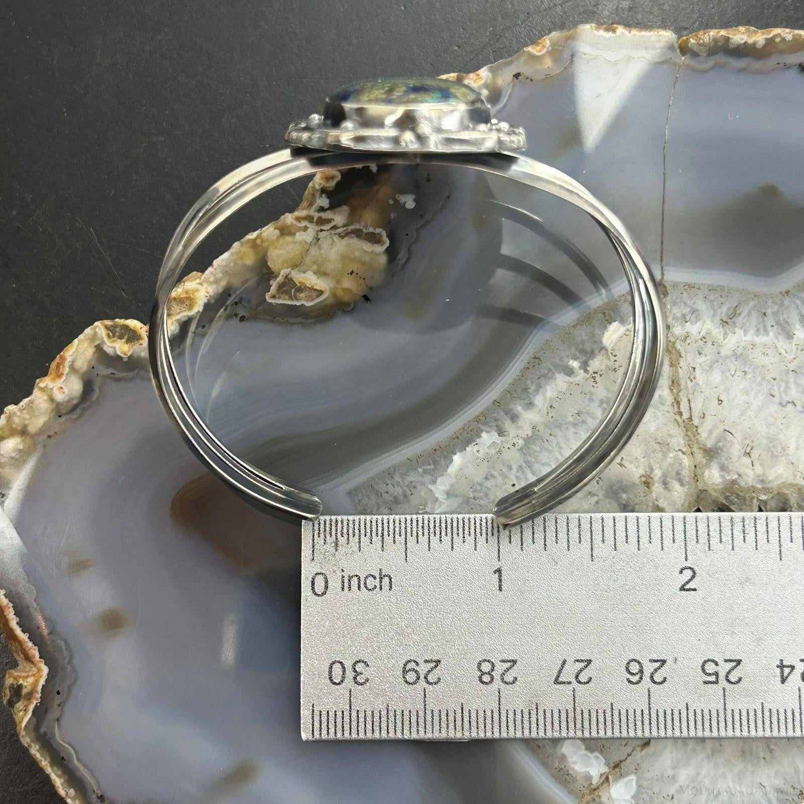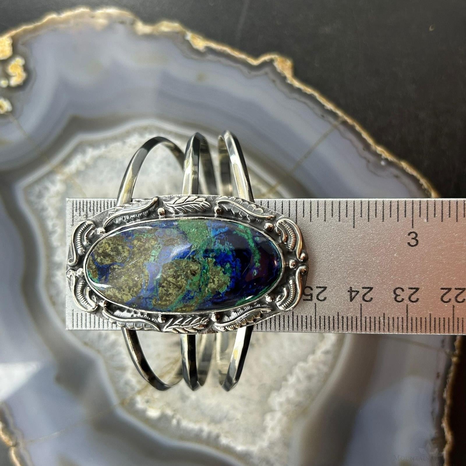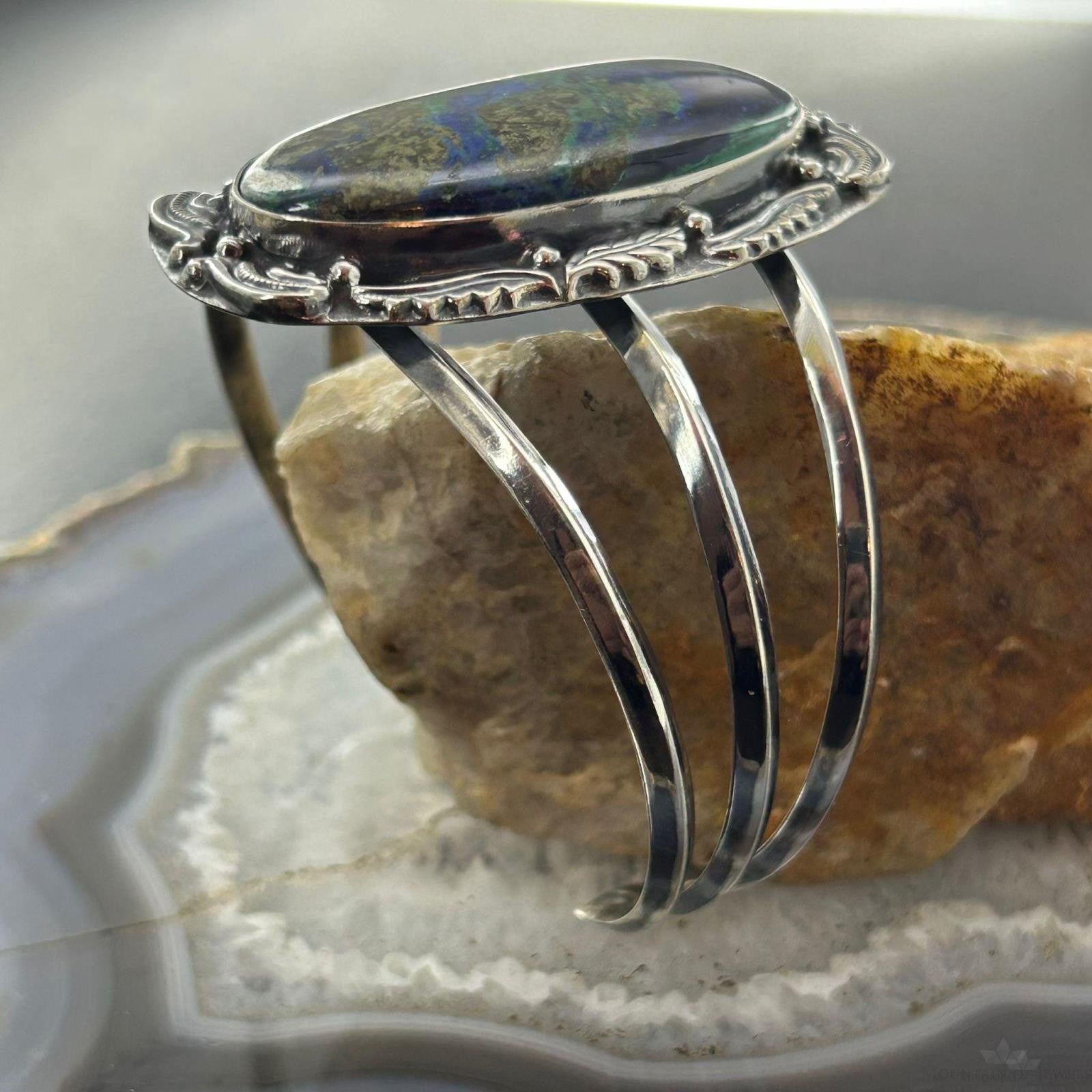 Sterling Silver Southwestern Style Large Oval Azurite Malachite Bracelet For Women