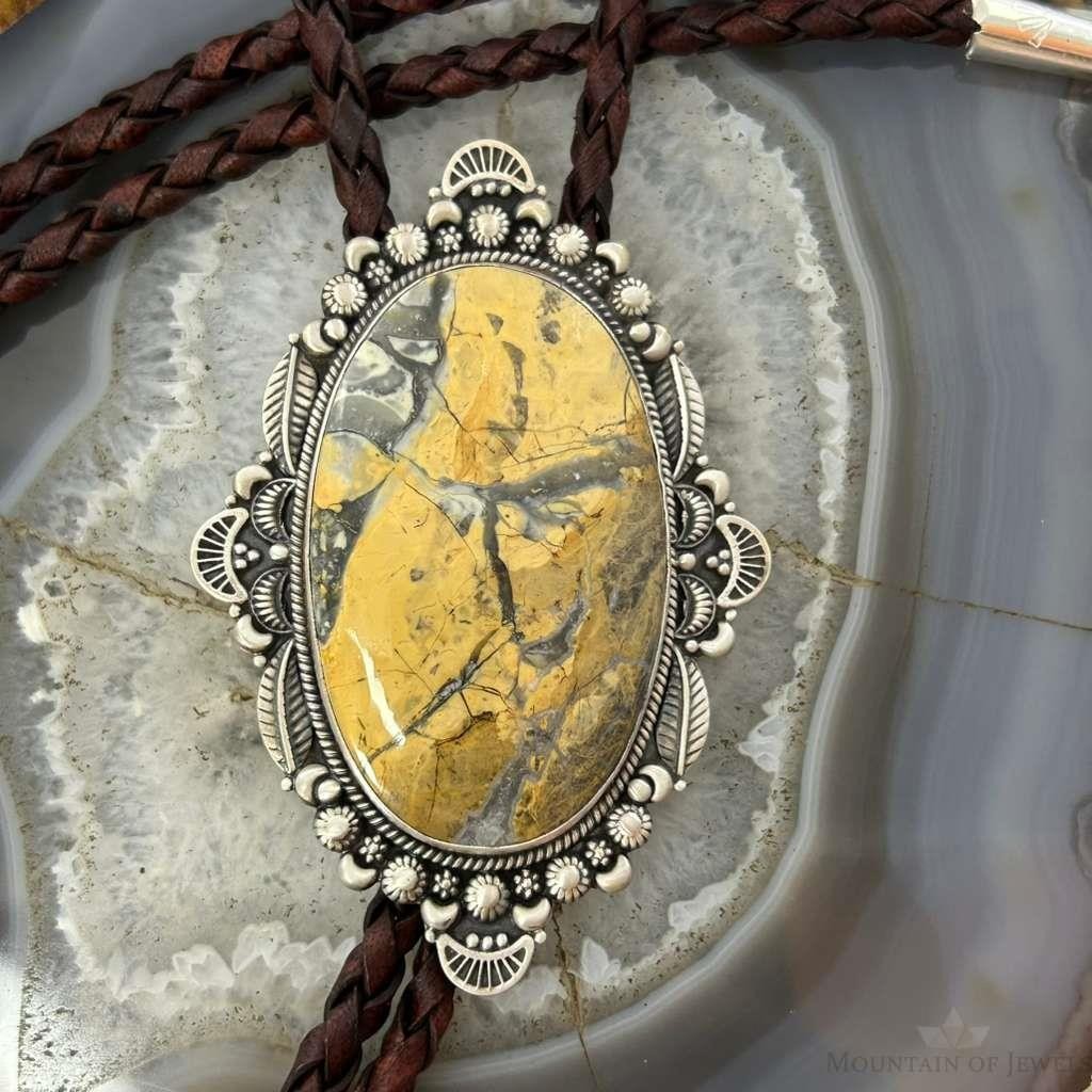 Sterling Silver Southwestern Style Large Oval Picture Jasper Decorated Bolo Tie For Men