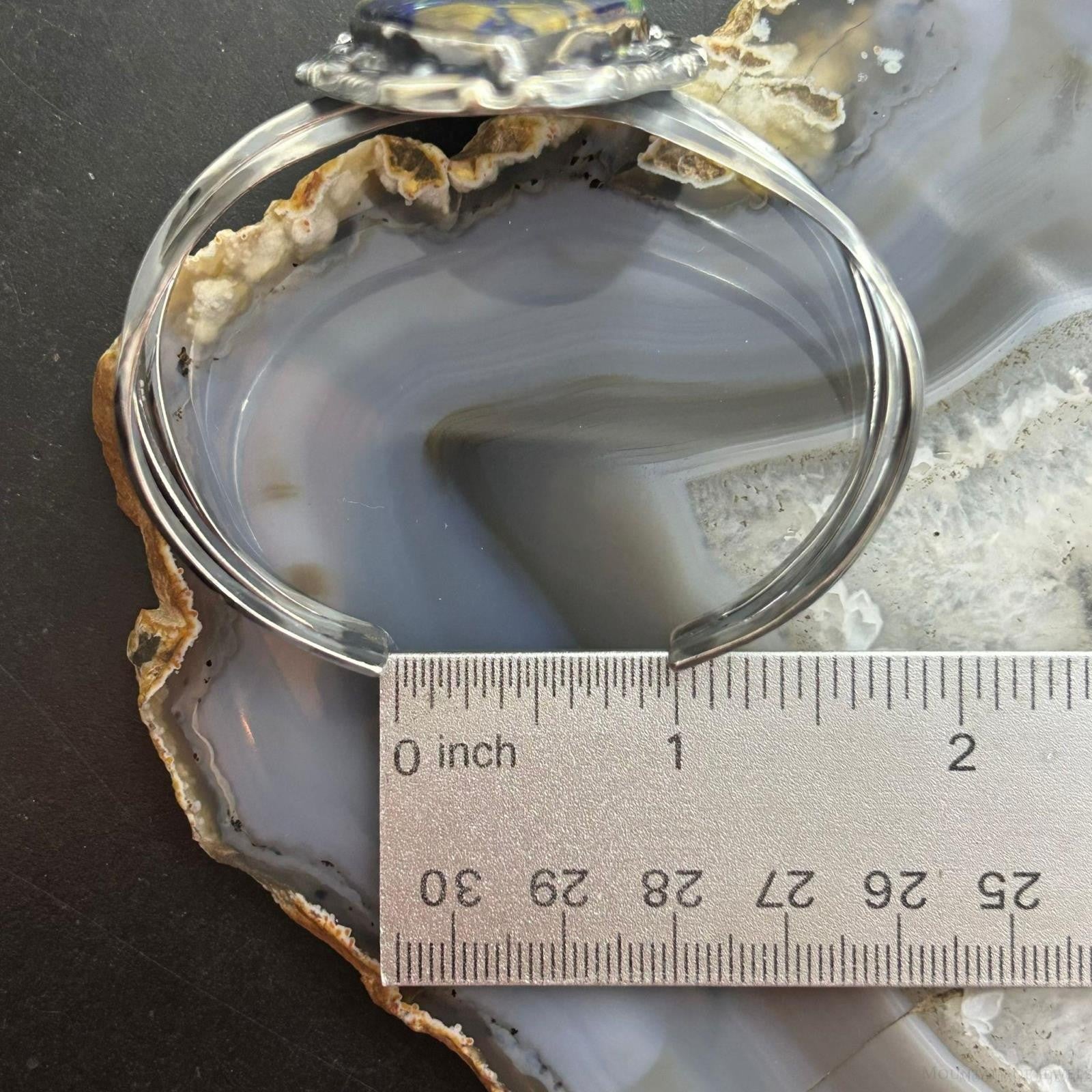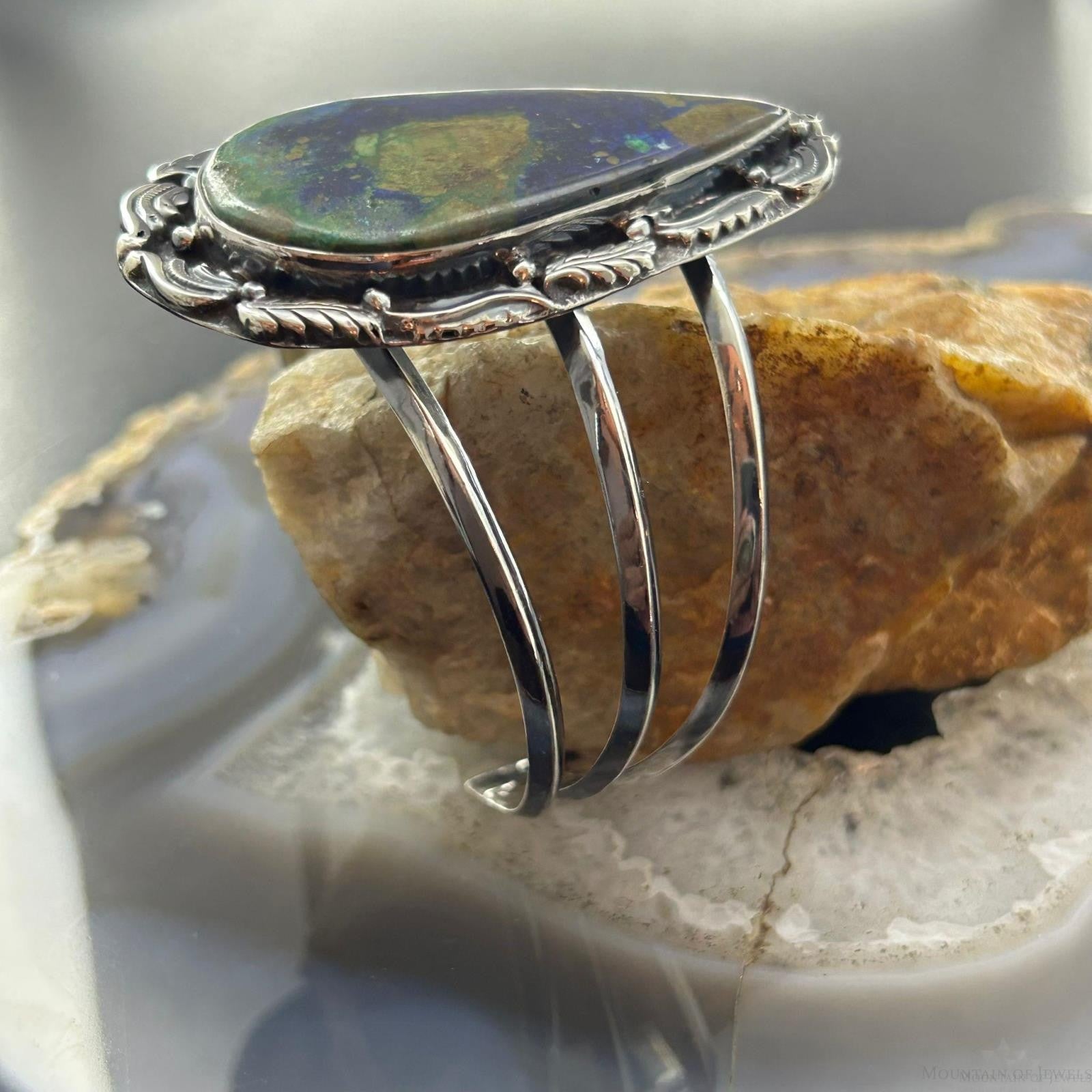 Sterling Silver Southwestern Style Large Teardrop Azurite Malachite Bracelet For Women